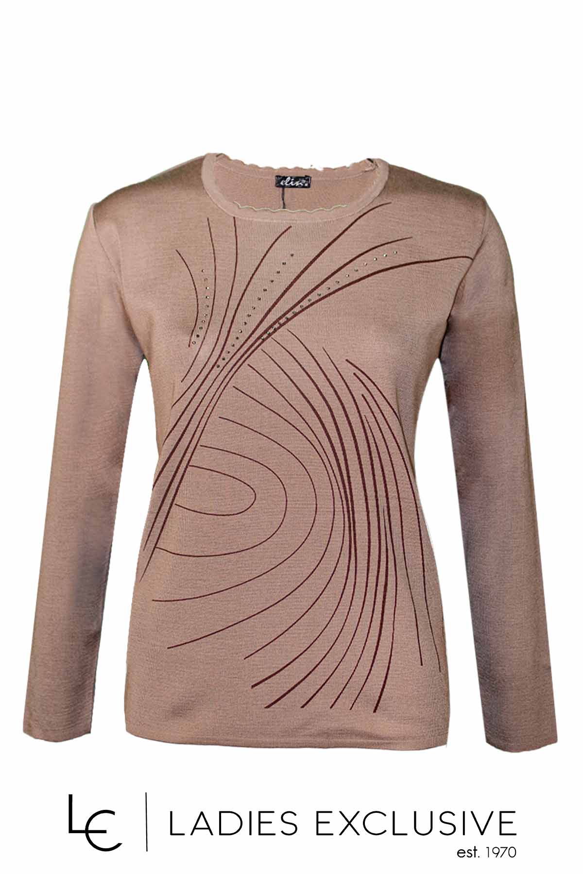 ELIN Μπλούζα πούρο μάλλινη με στάμπα γραμμές και στρας.