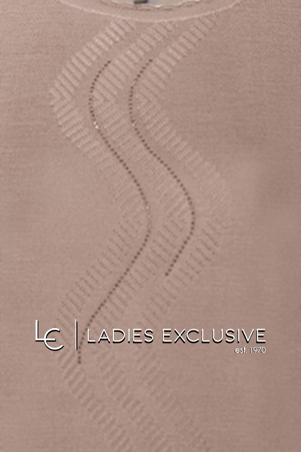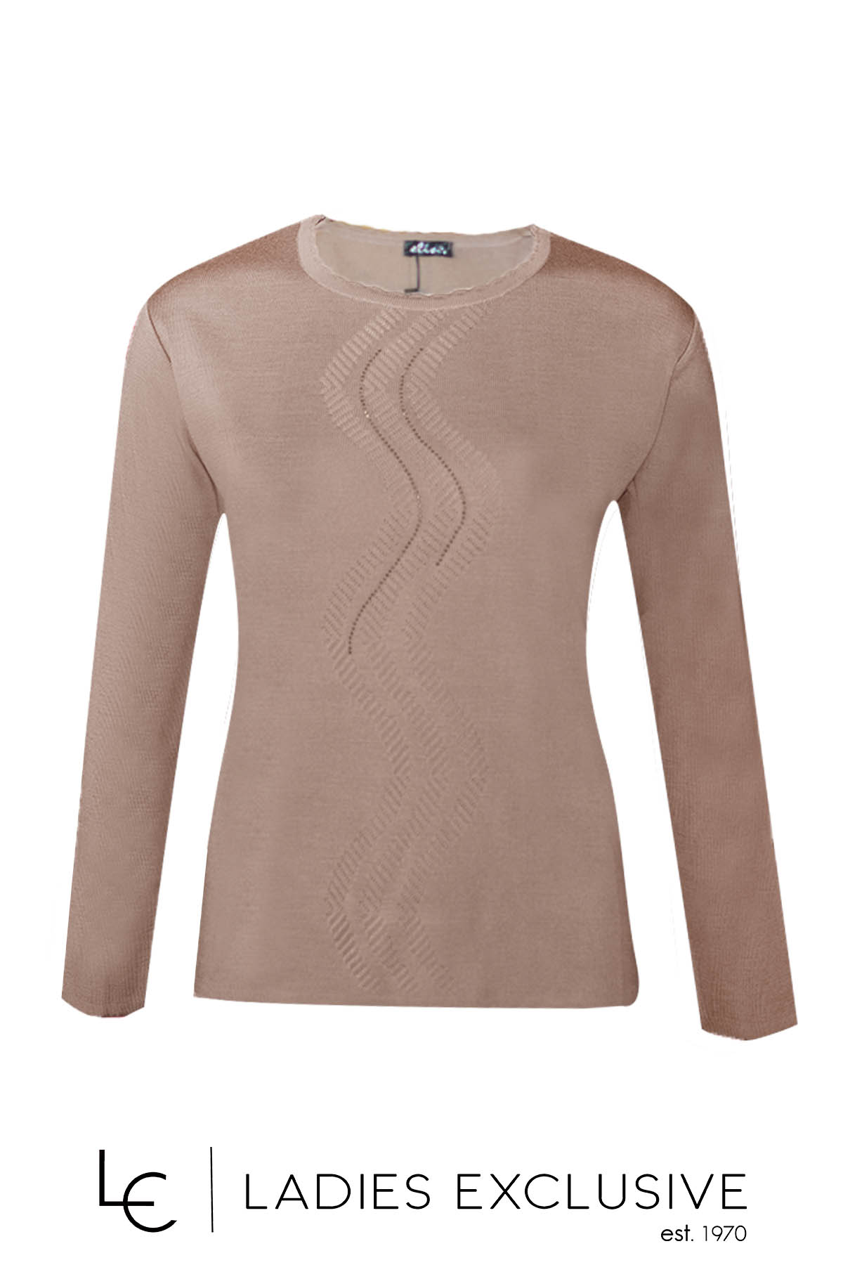 ELIN Μπλούζα μπεζ μάλλινη με σχέδιο στη λαιμόκοψη και ανάγλυφη πλέξη με στρας μπροστά.