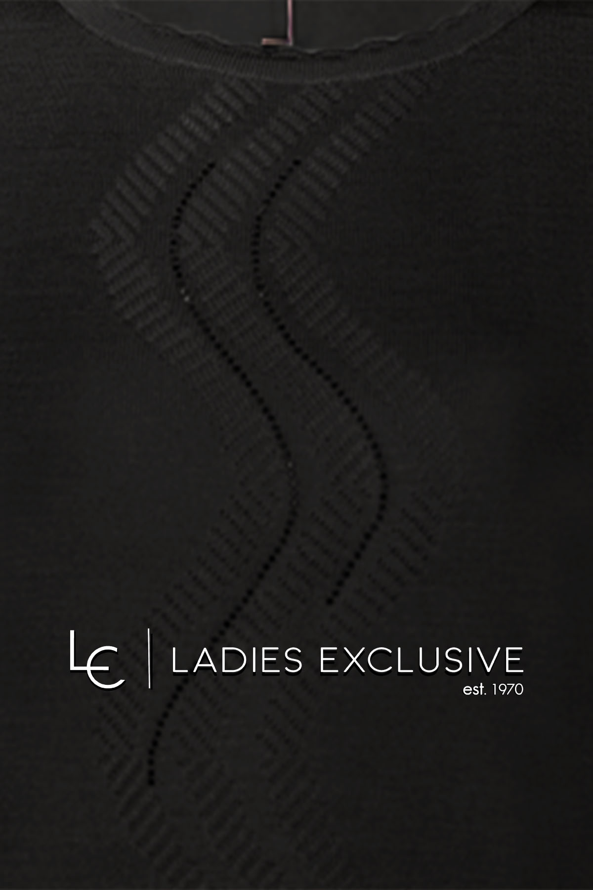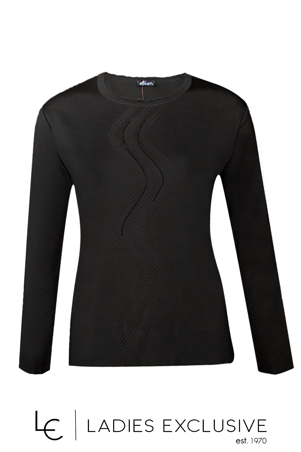 ELIN Μπλούζα μαύρη μάλλινη με σχέδιο στη λαιμόκοψη και ανάγλυφη πλέξη με στρας μπροστά.