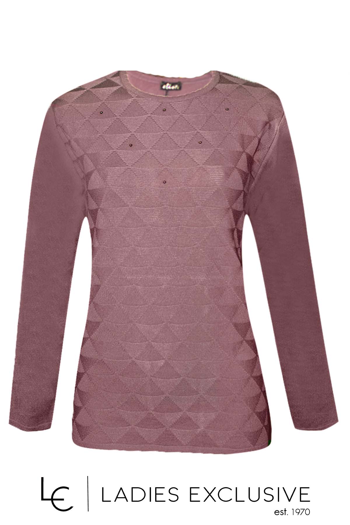 ELIN Μπλούζα λιλά από βισκόζη με πέρλες στο πάνω μέρος και ανάγλυφα τρίγωνα στην ύφανση.