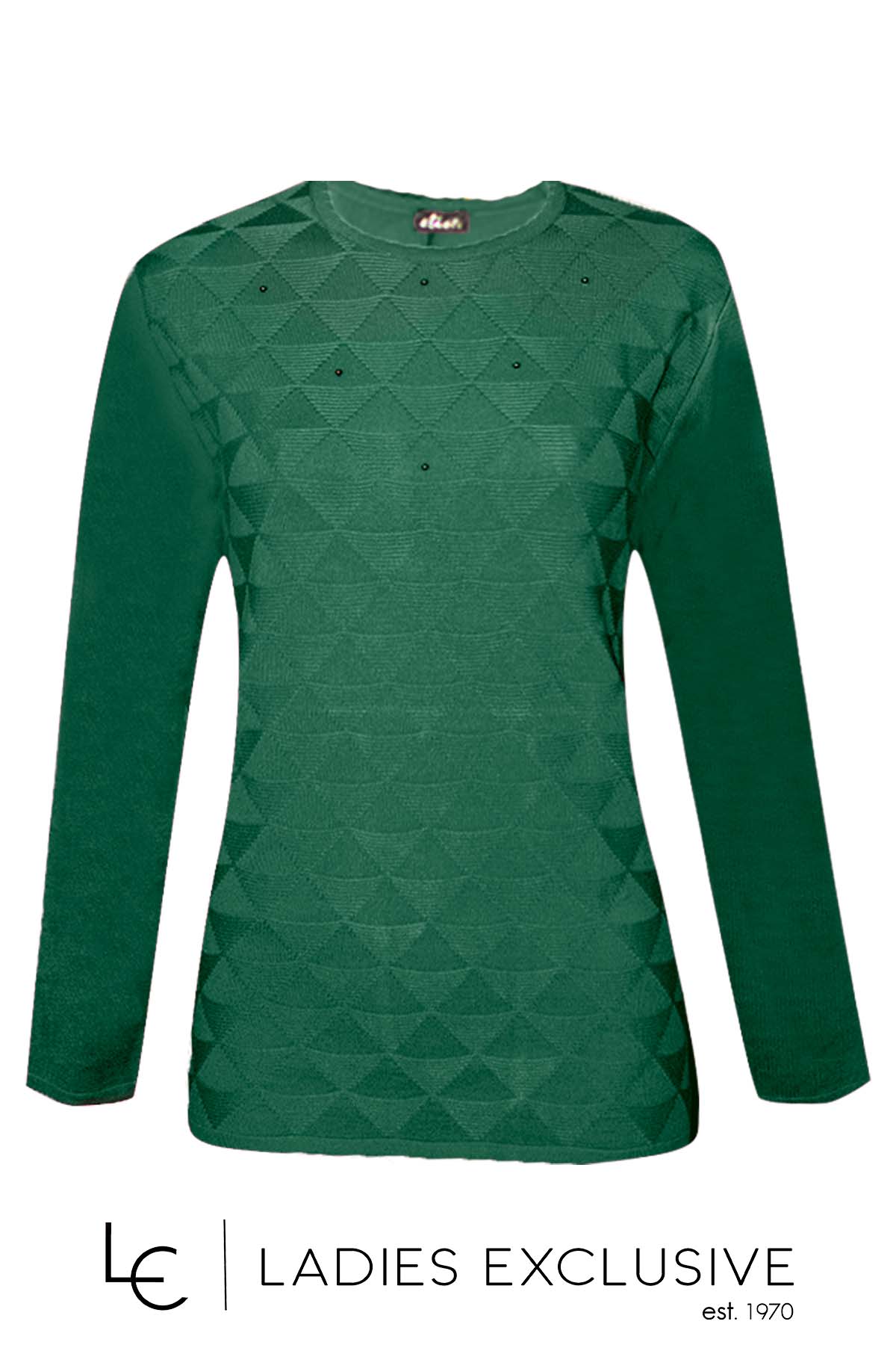ELIN Μπλούζα πράσινη από βισκόζη με πέρλες στο πάνω μέρος και ανάγλυφα τρίγωνα στην ύφανση.