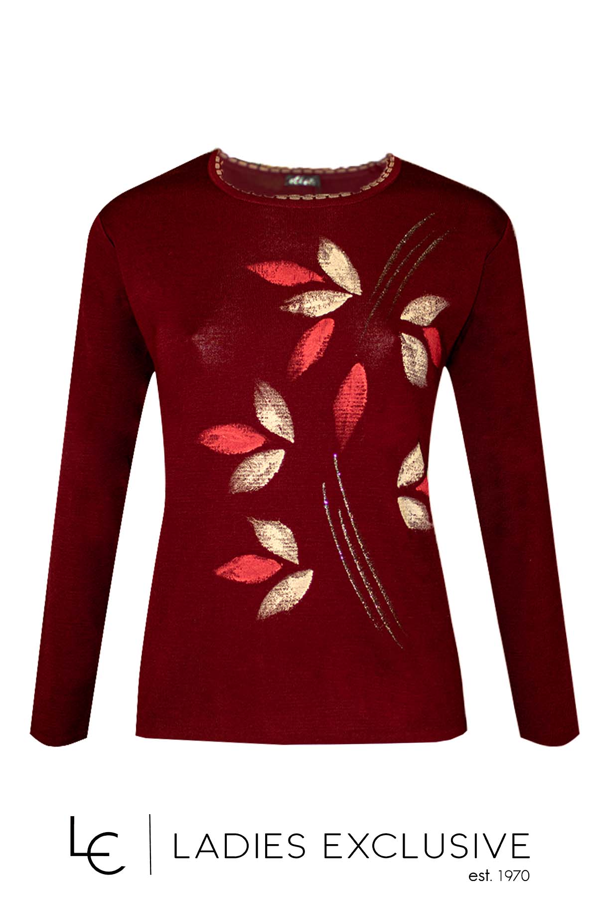 ELIN Μπλούζα μπορντώ με στάμπα φύλλα και γκλίτερ.