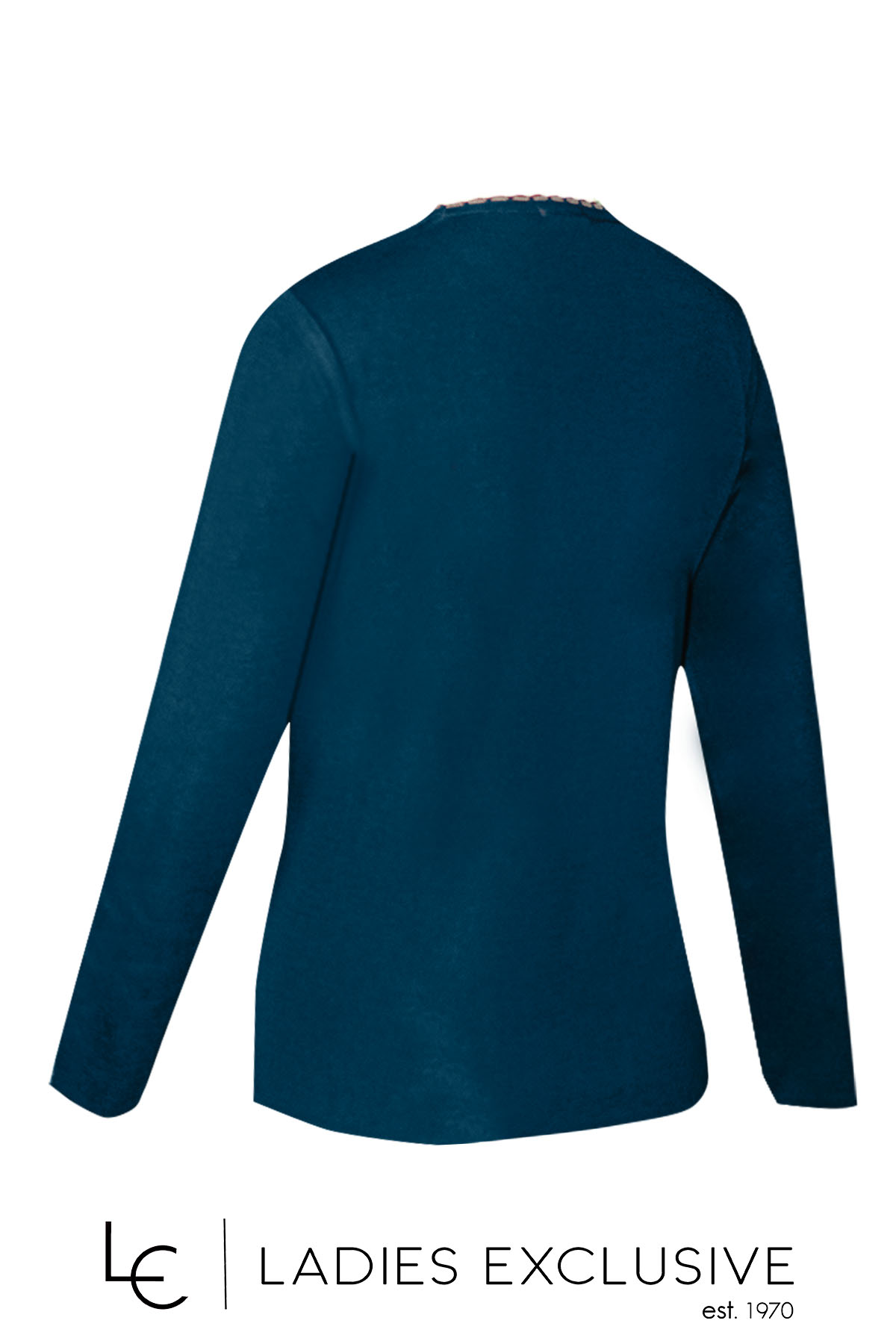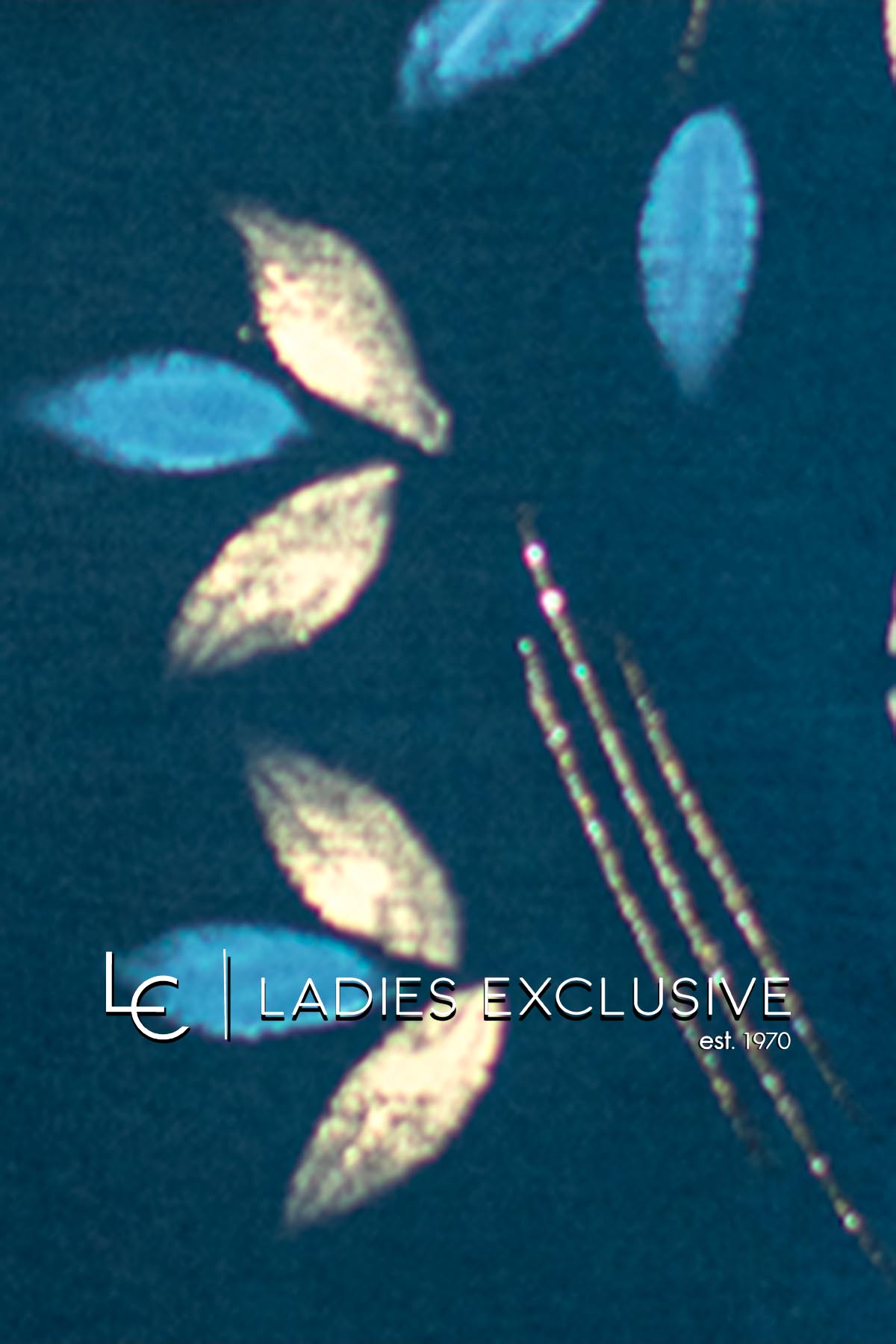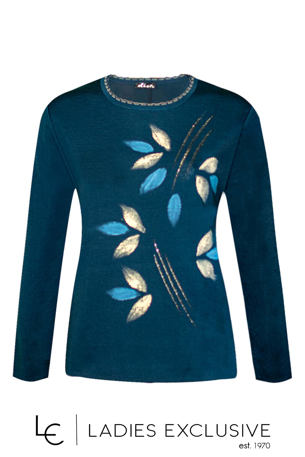 ELIN Μπλούζα πετρόλ με στάμπα φύλλα και γκλίτερ.