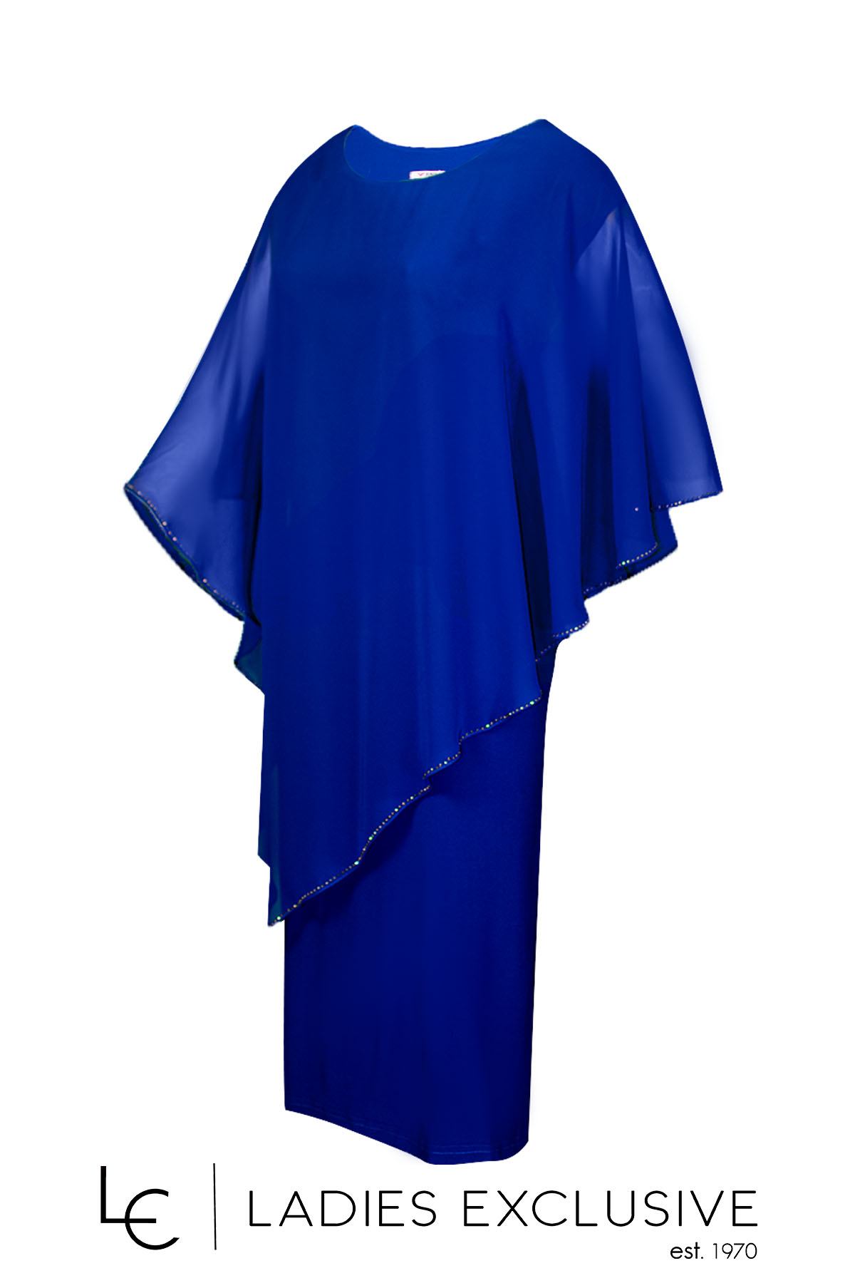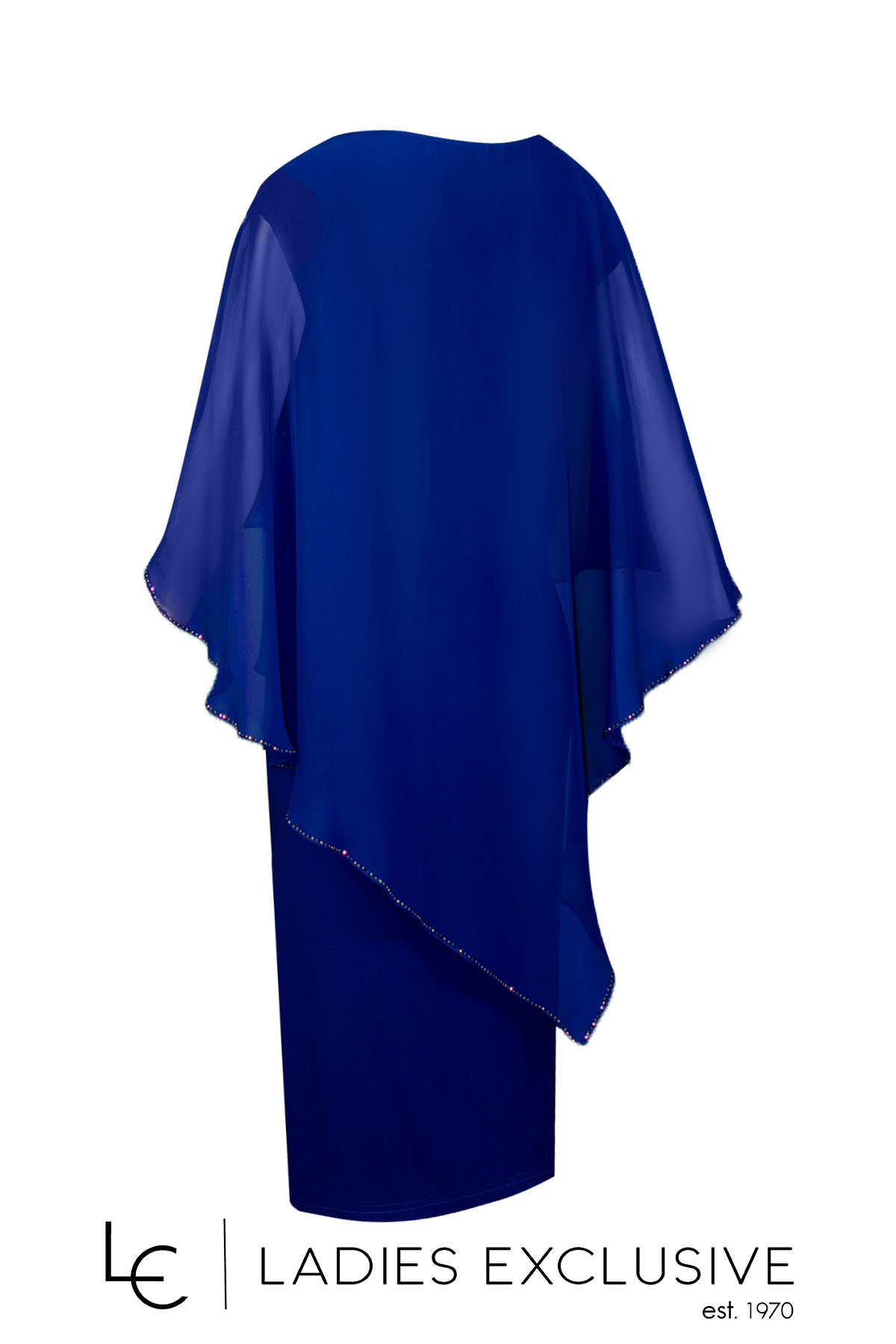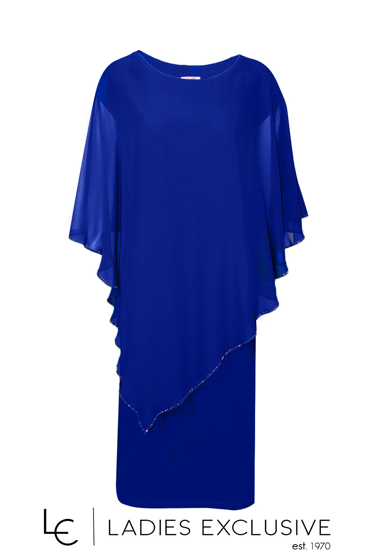 FIBES Φόρεμα μπλε ρουά βραδινό με ριχτή μουσελίνα καο στρας στο τελείωμα.