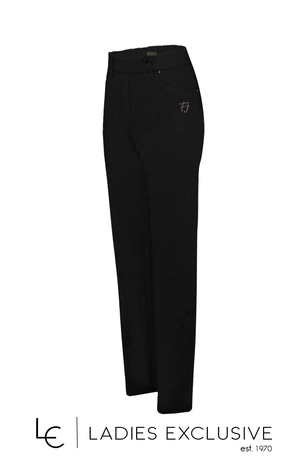 FIORENTINA JEANS Παντελόνι μαύρο ποντοστόφα με λάστιχο στη μέση.