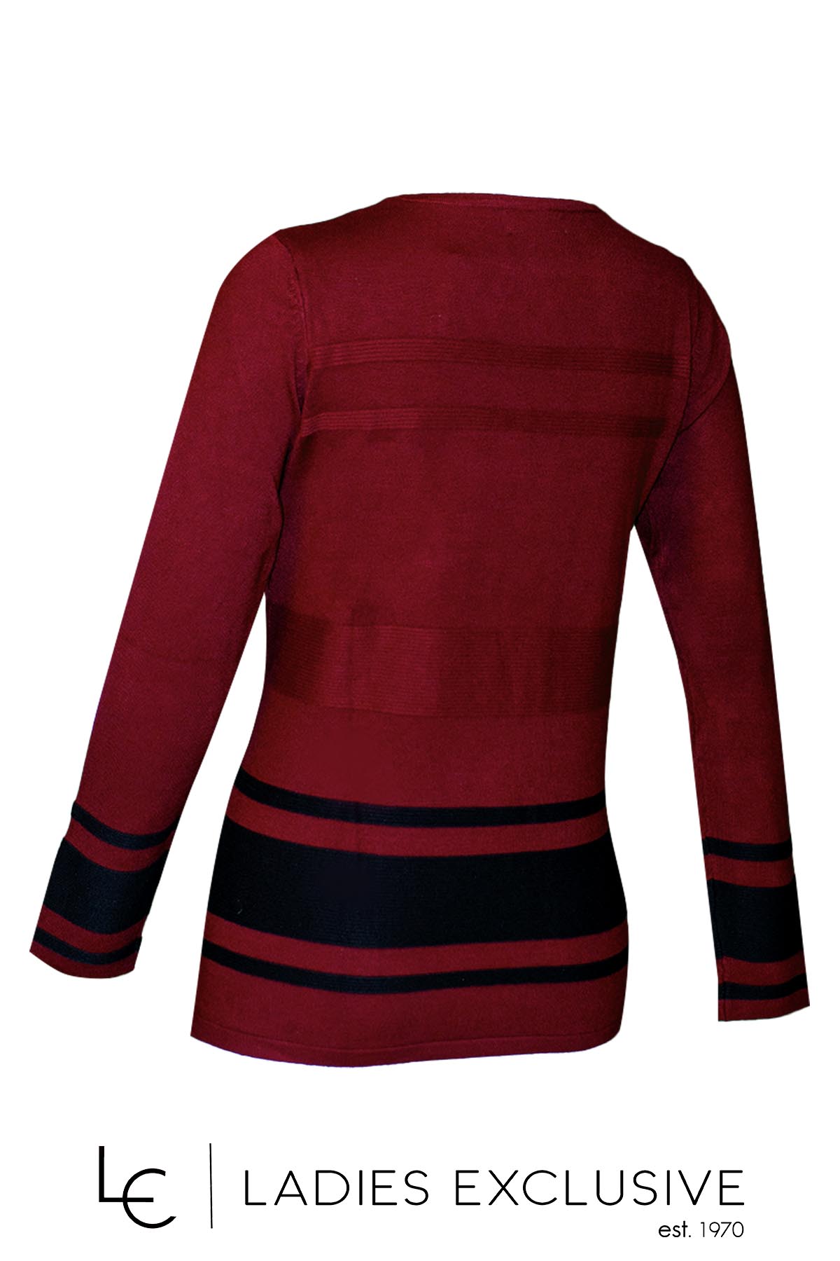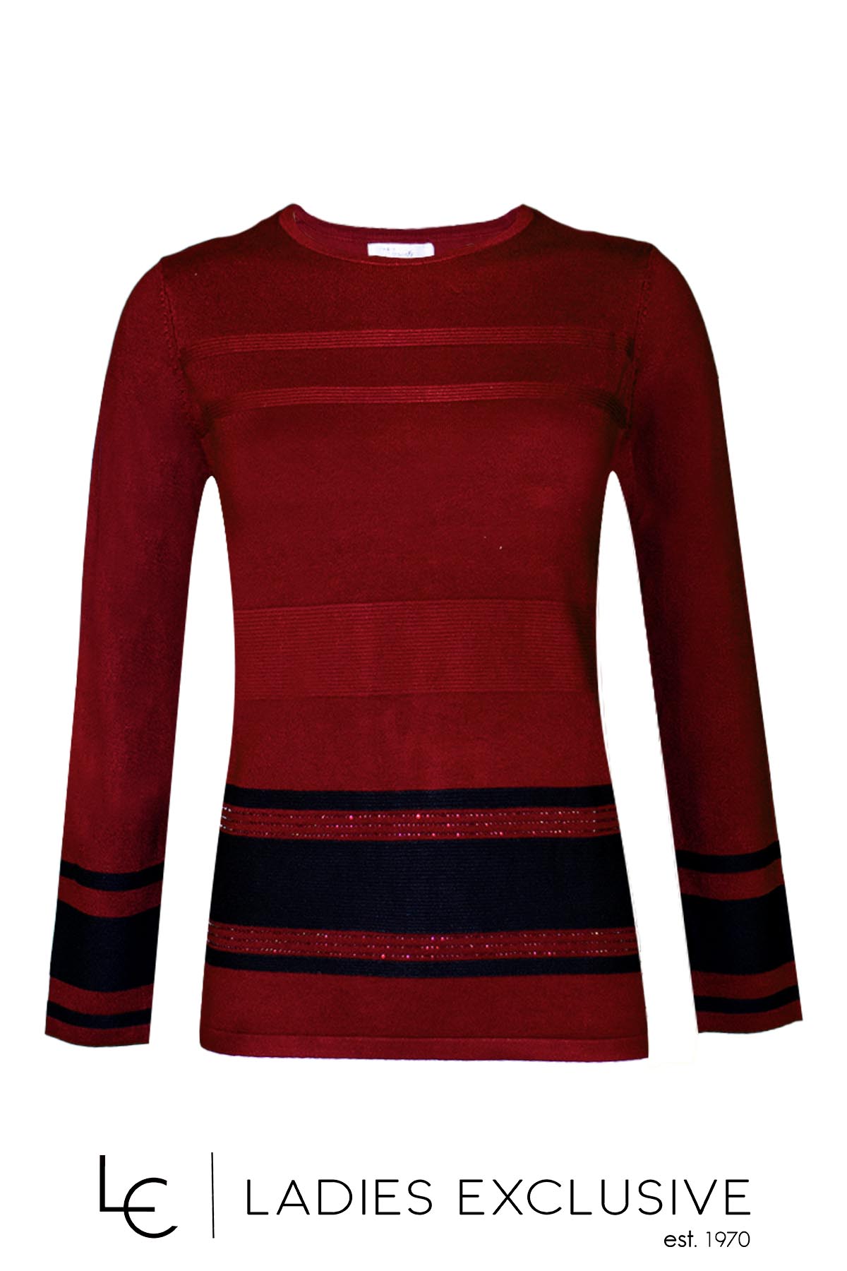 TRIPODE Μπλούζα μπορντώ πλεκτή με ανάγλυφες ρίγες και μαύρες λεπτομέρειες με μικρά τρουκς στο κάτω μέρος.