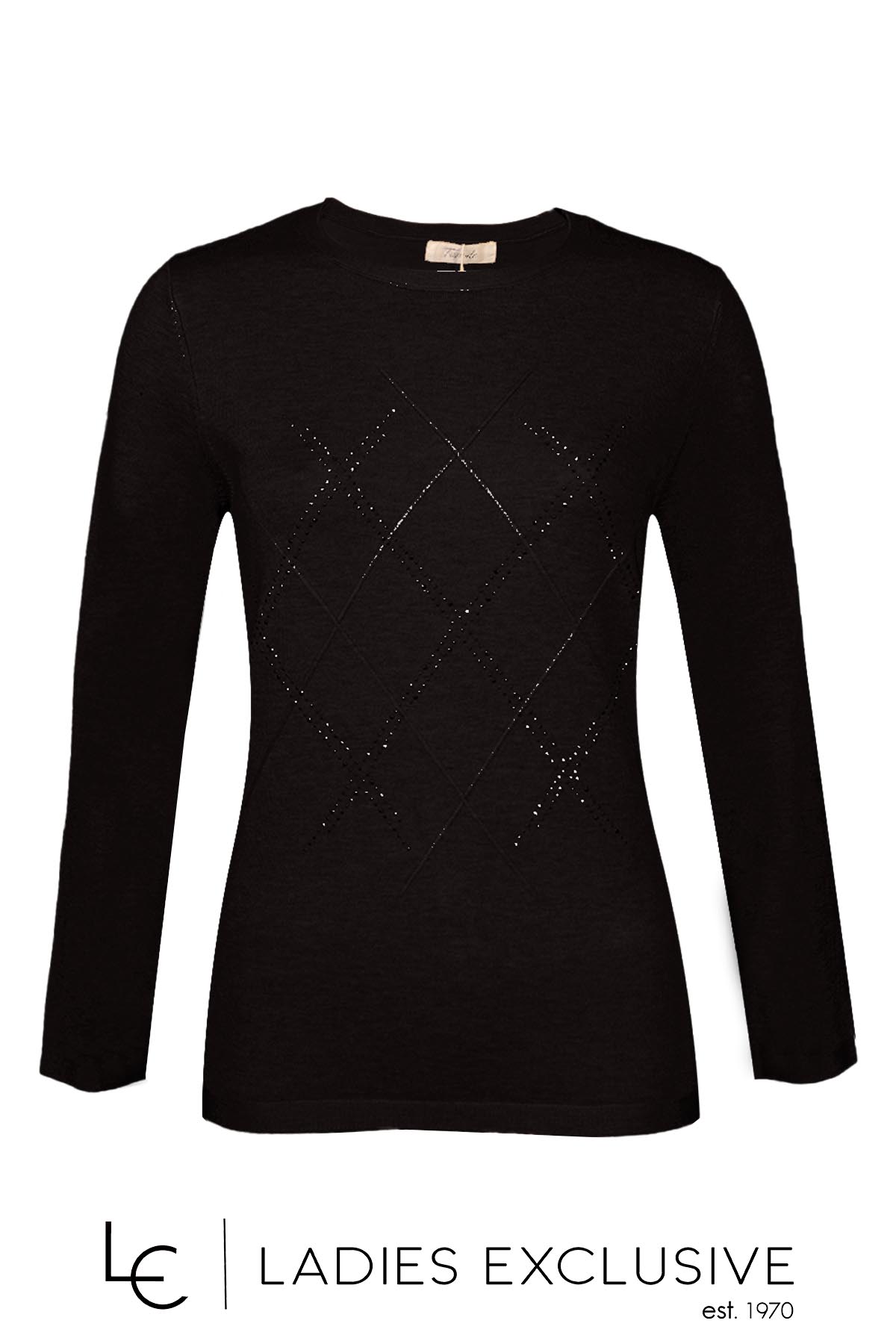TRIPODE Μπλούζα μαύρη πλεκτή με ρόμβους και στρας.