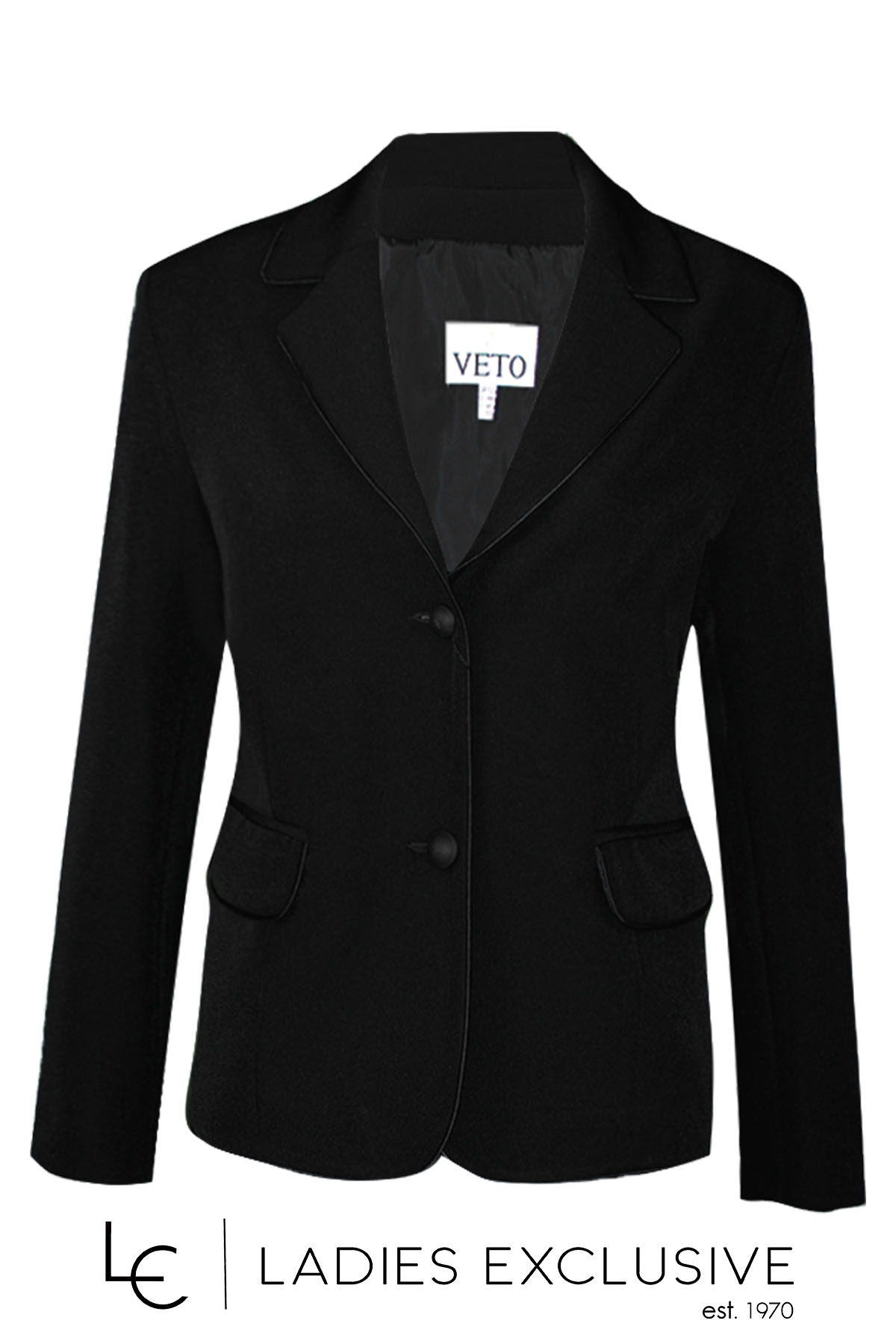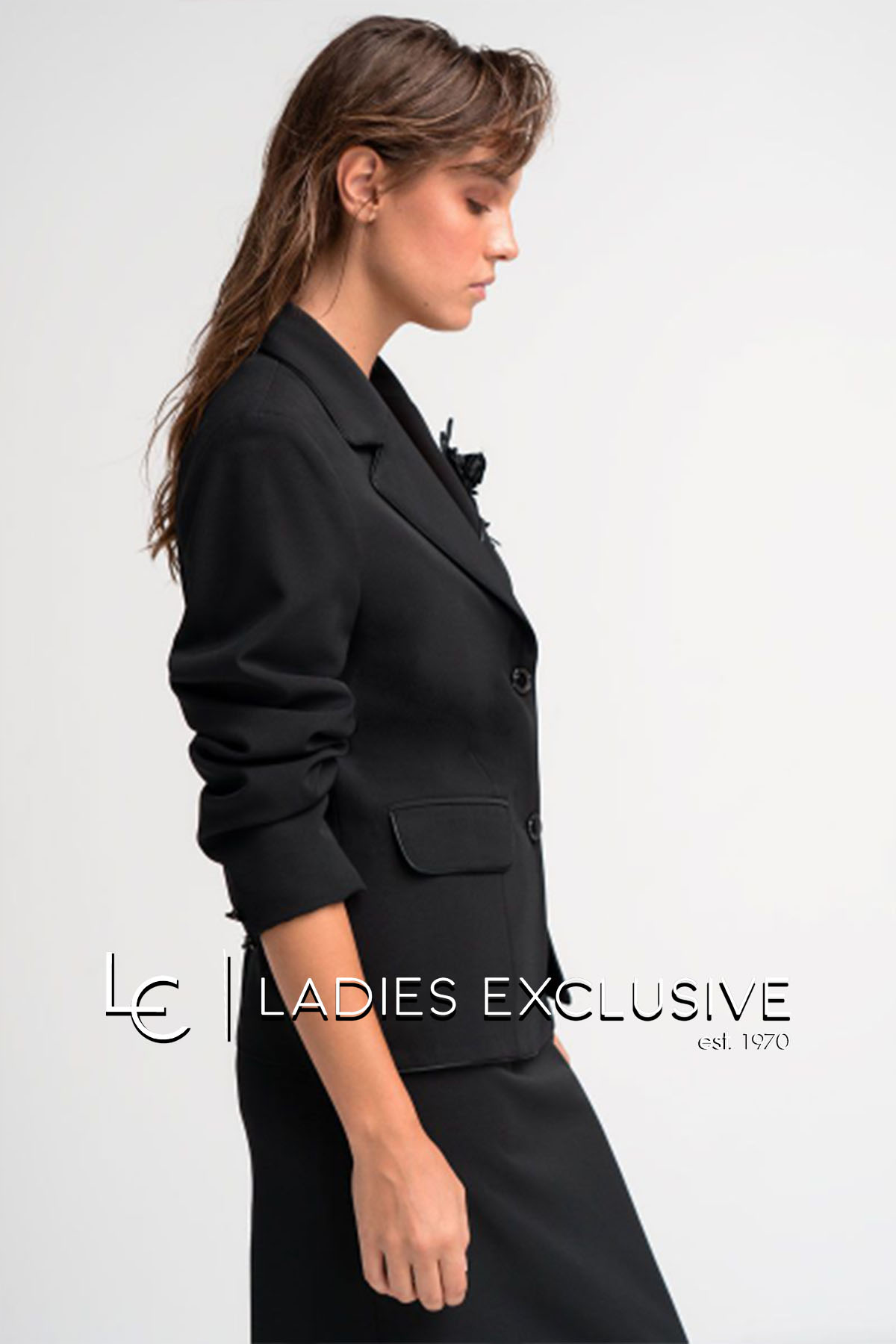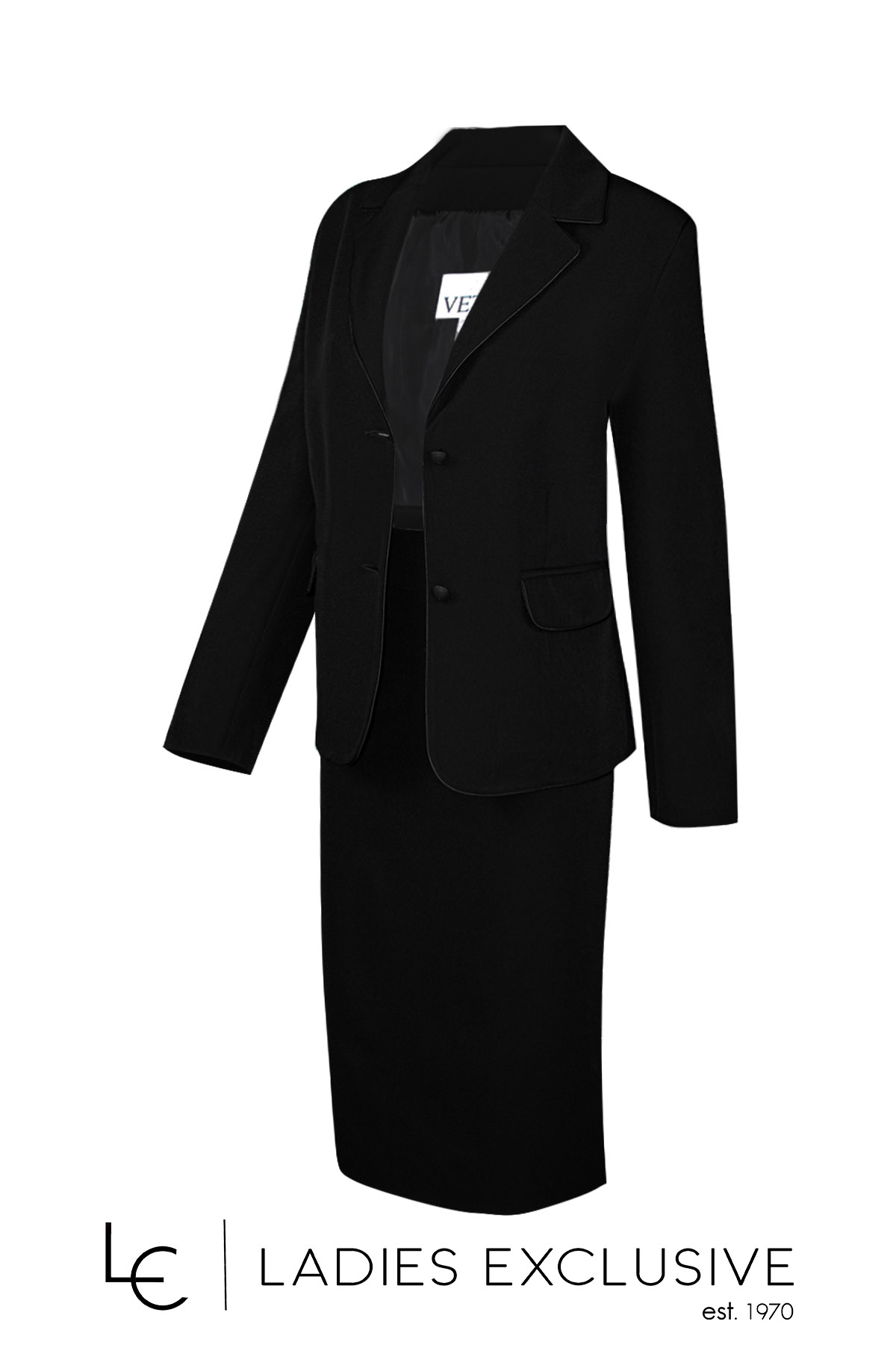 VETO Σετ 2 τεμαχίων. Σακάκι μαύρο κρεπ με σατέν τελειώματα και τσέπες με καπάκια και φούστα κρεπ σε ίσια γραμμή.