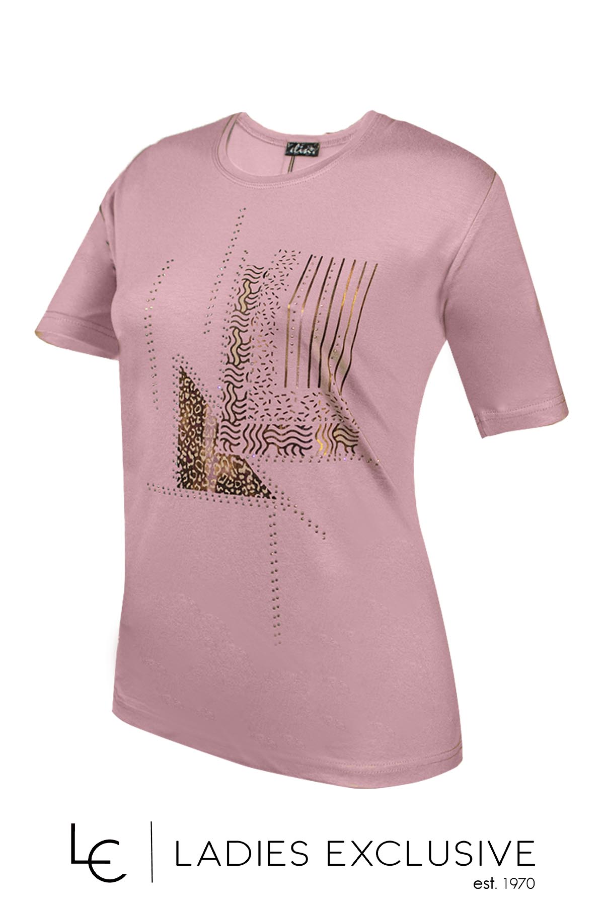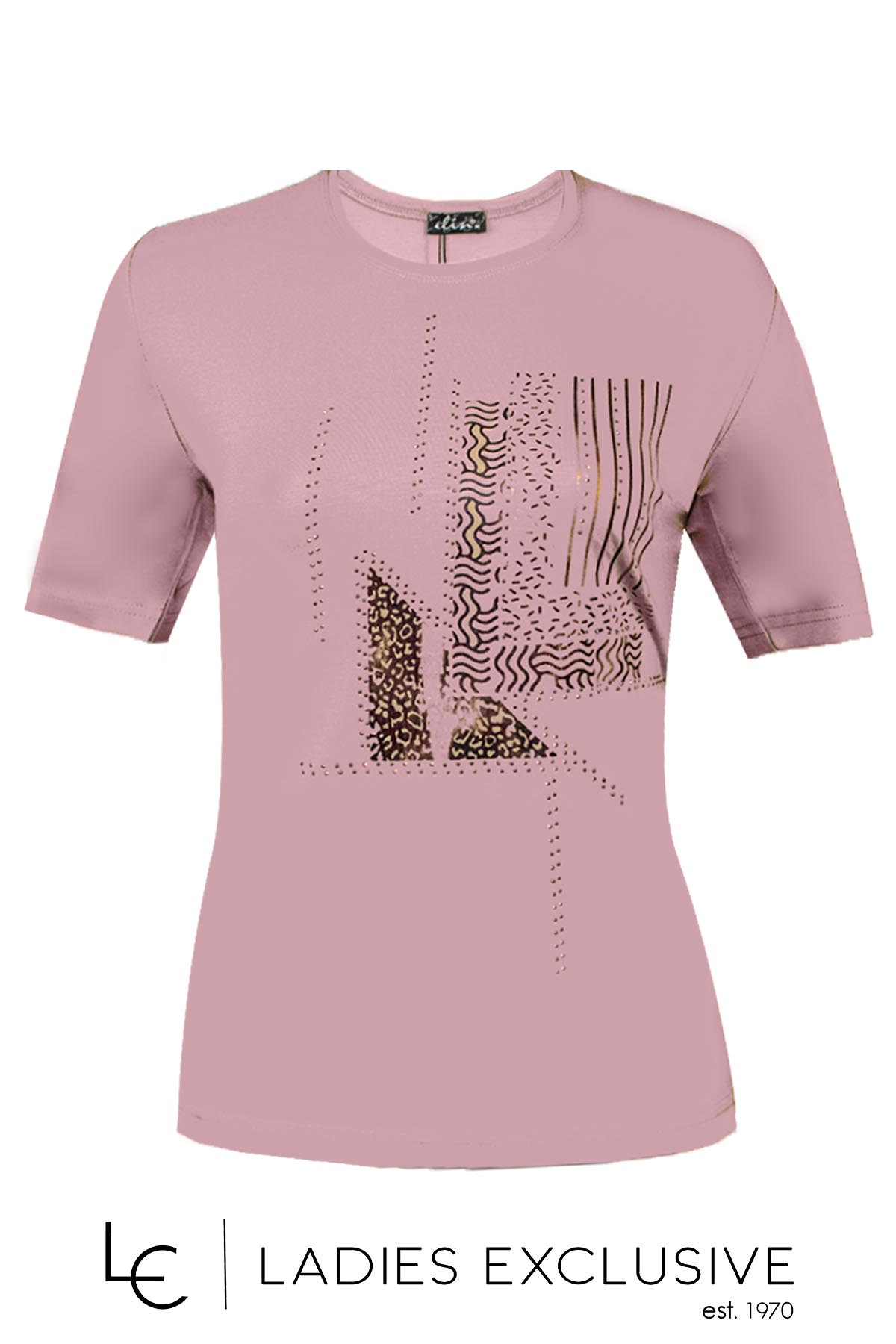 ELIN Μπλούζα ροζ κοντομάνικη με στάμπα και στρας.