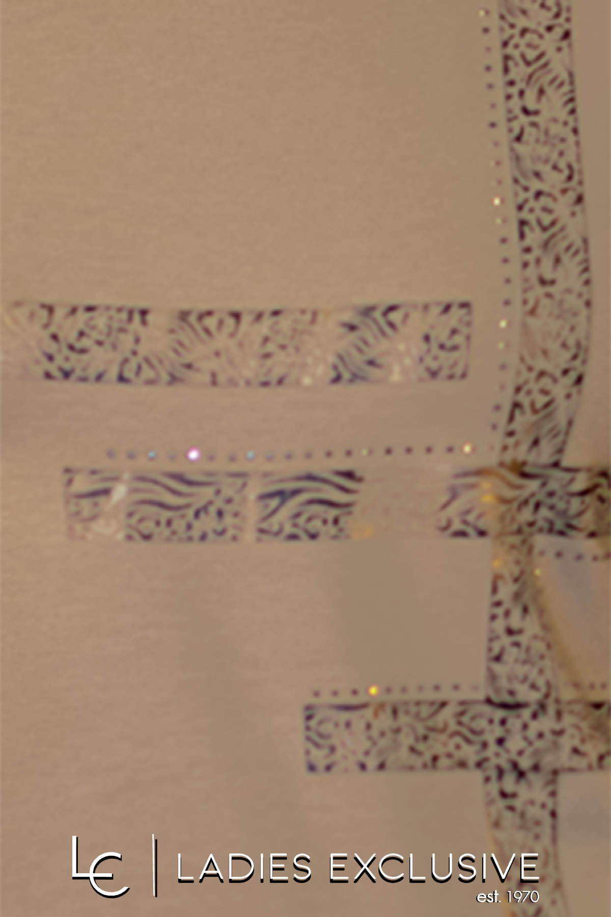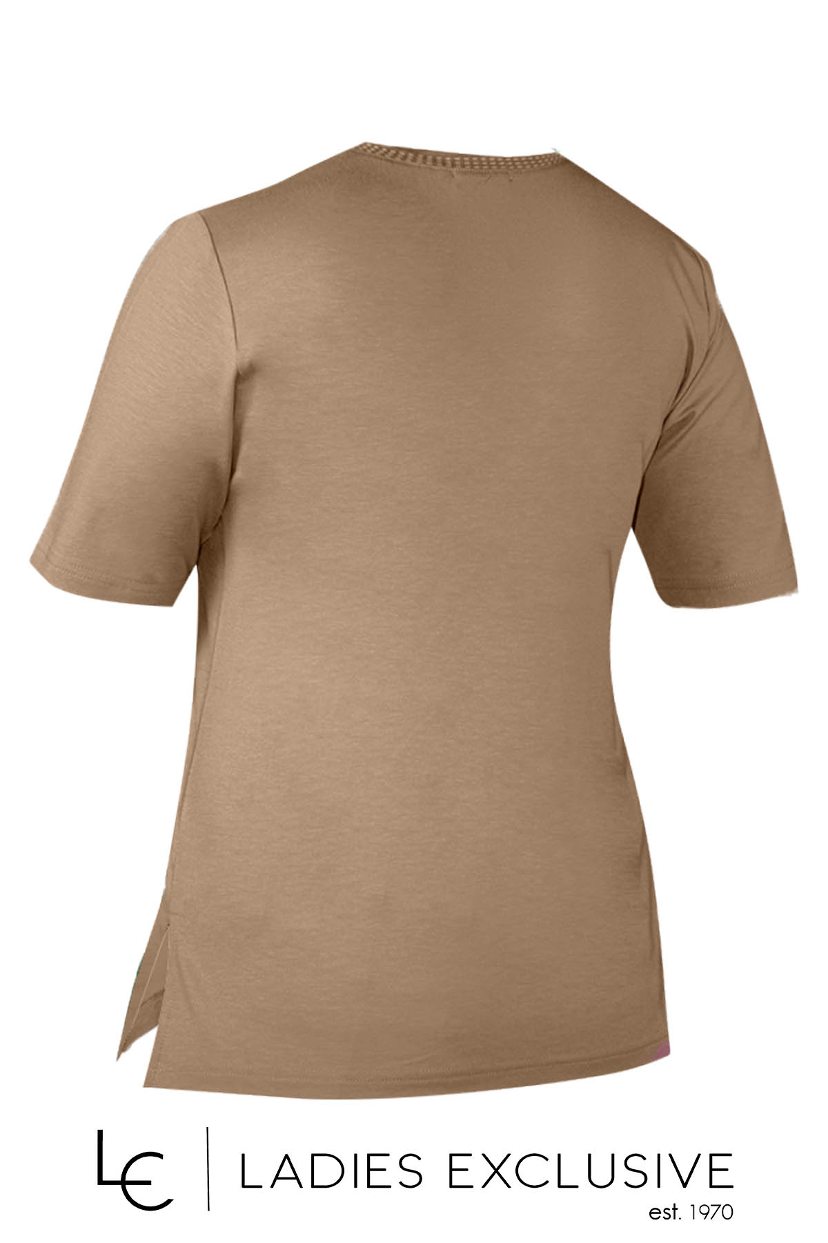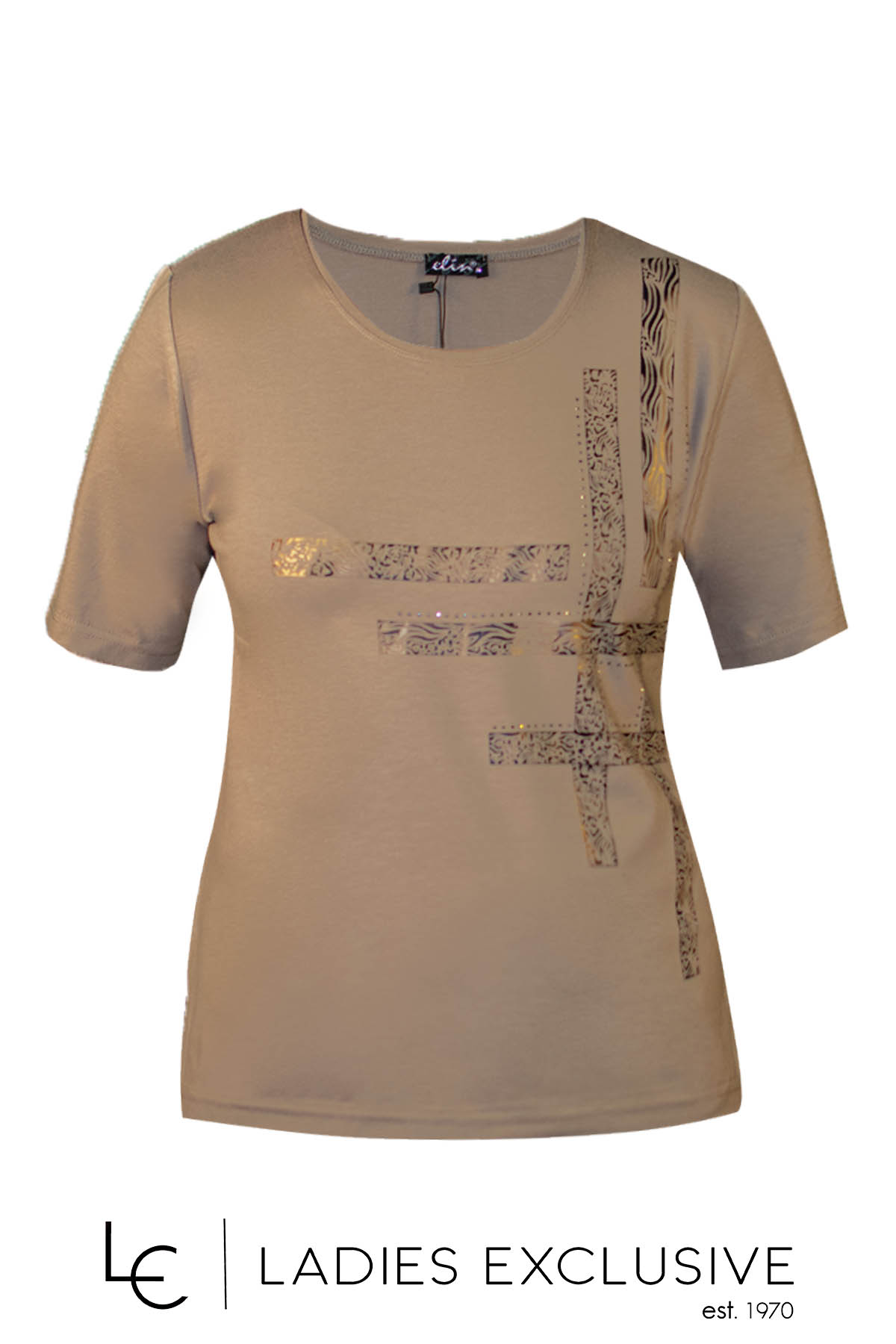 ELIN Μπλούζα μπεζ κοντομάνικη με στάμπα και στρας.