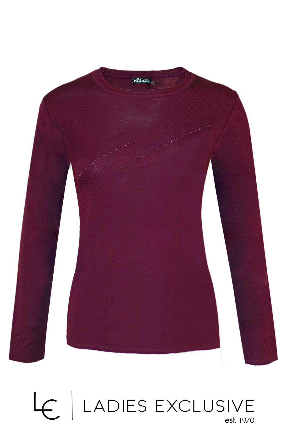 ELIN Μπλούζα μπορντώ μάλλινη με ανάγλυφο σχέδιο και στρας.
