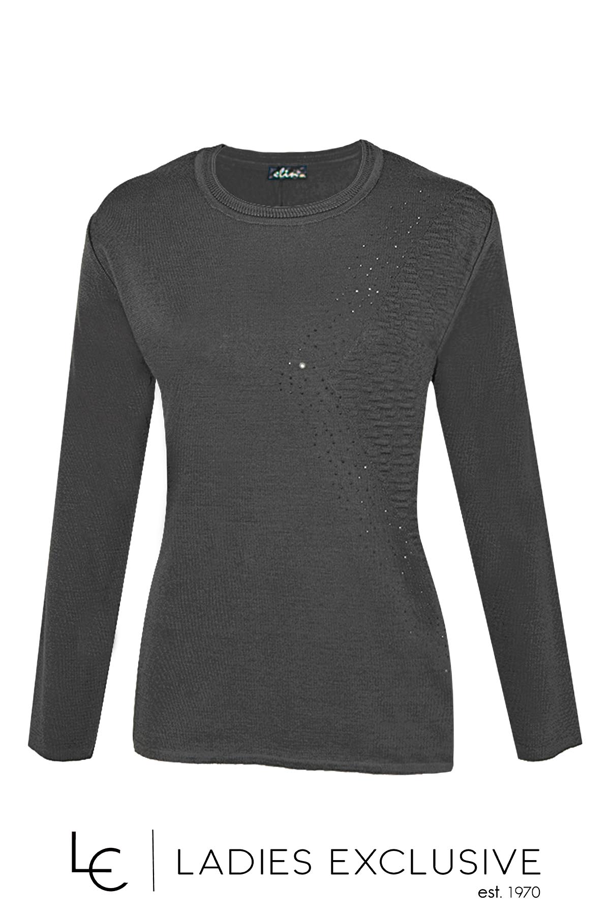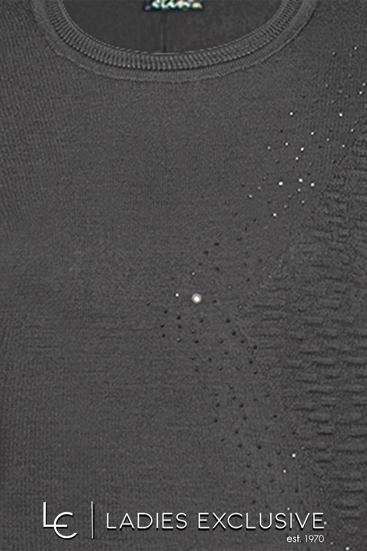 ELIN Μπλούζα ανθρακί μάλλινη με ανάγλυφο σχέδιο στη μία πλευρά και στρας.