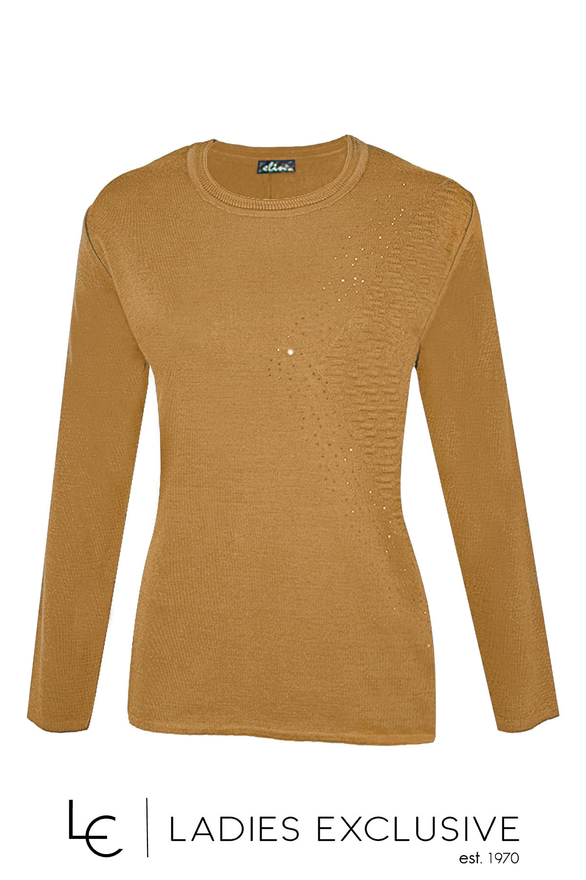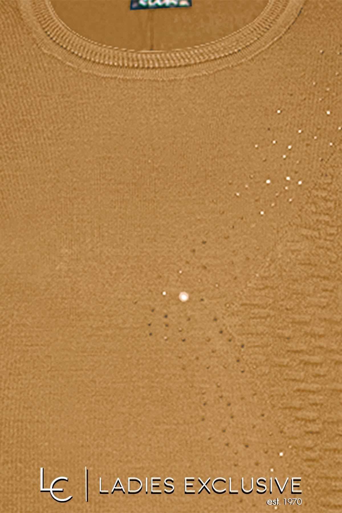 ELIN Μπλούζα καμηλό μάλλινη με ανάγλυφο σχέδιο στη μία πλευρά και στρας.
