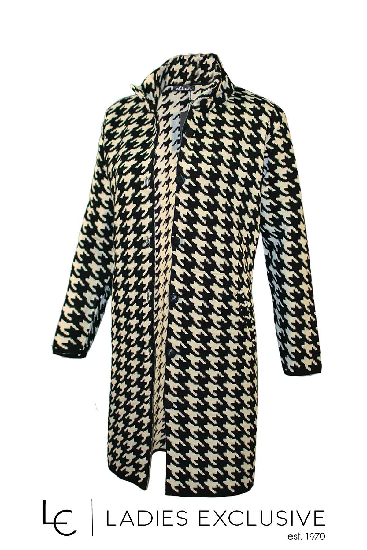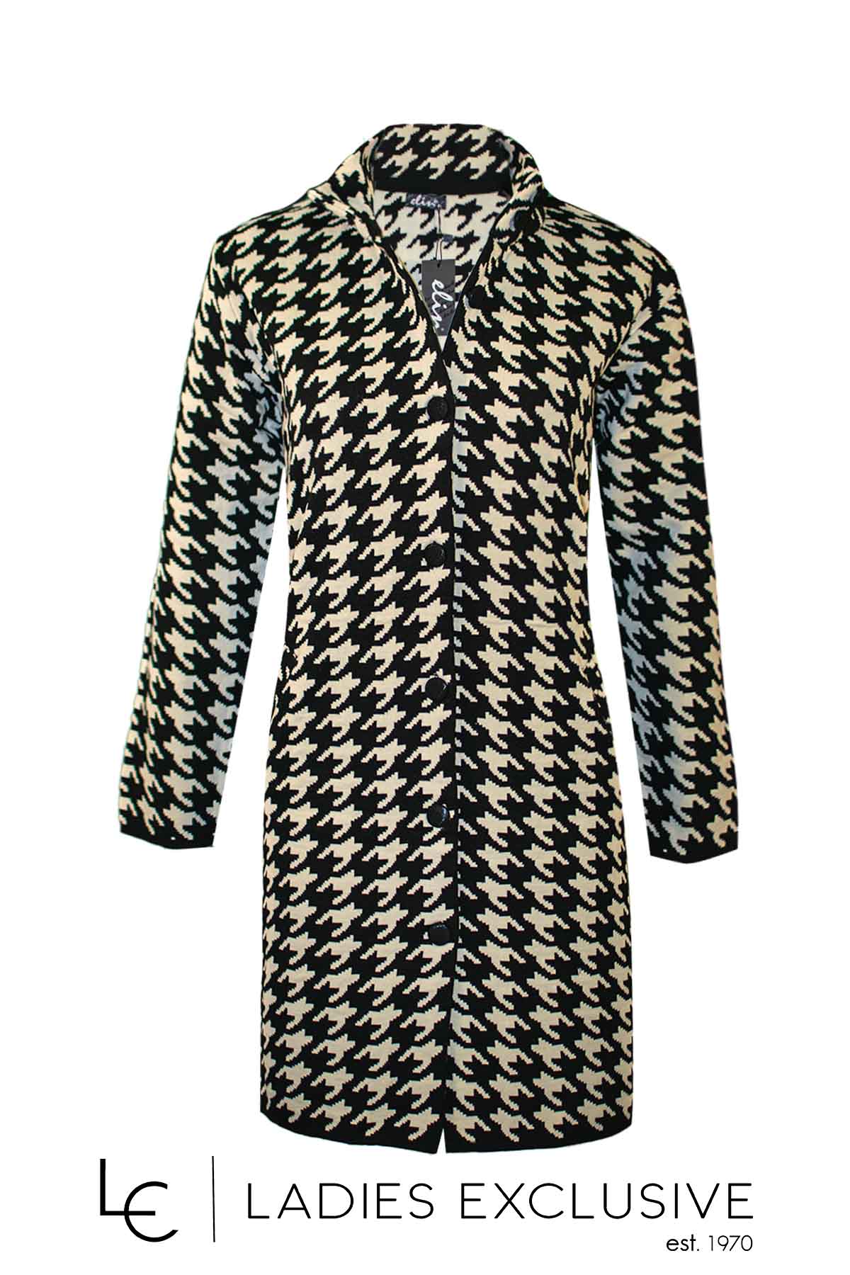 ELIN Ζακέτα ασπρόμαυρη μακριά με βάτες και κουμπιά.