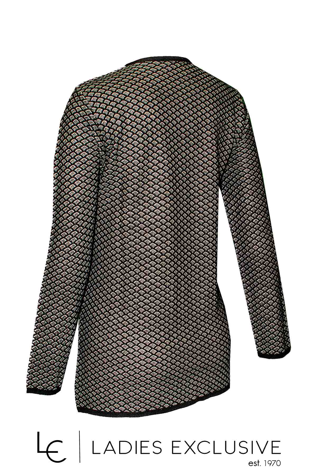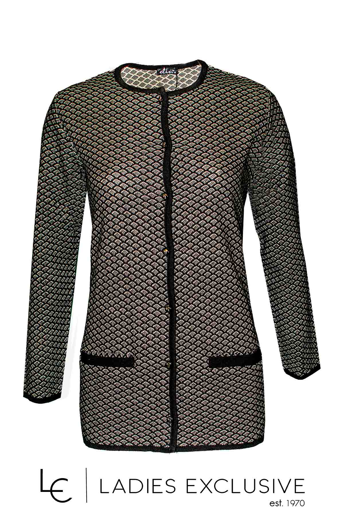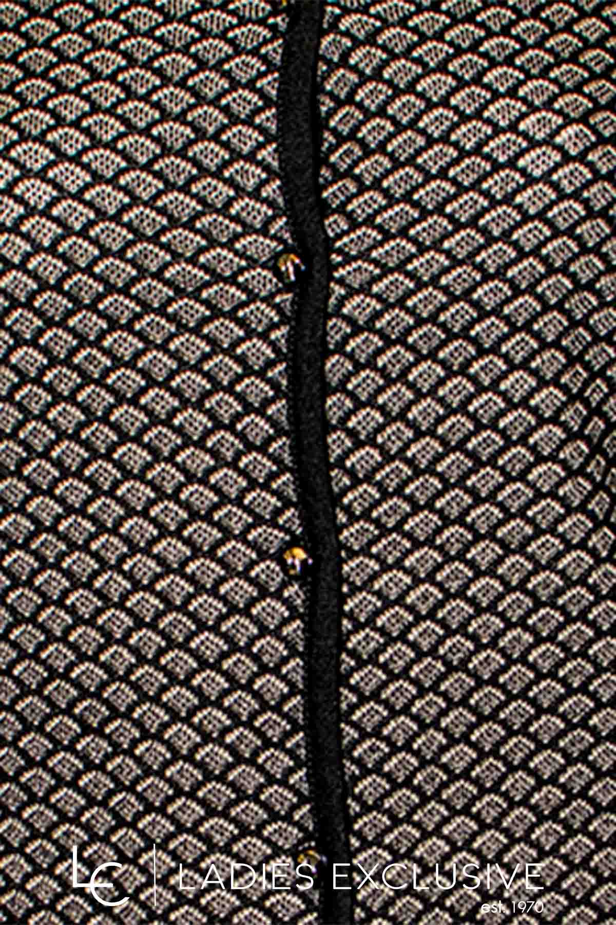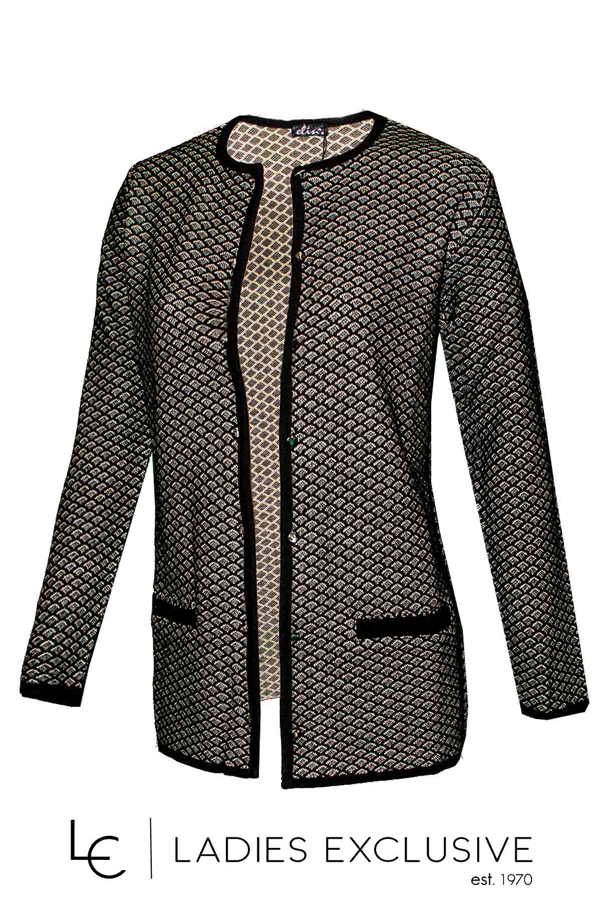 ELIN Ζακέτα ασπρόμαυρη με ανάγλυφη πλέξη και κουμπιά.
