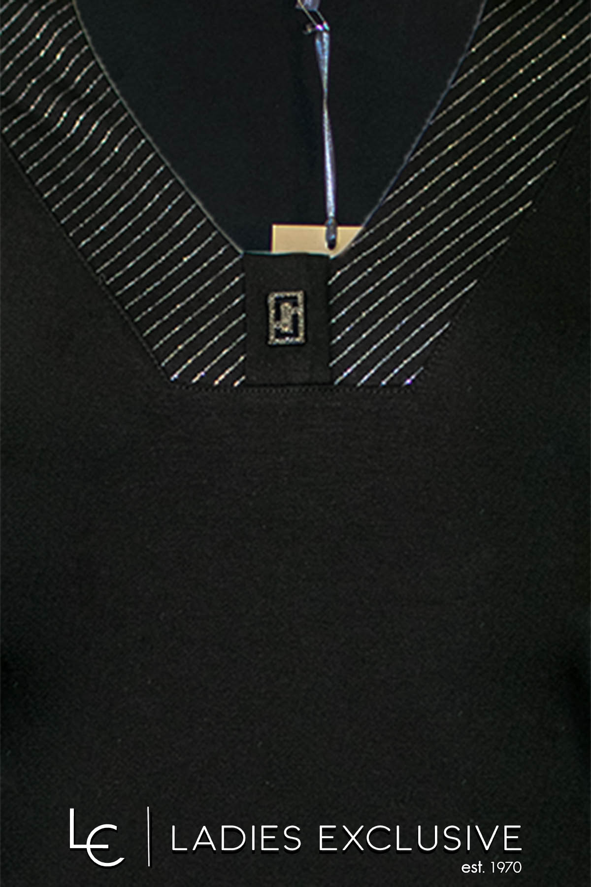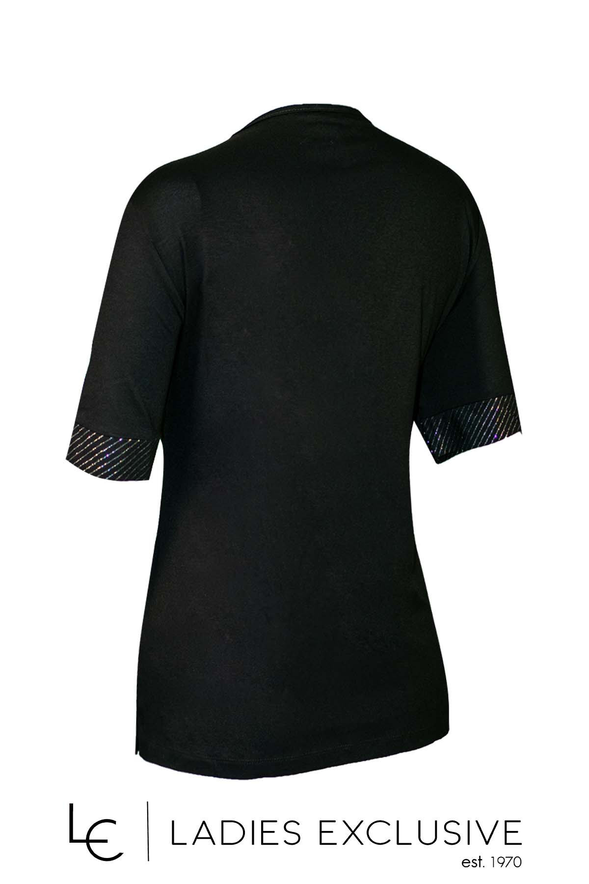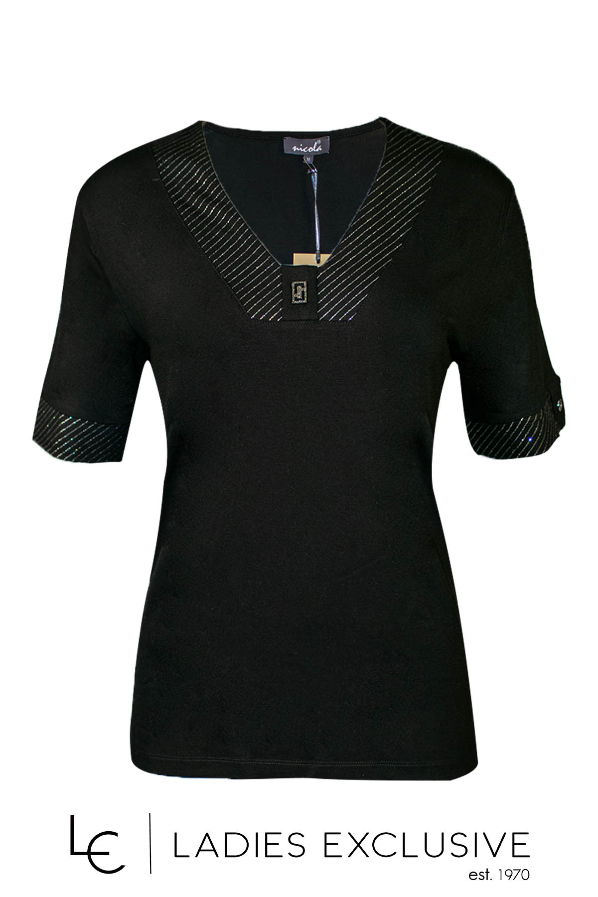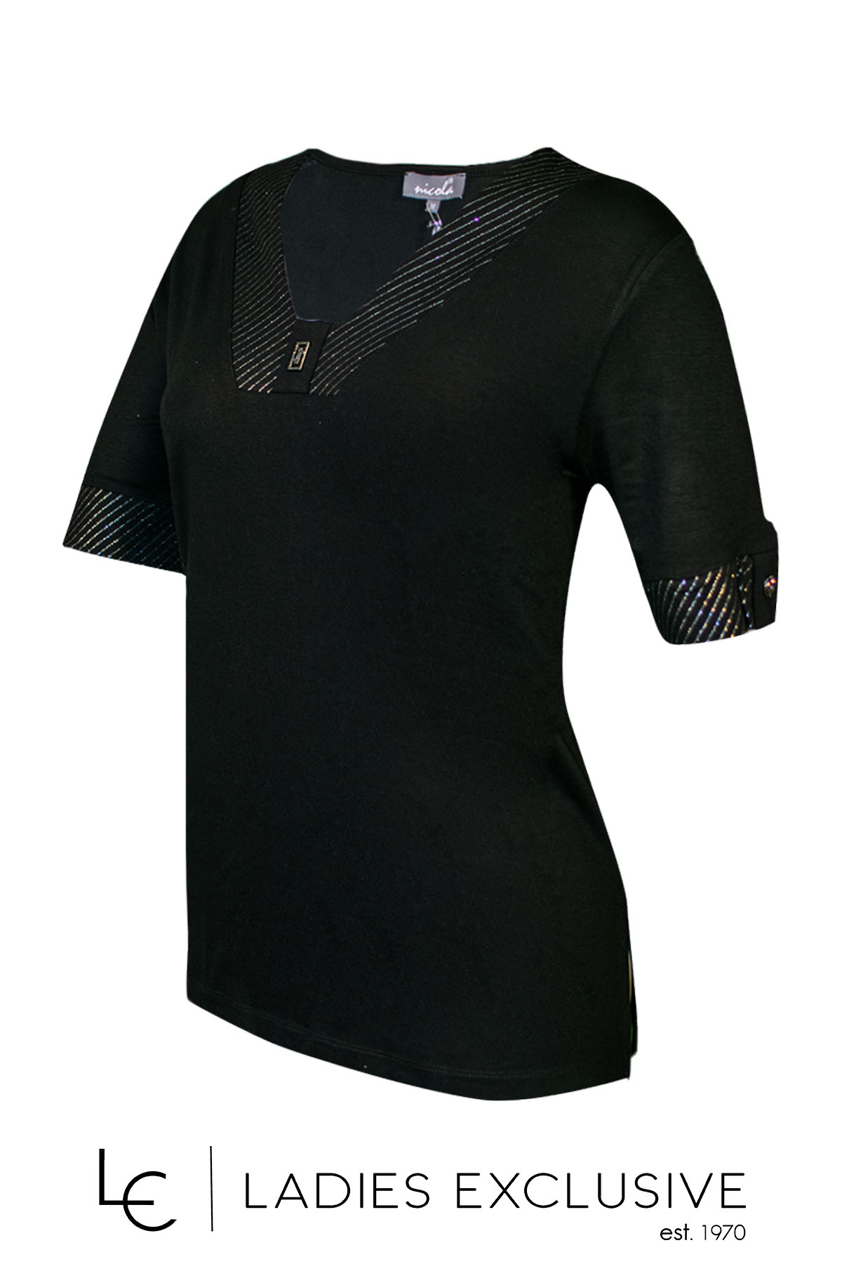 NICOLA Μπλούζα μαύρη κοντομάνικη με v και ασημοκλωστή.