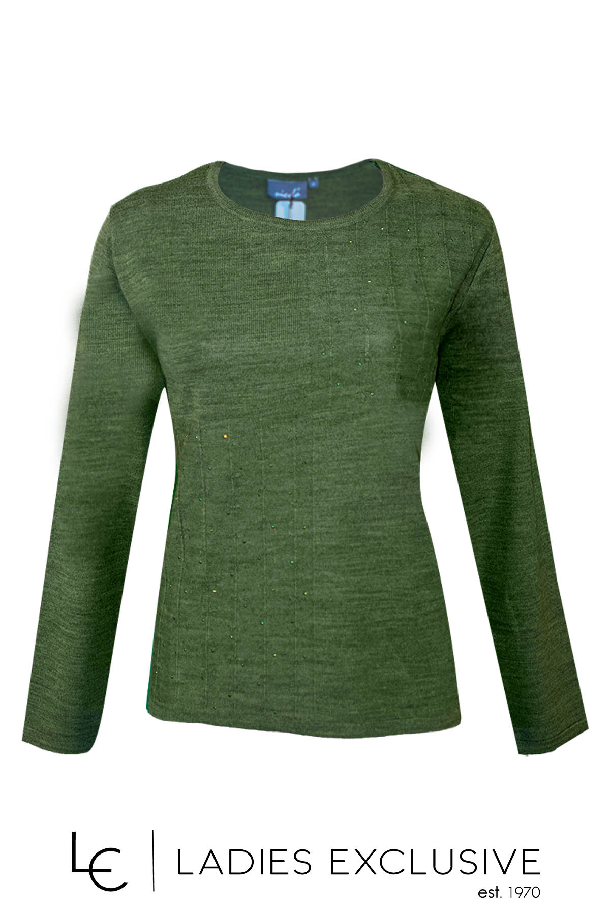 NICOLA Μπλούζα πράσινη μάλλινη με ανάγλυφα τετράγωνα και διακριτικά στρας.
