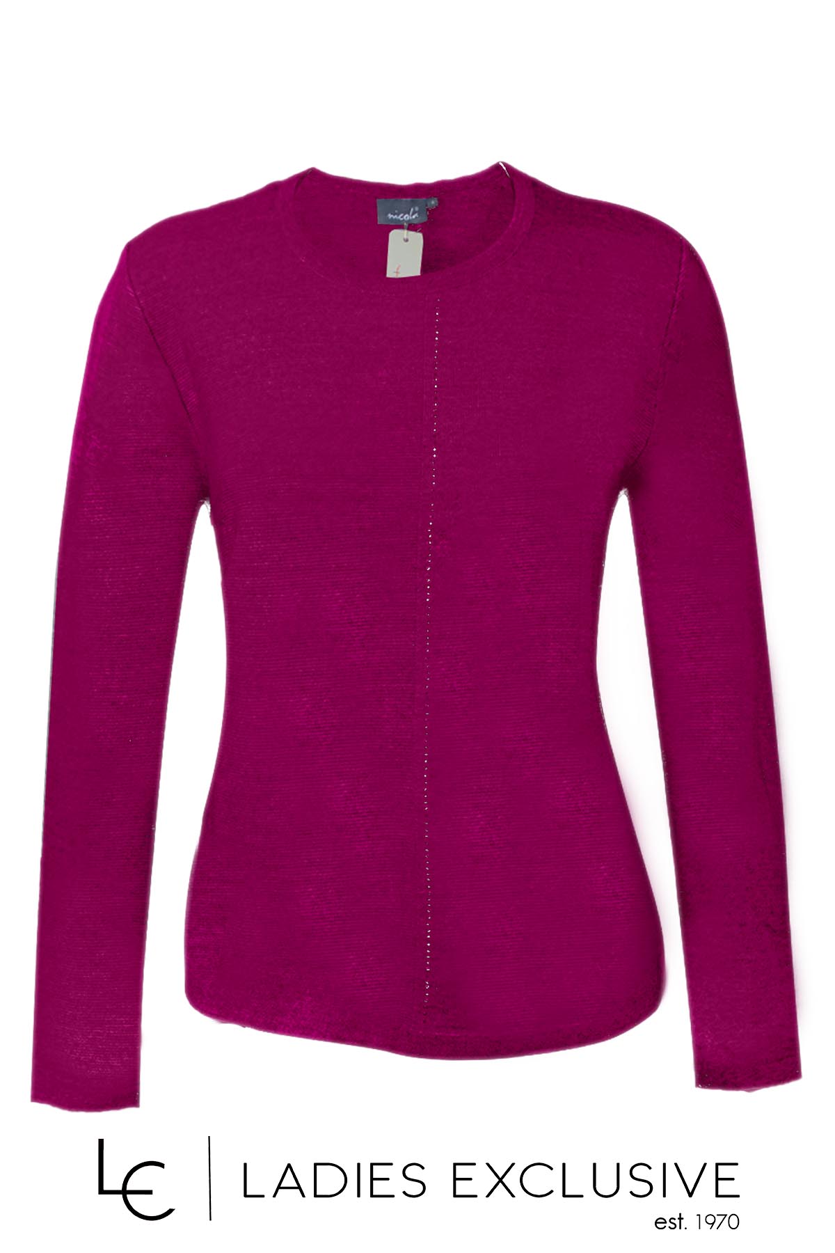 NICOLA Μπλούζα φούξια μάλλινη με σειρά από στρας κάθετα.