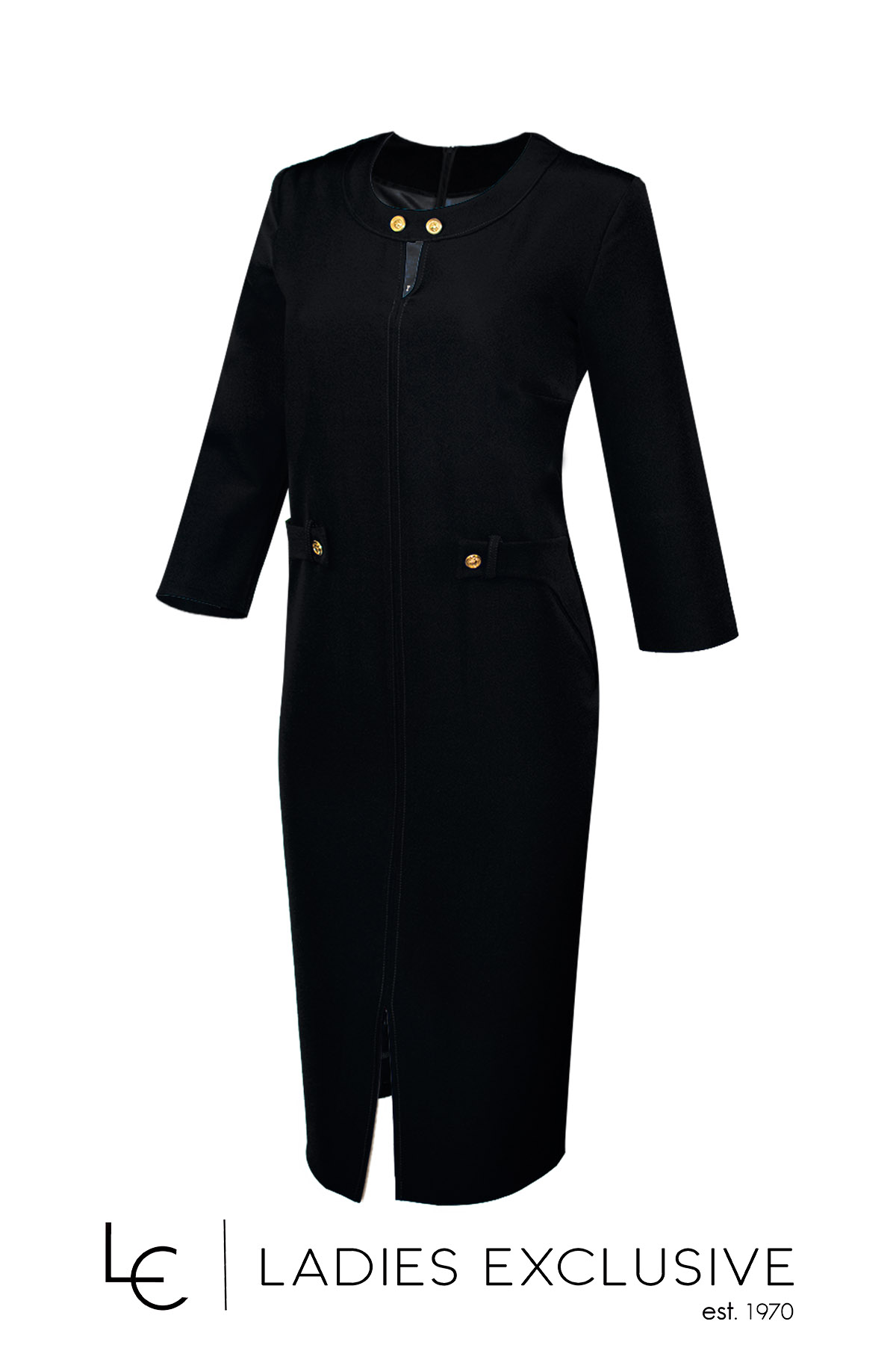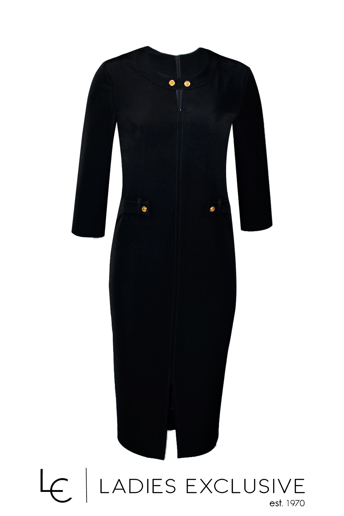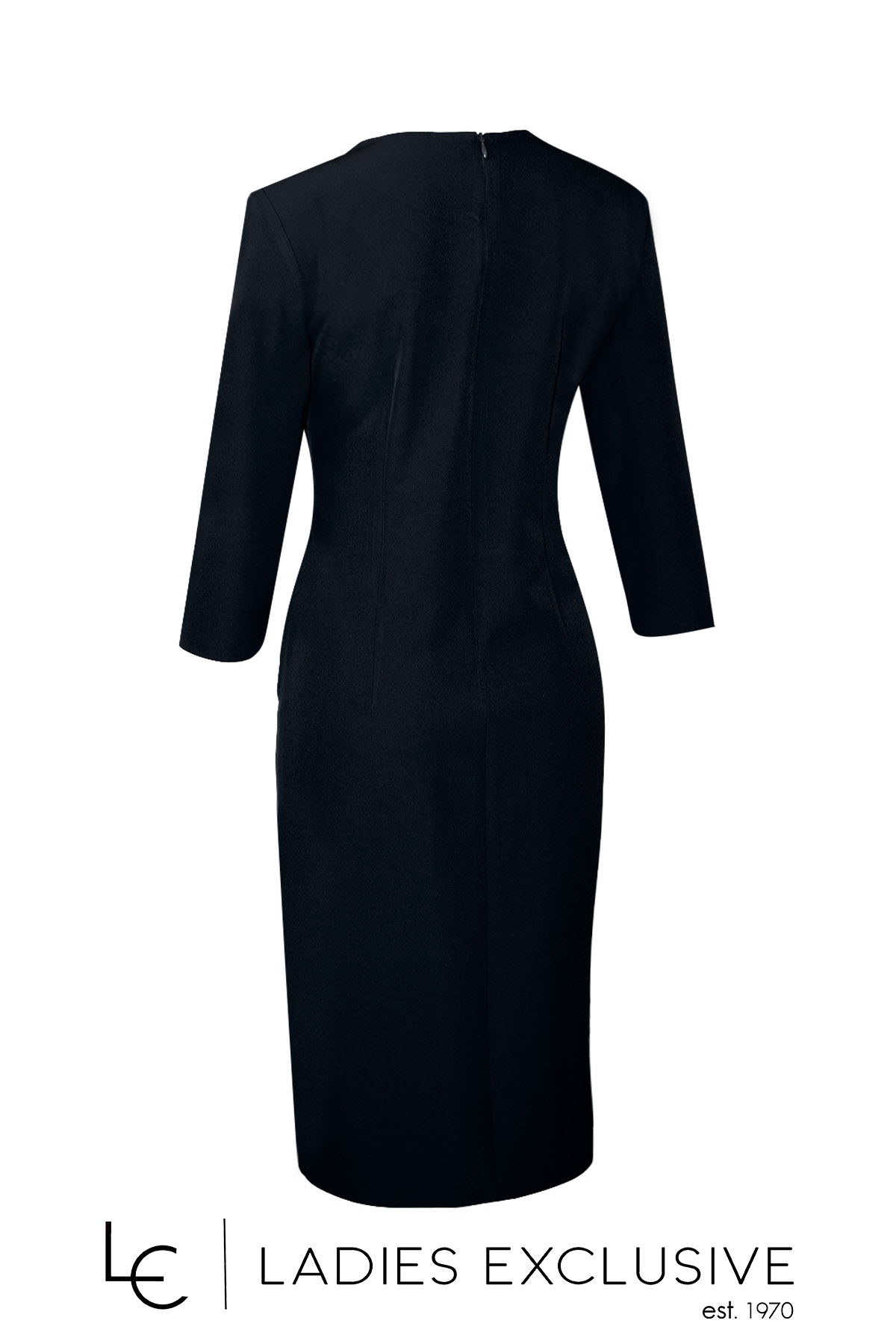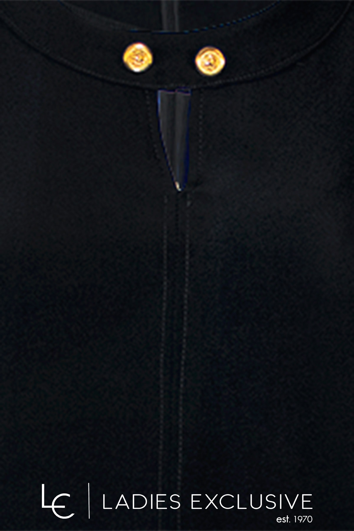 VETO Φόρεμα μαύρο σε ίσια γραμμή με μανίκι 3/4 και άνοιγμα στο μπροστινό μέρος.