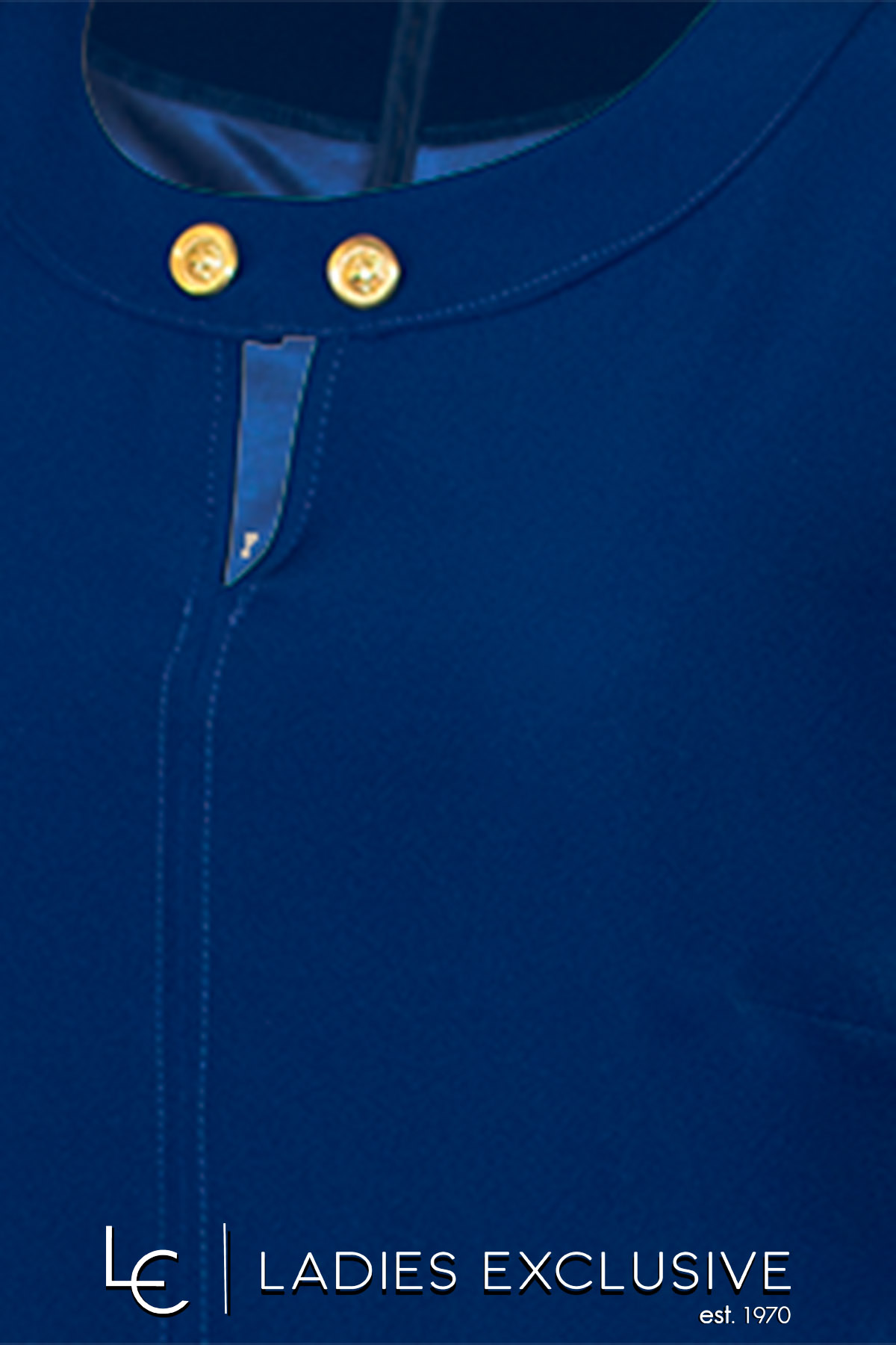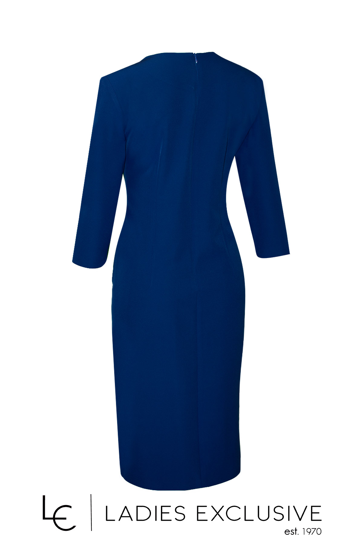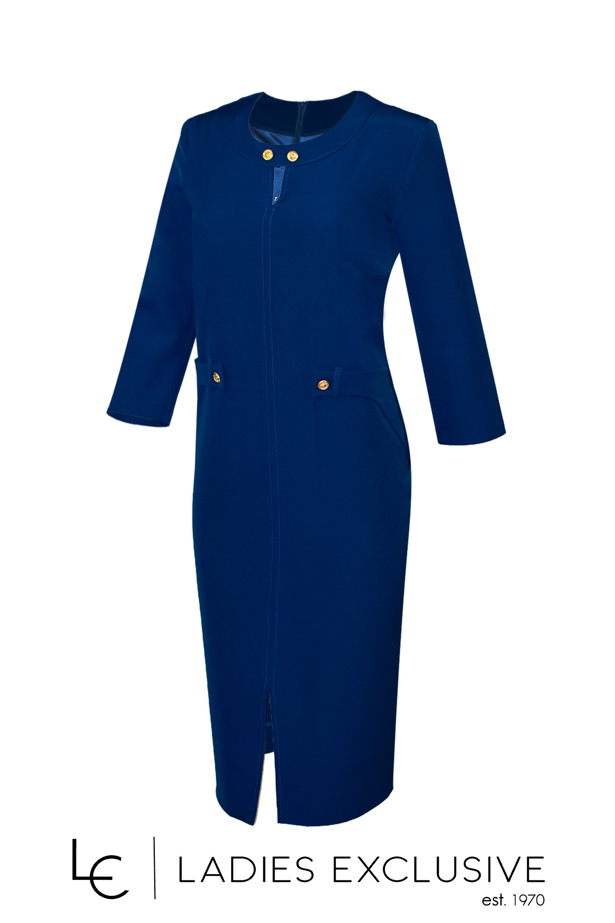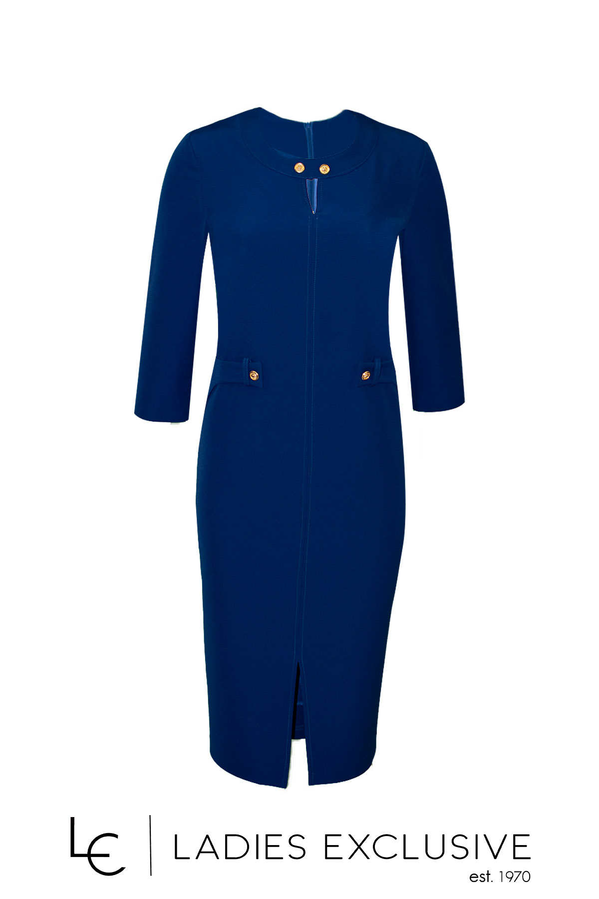 VETO Φόρεμα μπλε ρουά σε ίσια γραμμή με μανίκι 3/4 και άνοιγμα στο μπροστινό μέρος.
