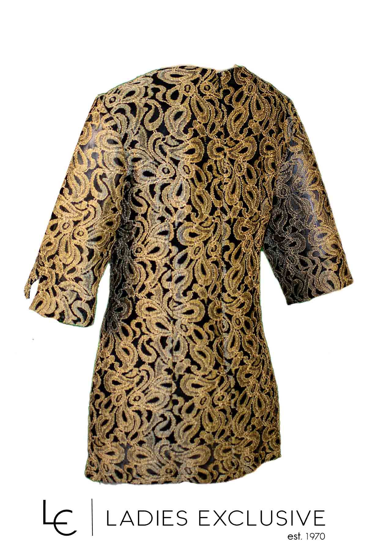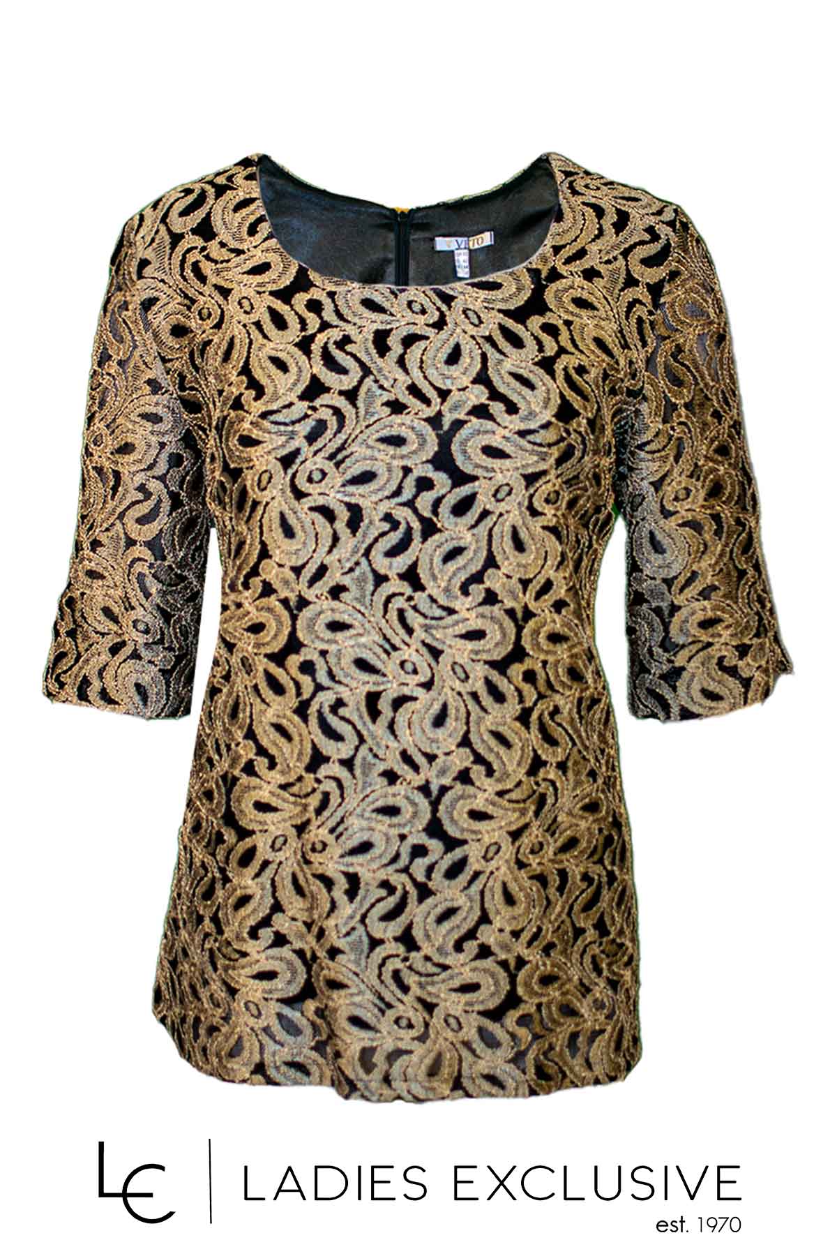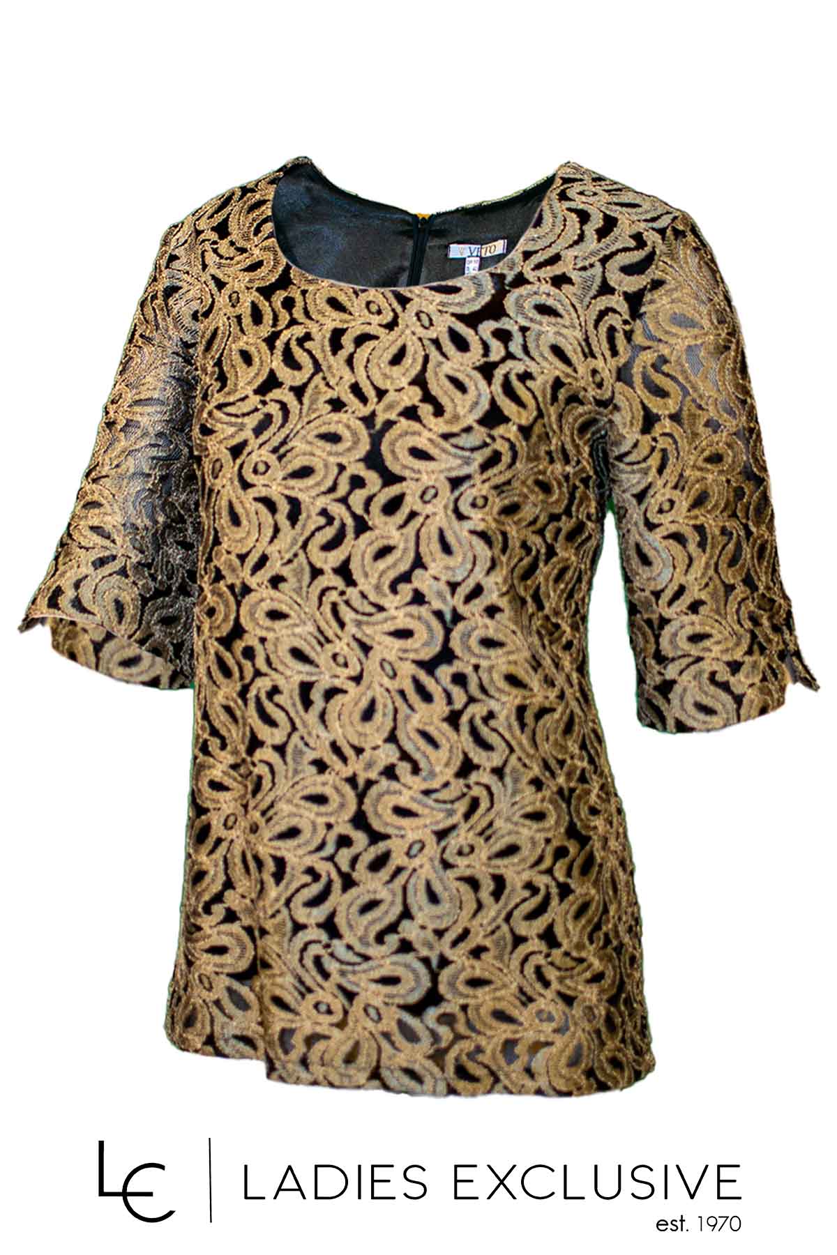 VETO Μπλούζα κοντομάνικη από δαντέλα χρυσή με μαύρη επένδυση.