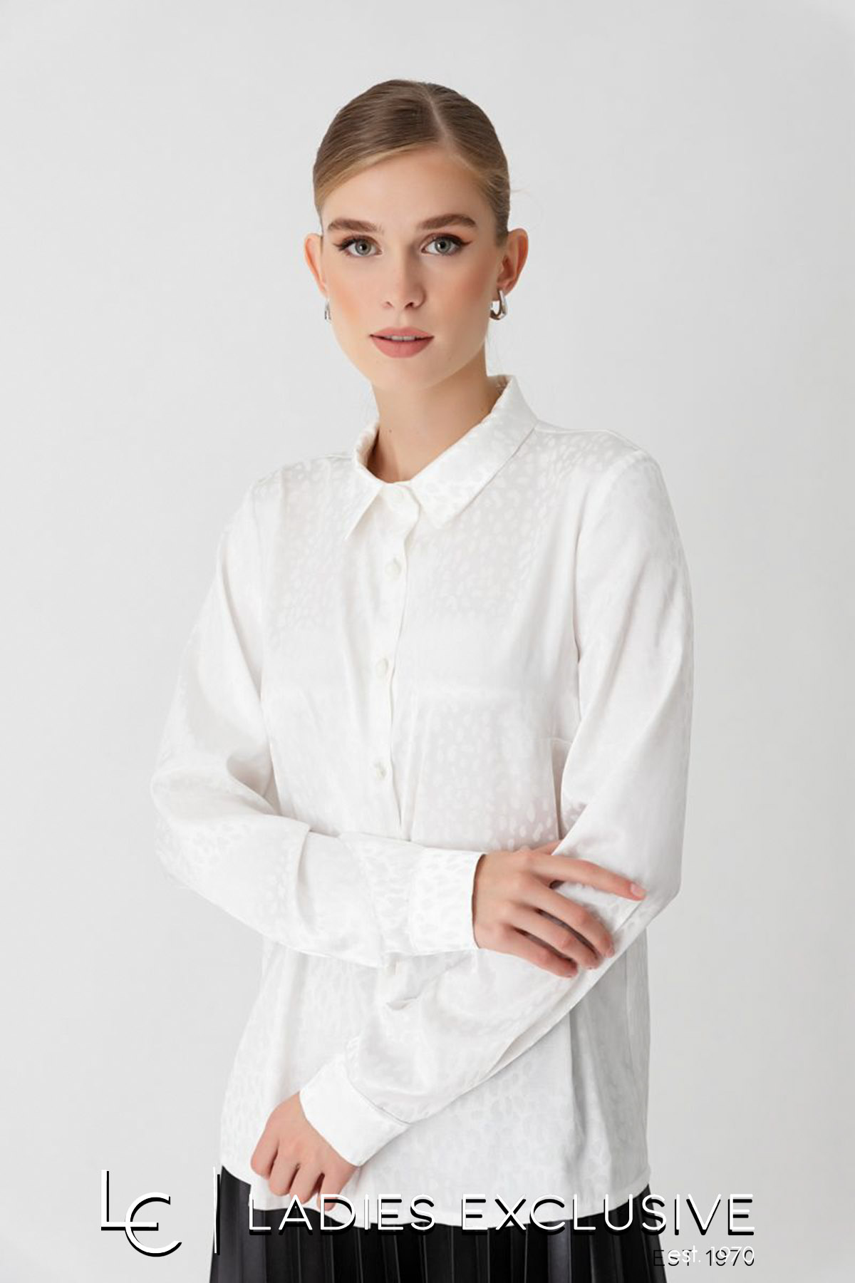 VETO Πουκάμισο λευκό σατέν, με ανάγλυφα σχέδια στην ύφανση.