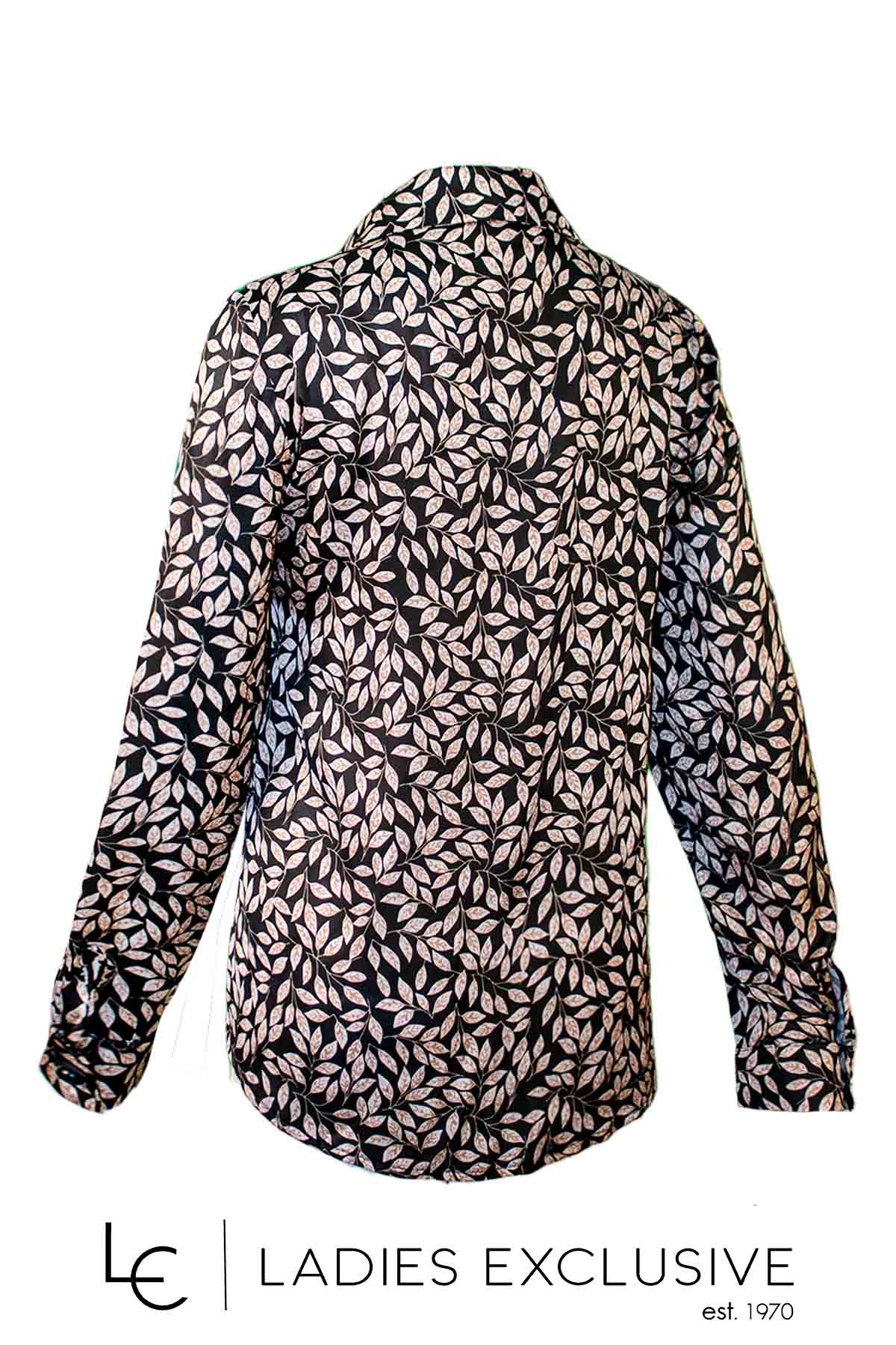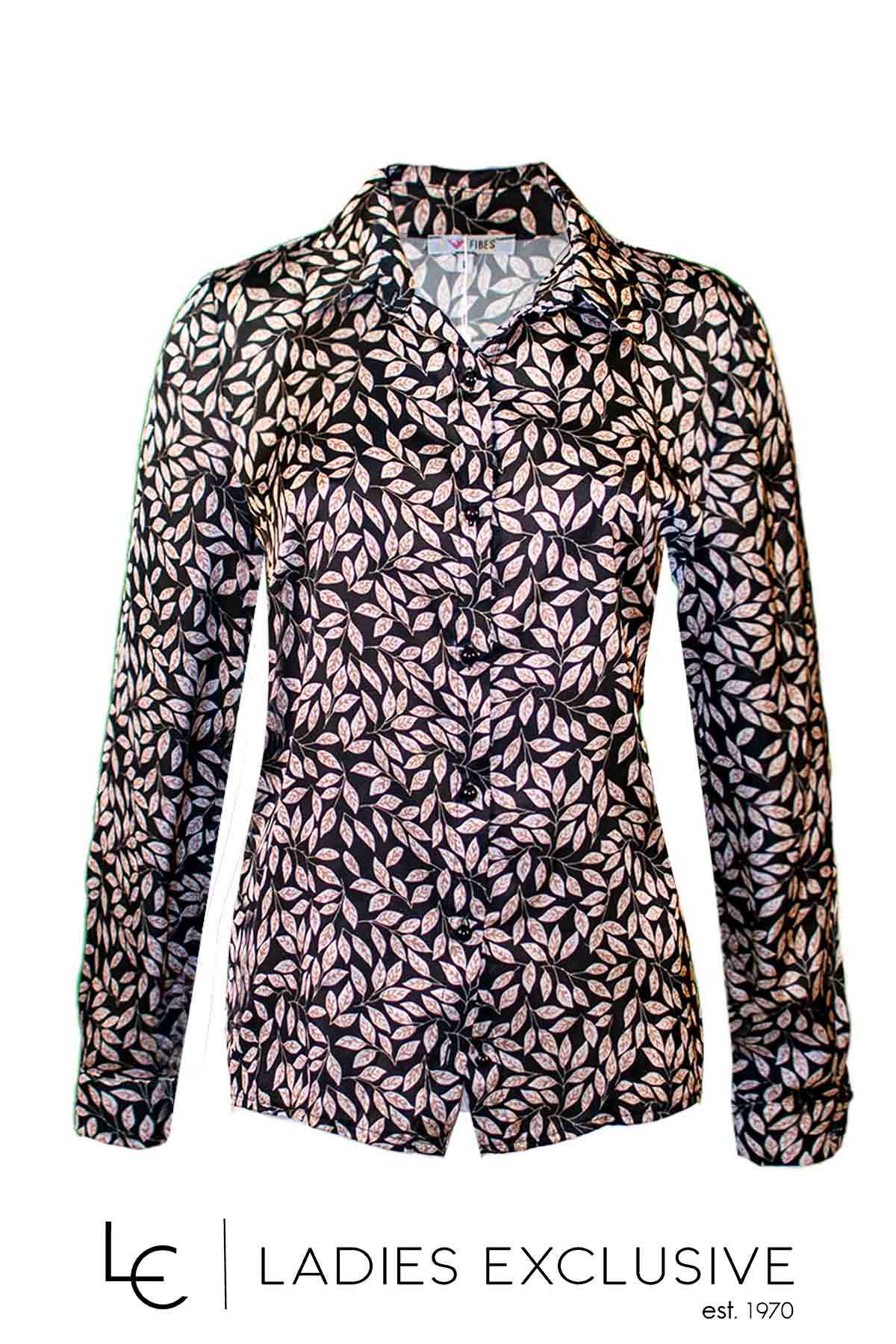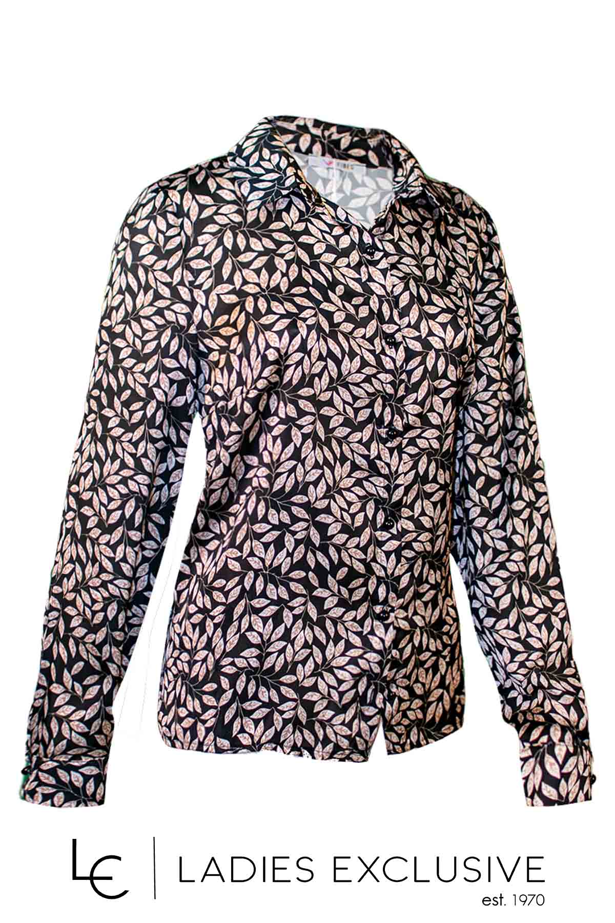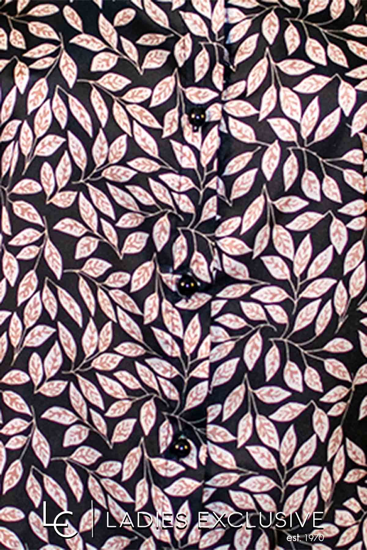 VETO Πουκάμισο μαύρο με μπεζ φυλλαράκια σατέν με πέτο γιακά.