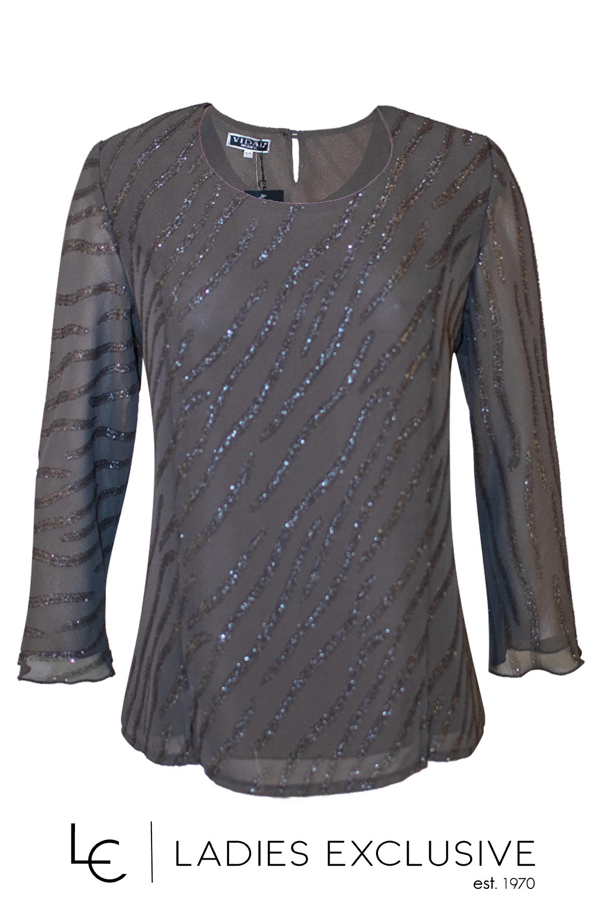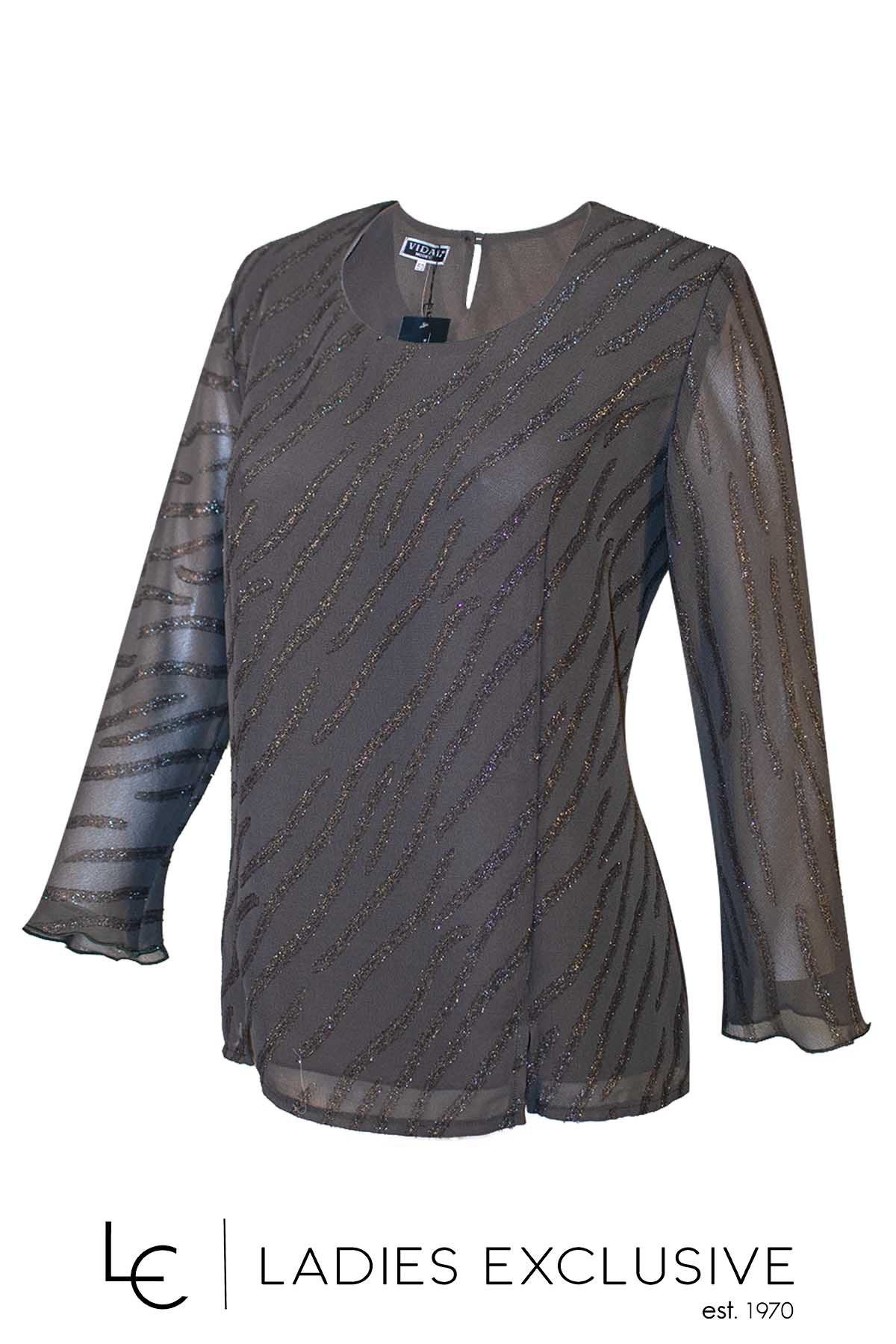 VIDAL Μπλούζα λαδί από ζορζέτα με μικρά στρας.