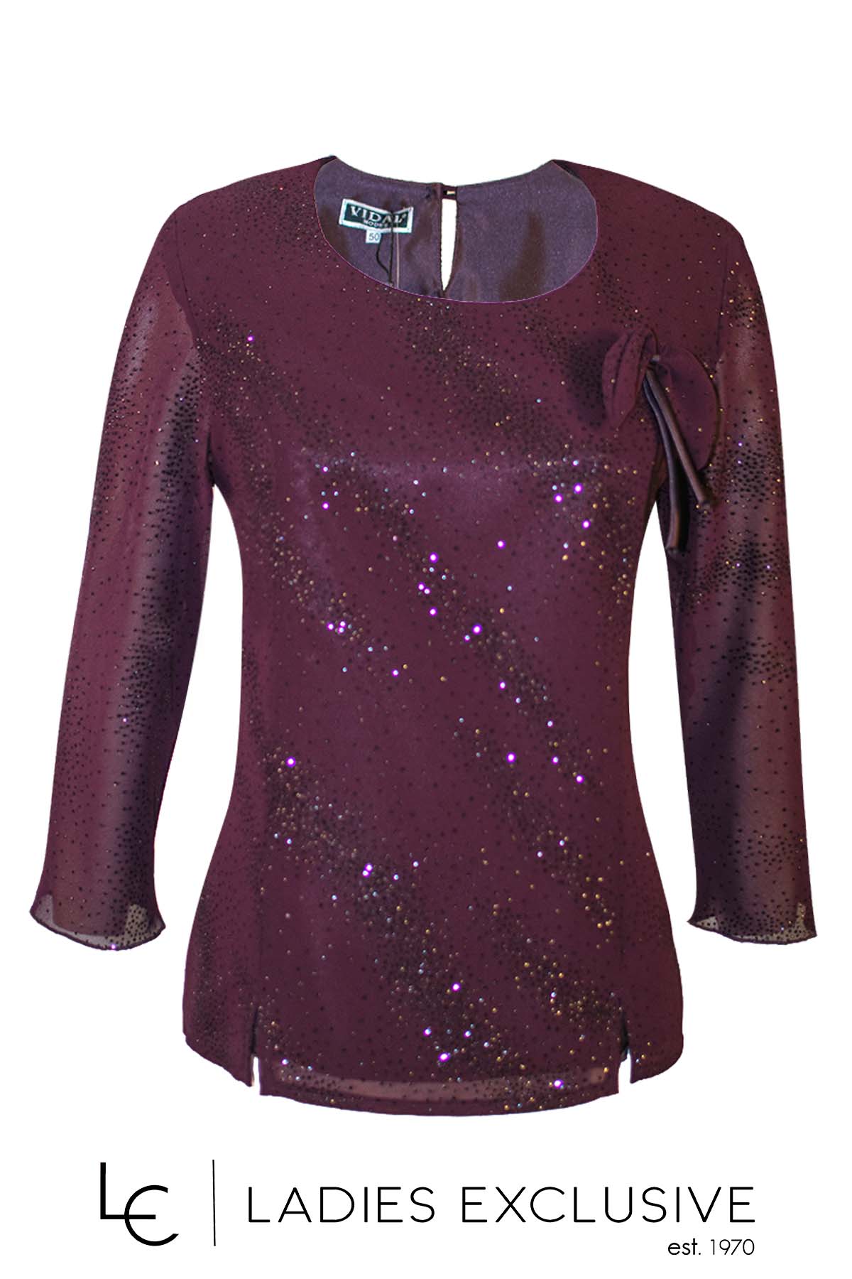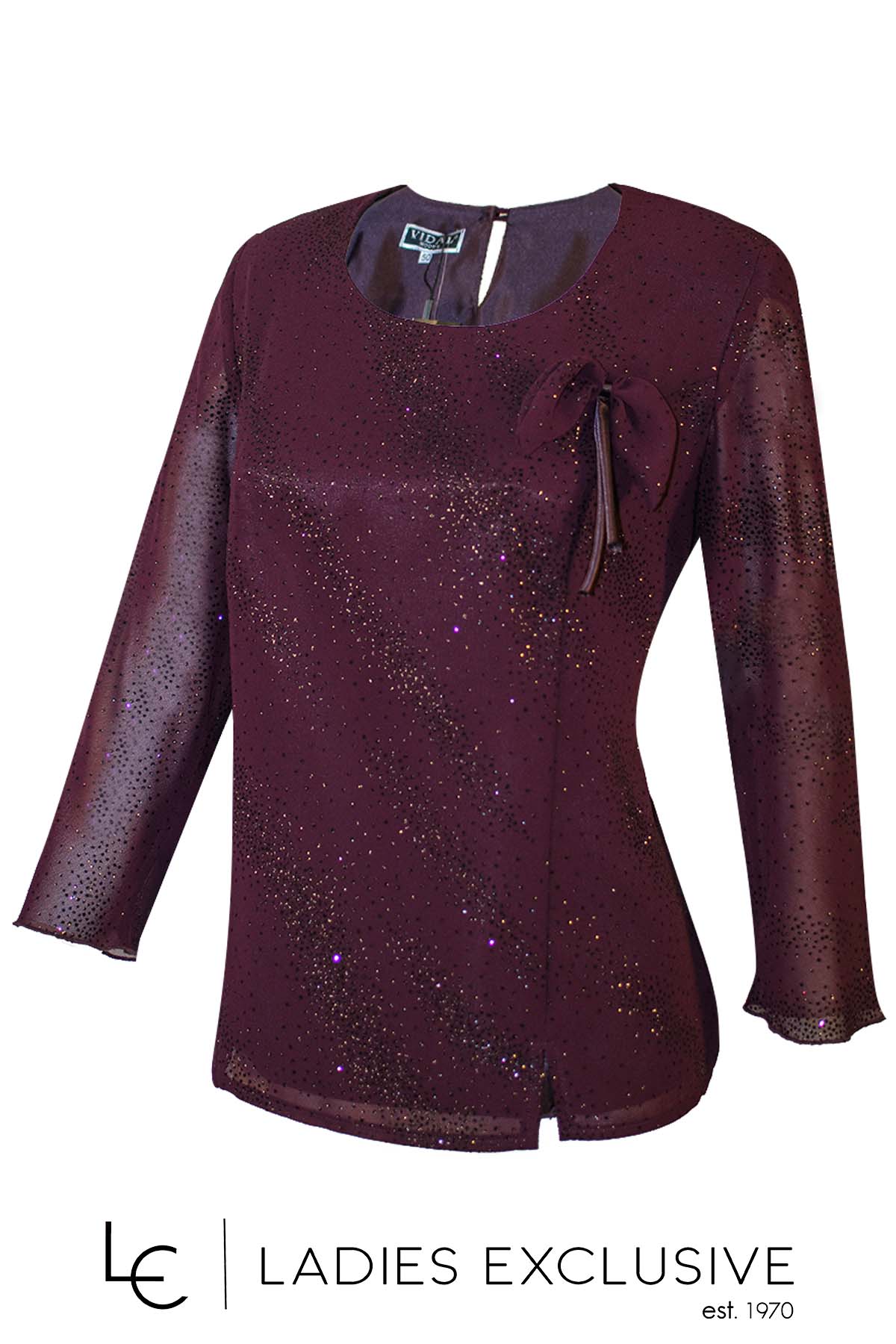 VIDAL Μπλούζα μπορντώ από ζορζέτα με μπουτουνιέρα καρφίτσα και μικρά στρας.