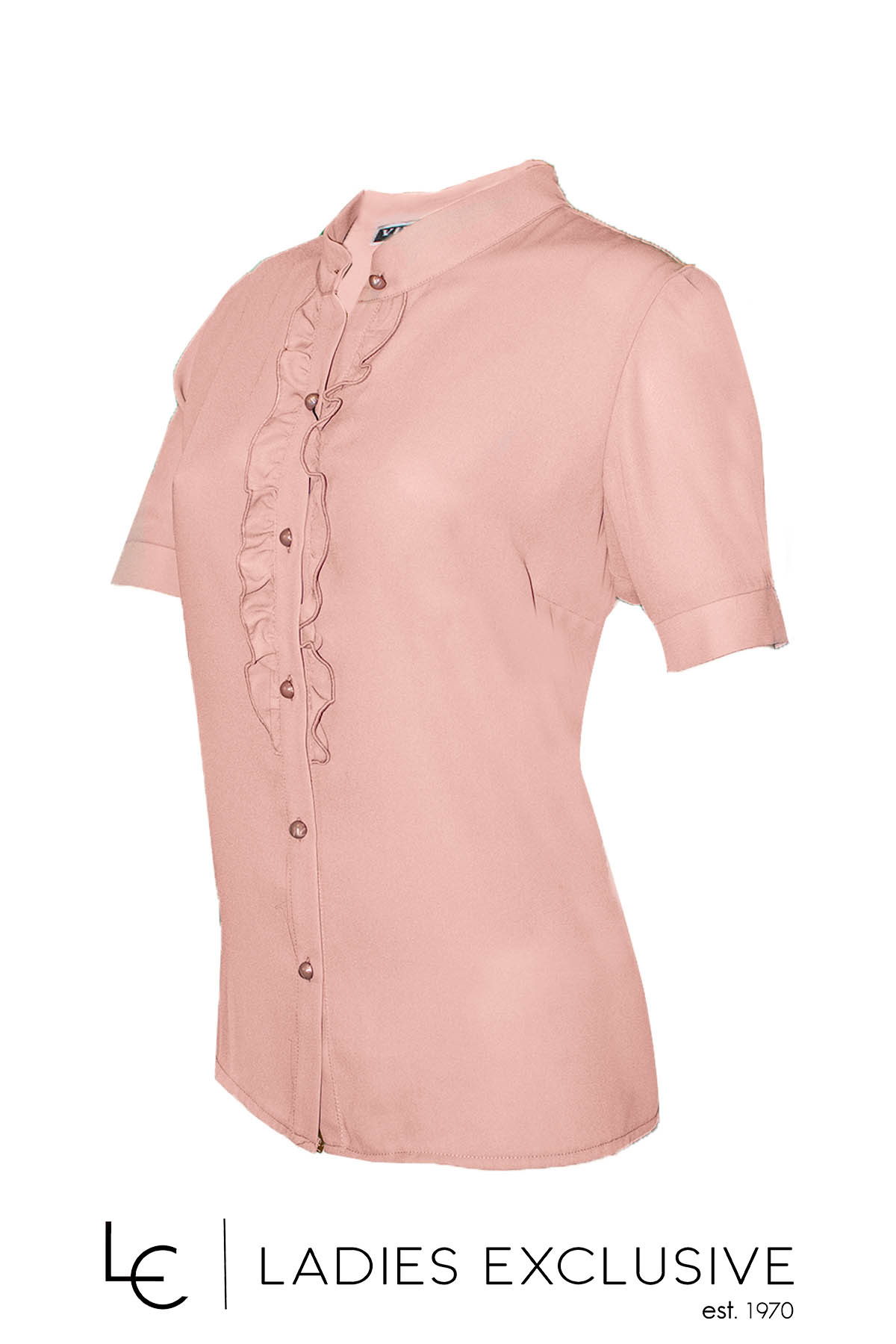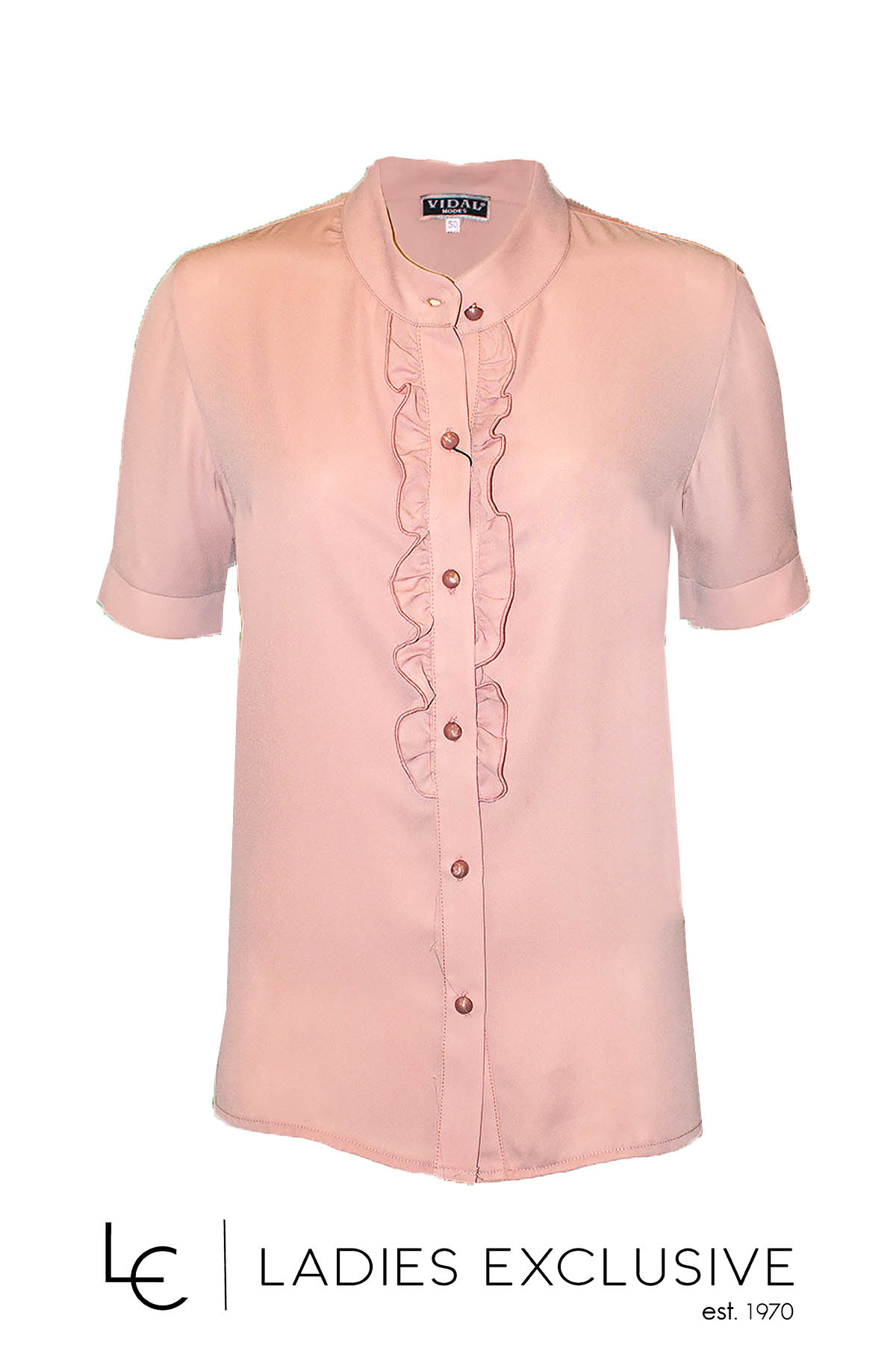 VIDAL Πουκάμισο κοντομάνικο ροζ με φουσκωτό μανίκι και βολάν στο κούμπωμα.