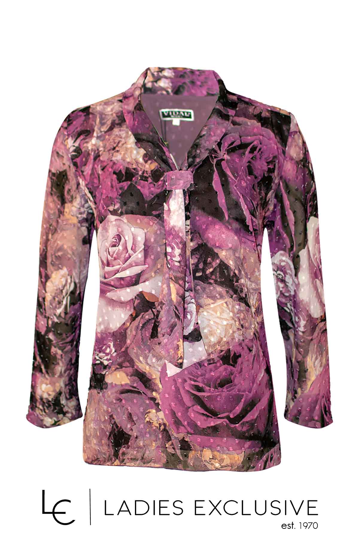 VIDAL Μπλούζα φλοράλ σε μωβ αποχρώσεις από ανάγλυφη μουσελίνα, με σχέδιο γραβάτα.
