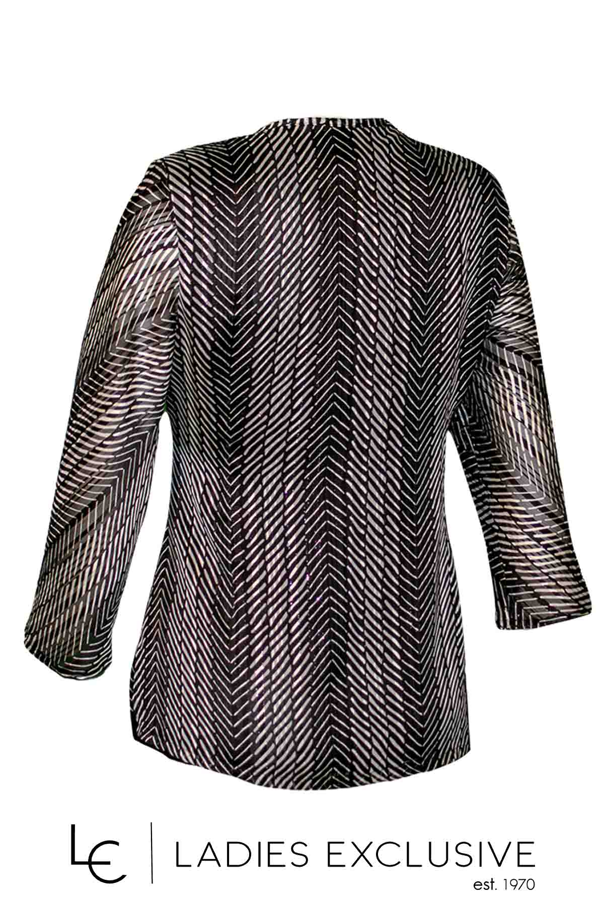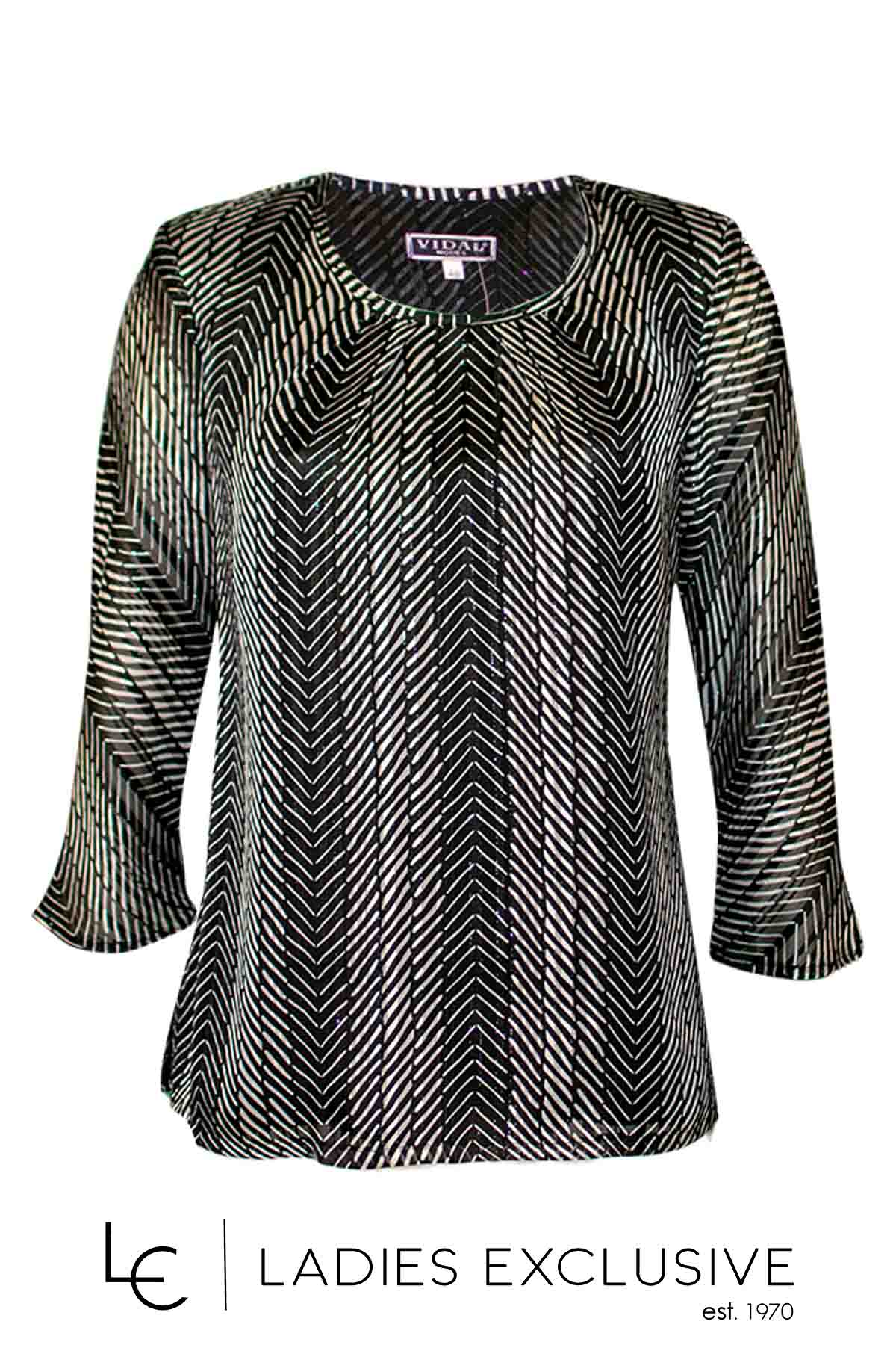 VIDAL Μπλούζα ασπρόμαυρη από μουσελίνα με μανίκι 3/4 και ασημοκλωστή στη ύφανση.