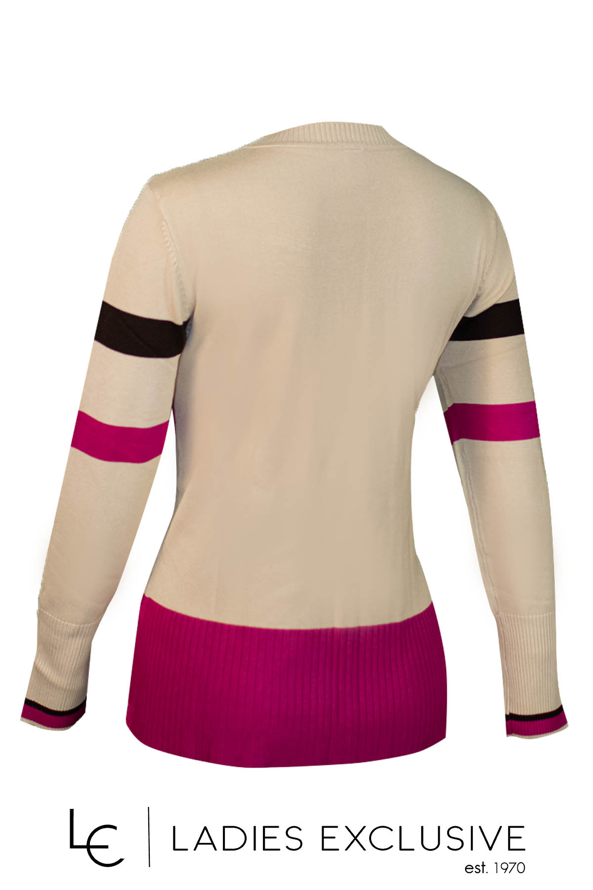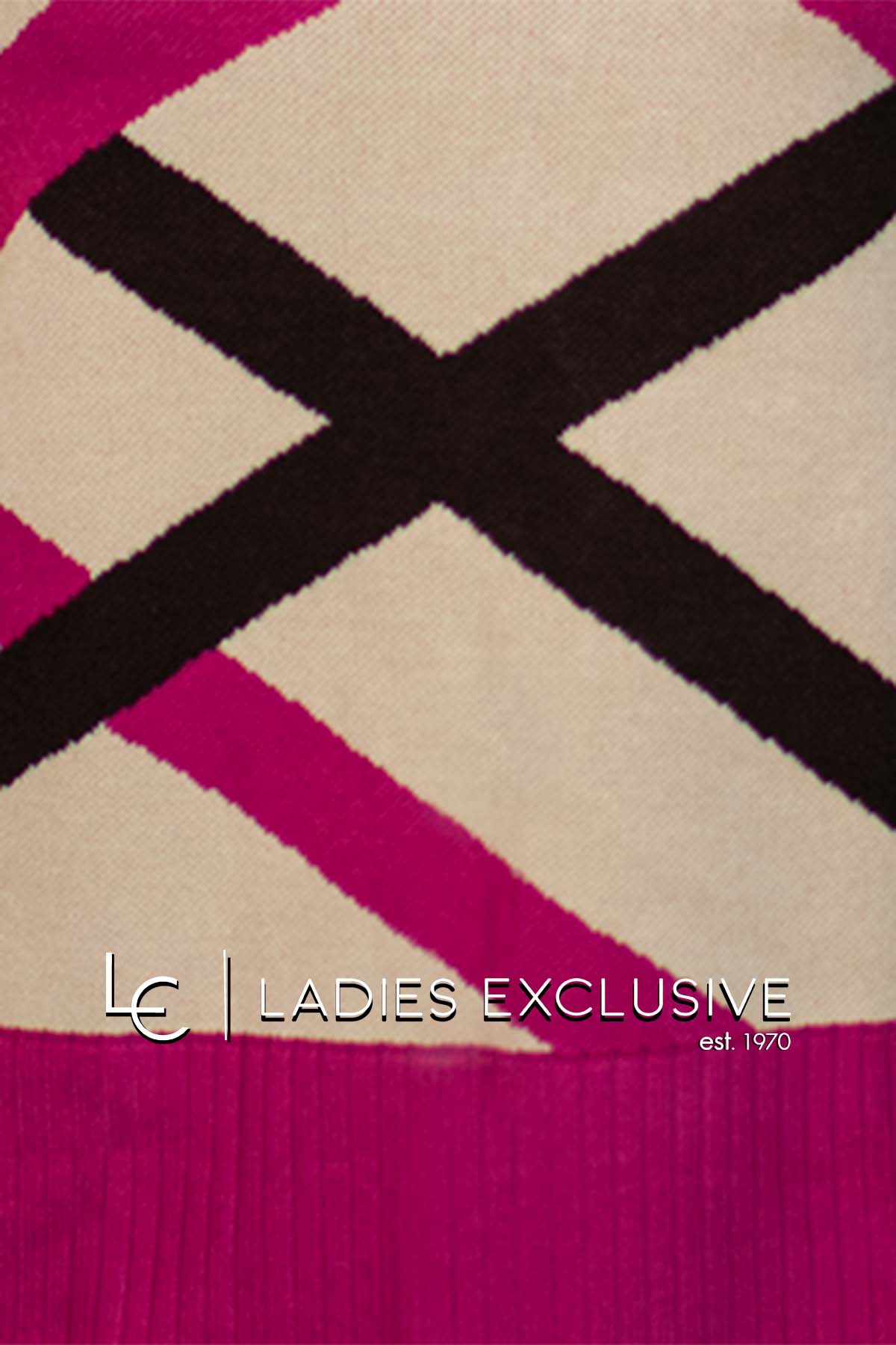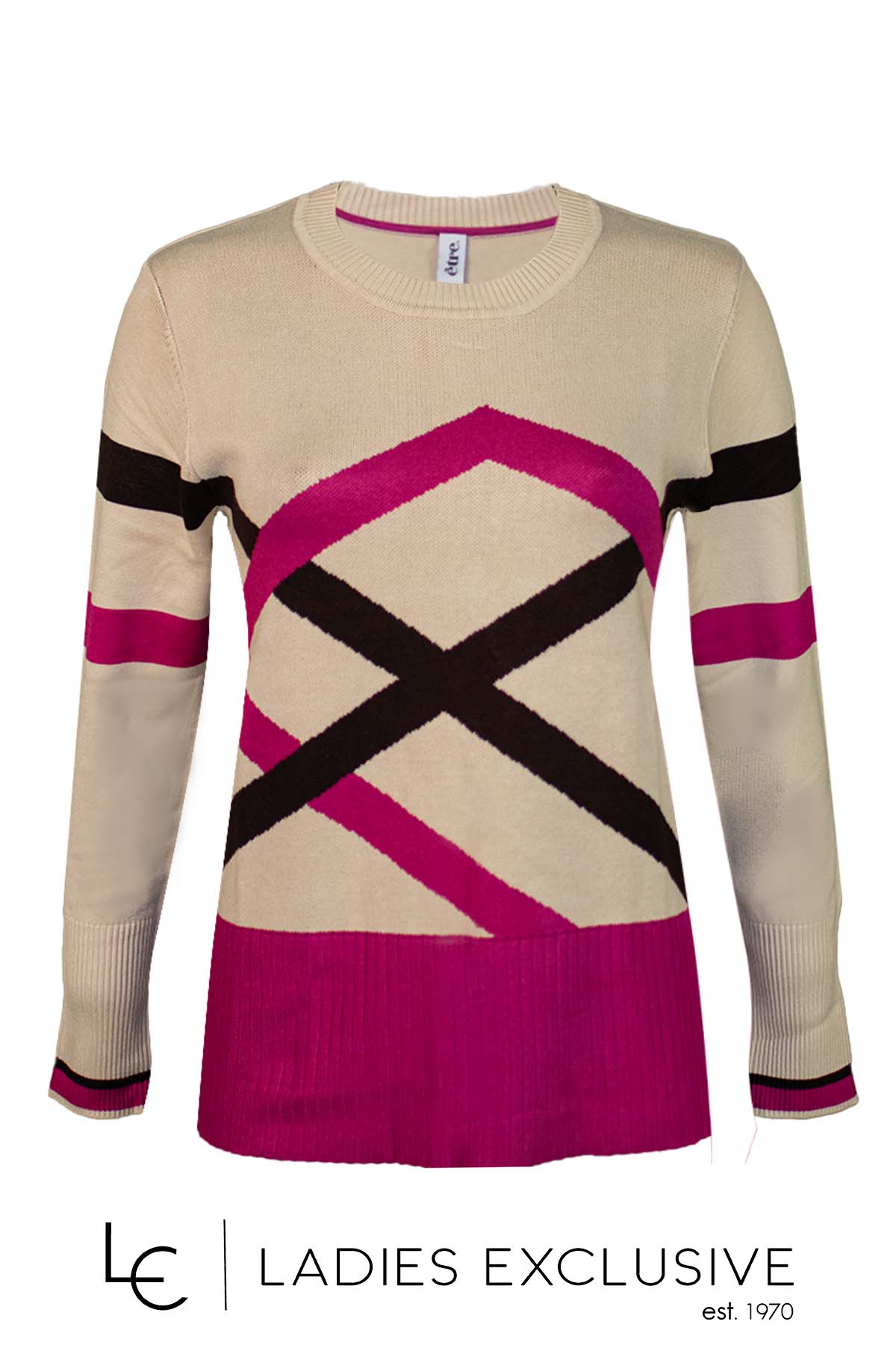 ÊTRE Μπλούζα μπεζ πλεκτή με με διασταυρωτά σχέδια και φούξια με καφέ τελειώματα.