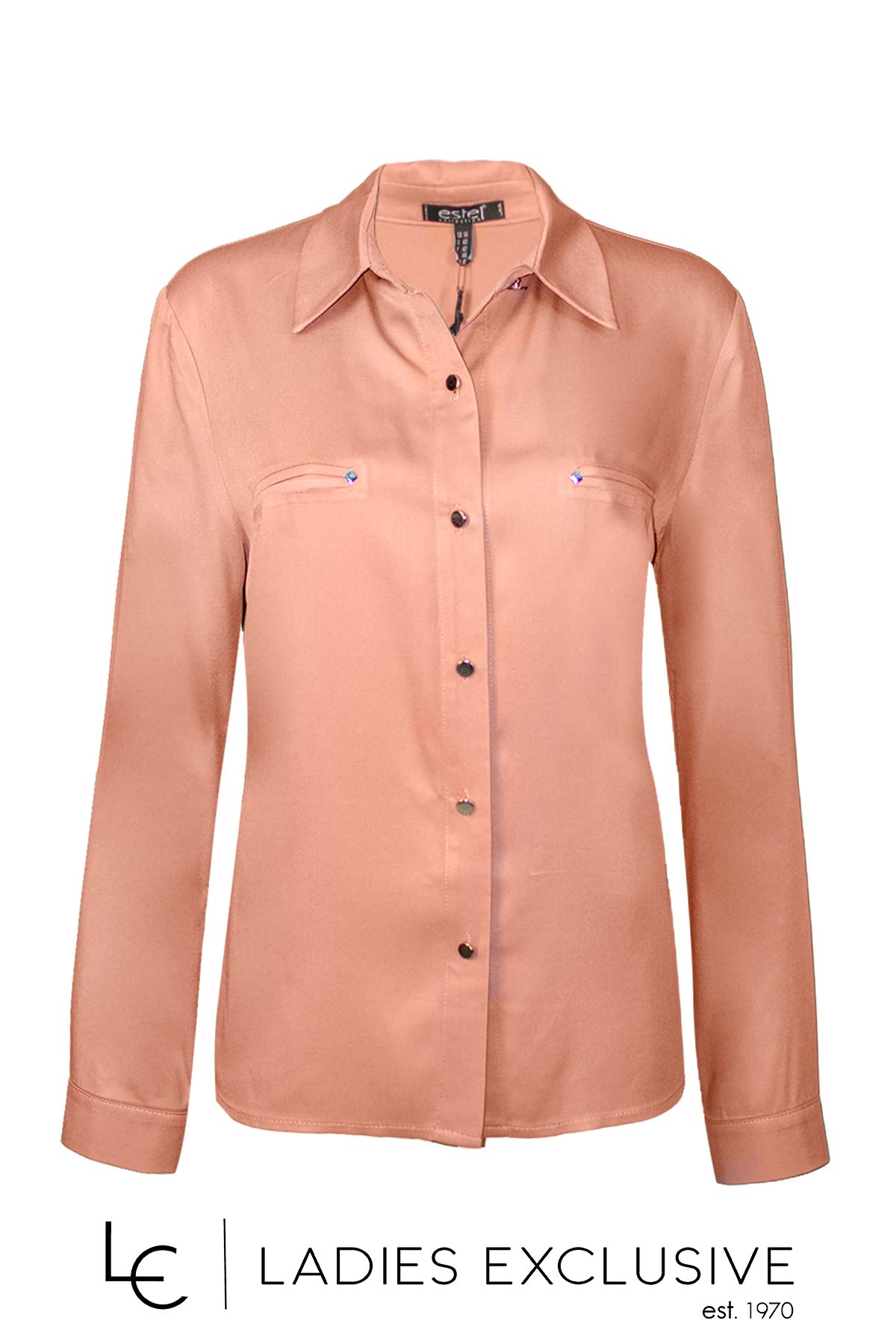 ESTEL Πουκάμισο ροζ από βισκόζη, με διακοσμητικές τσέπες και τρουκς.