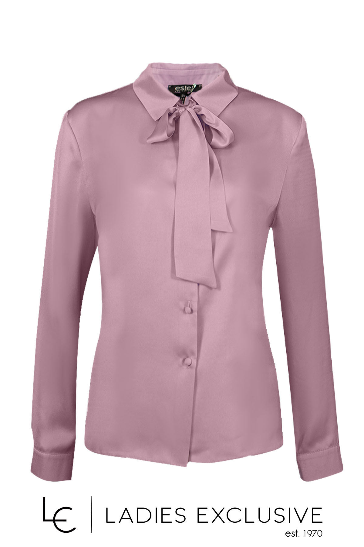 ESTEL Πουκάμισο λιλά σατέν με δέσιμο στο πέτο.