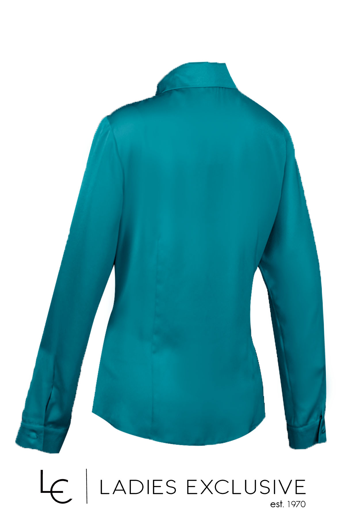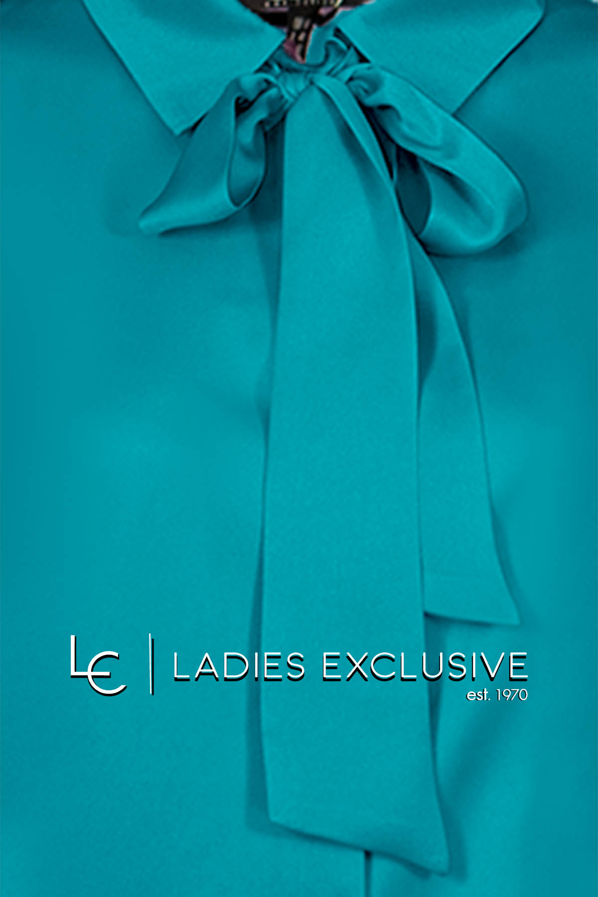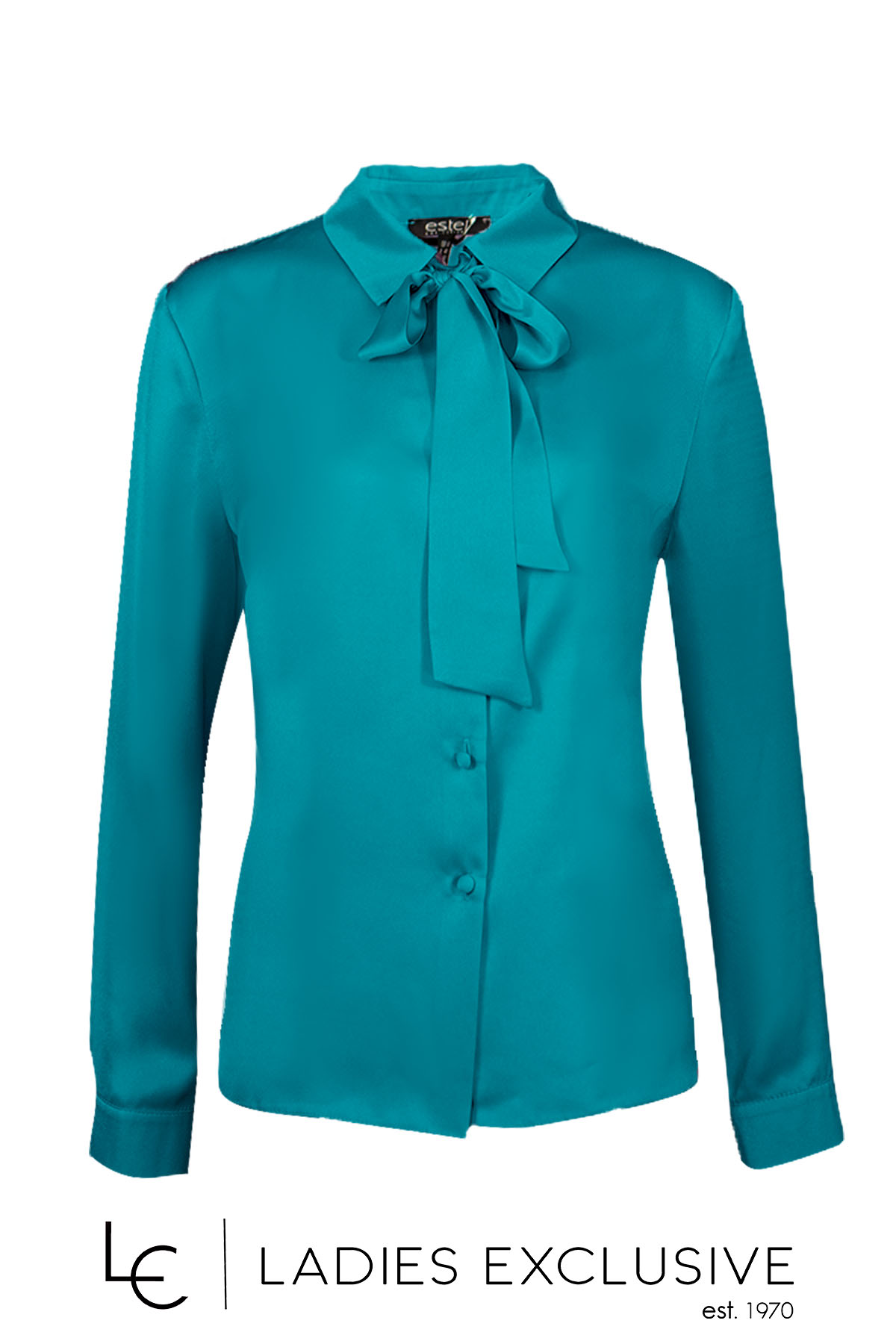 ESTEL Πουκάμισο πετρόλ σατέν με δέσιμο στο πέτο.