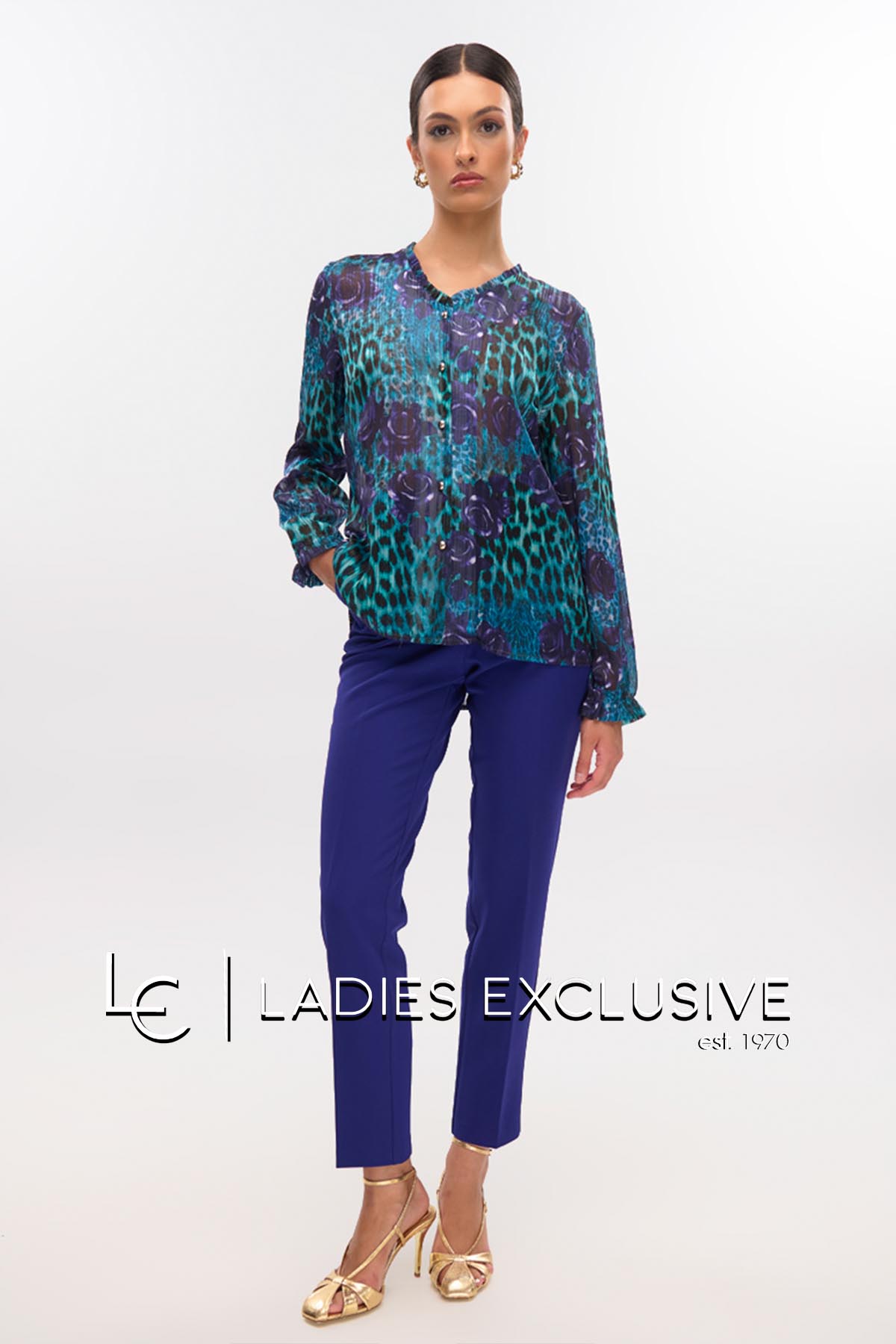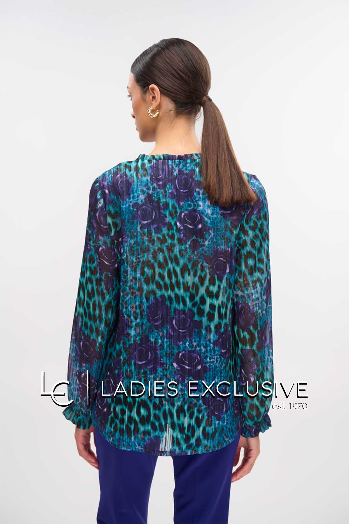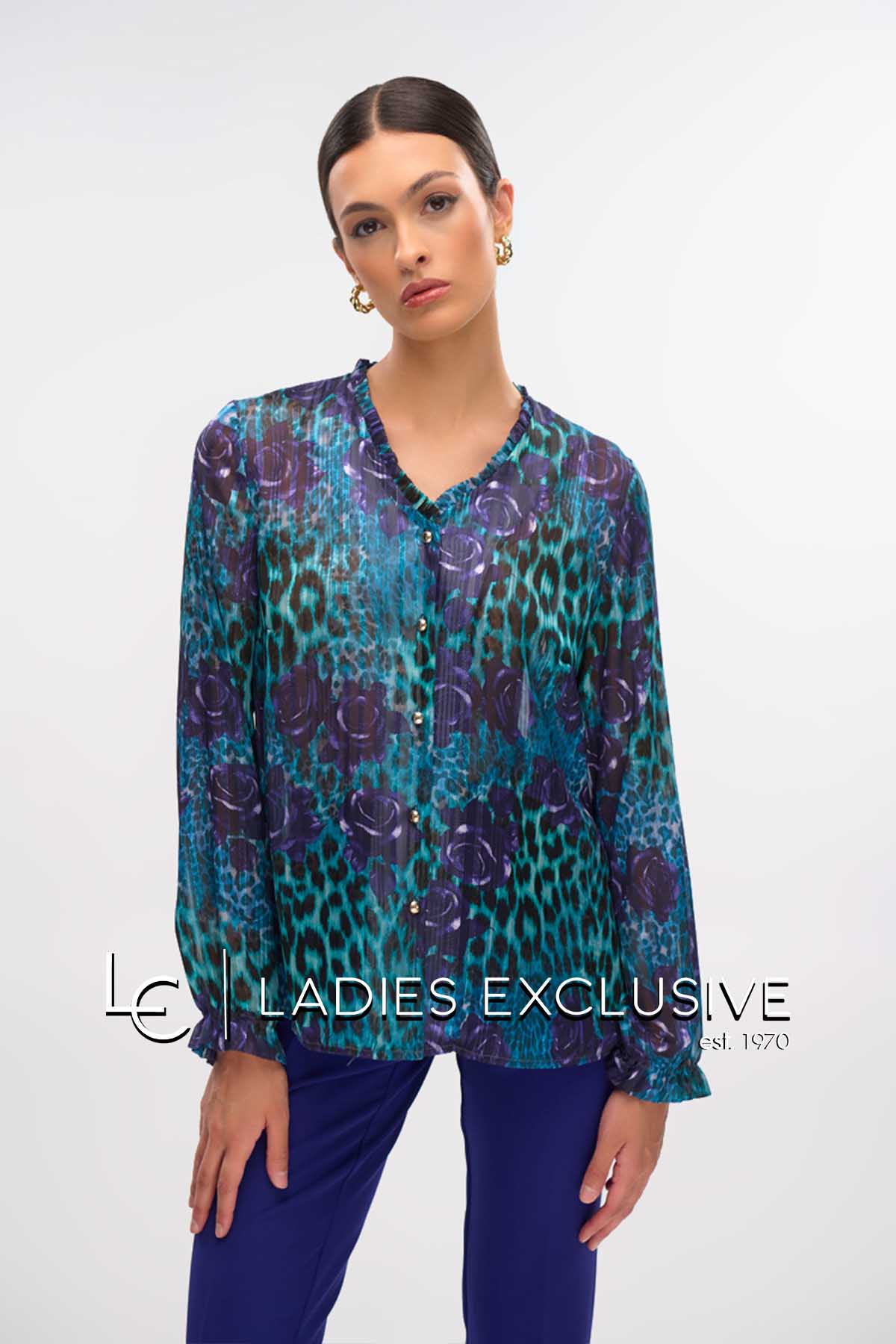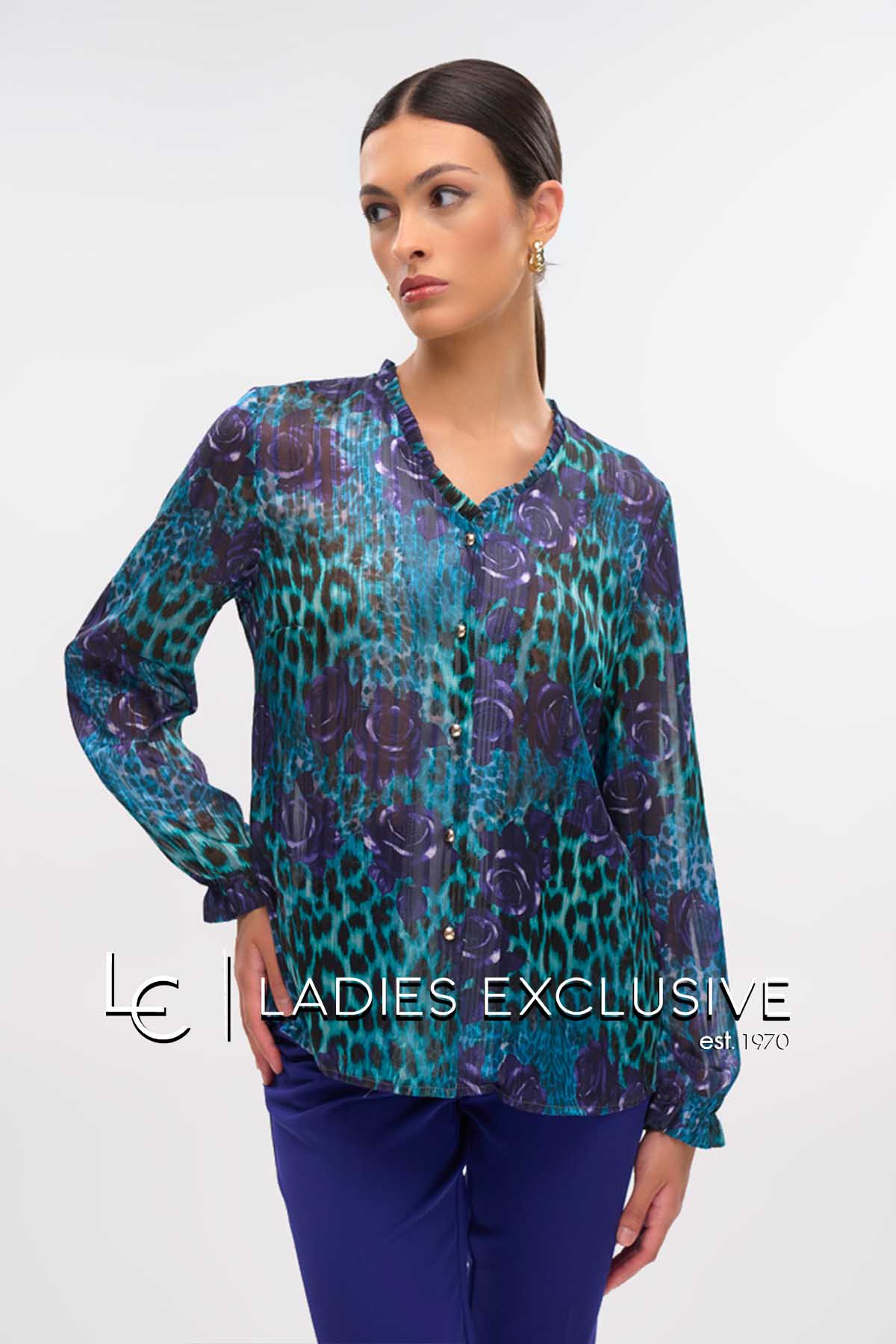 FIBES Πουκάμισο animal print με άνοιγμα v και βολάν. Τα μανίκια είναι σιθρού.