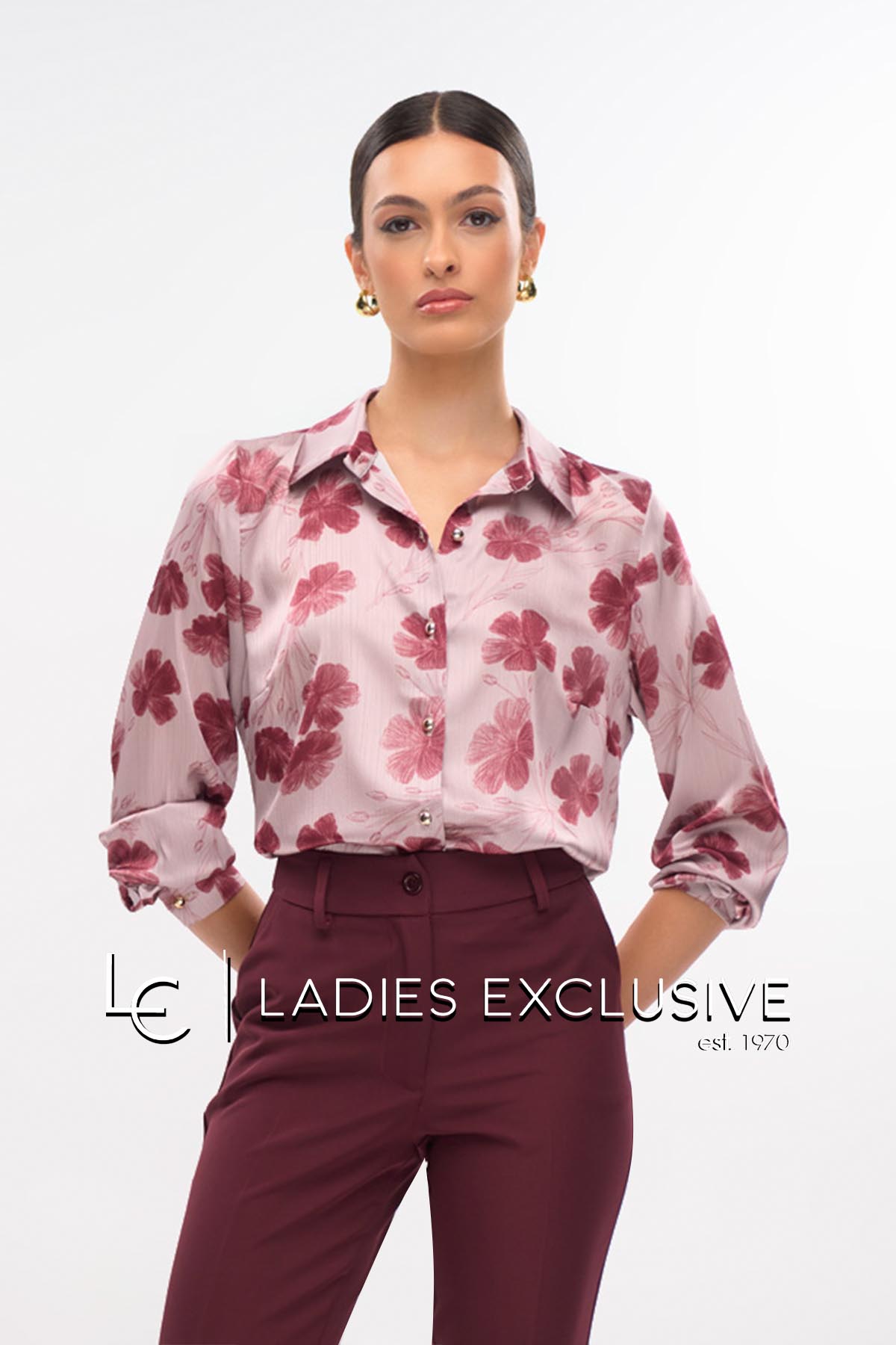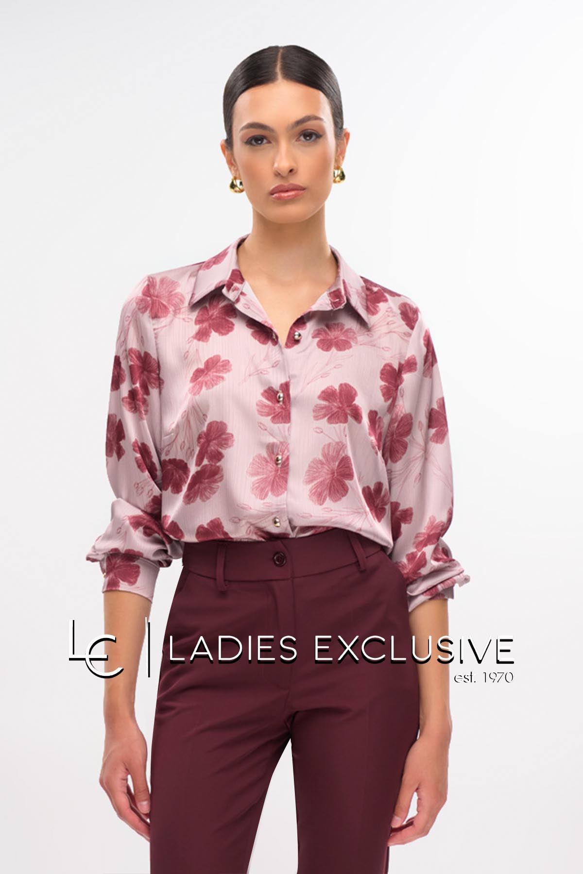 FIBES Πουκάμισο σε μπορντώ αποχρώσεις σατέν με πέτο γιακά.