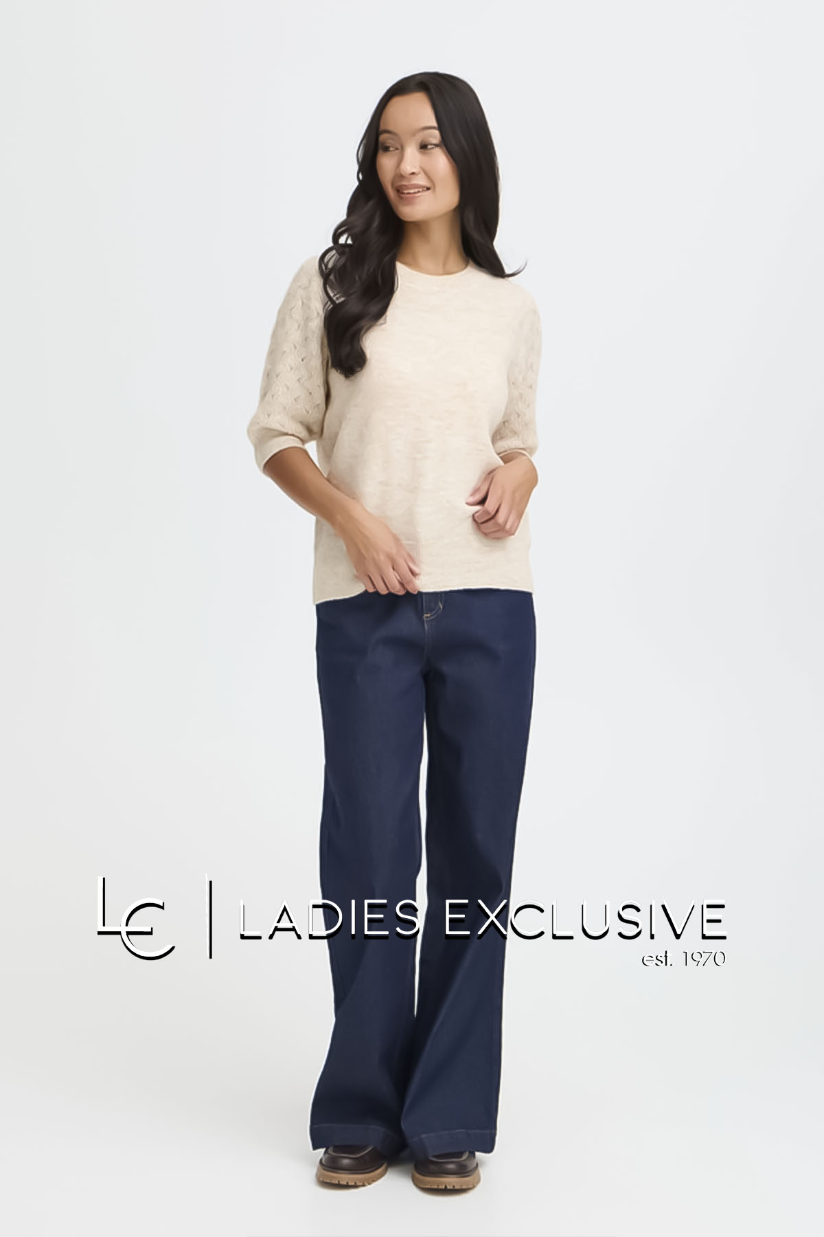 FRANSA Μπλούζα μπεζ πλεκτή με μανίκι 3/4.
