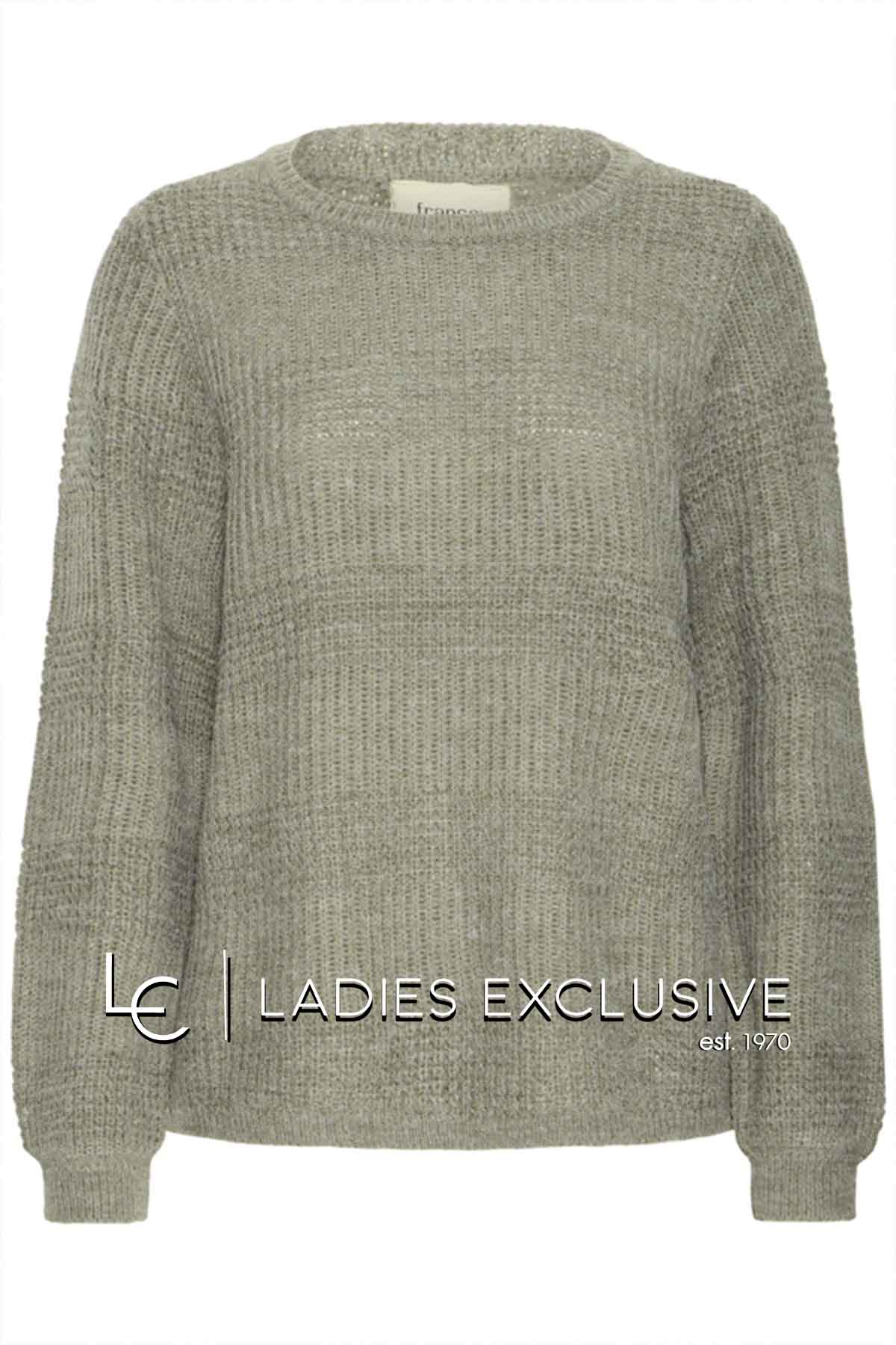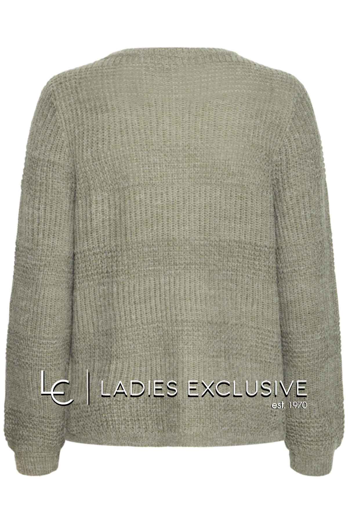FRANSA Πουλόβερ λαδί με χοντρή πλέξη και στρογγυλή λαιμόκοψη.
