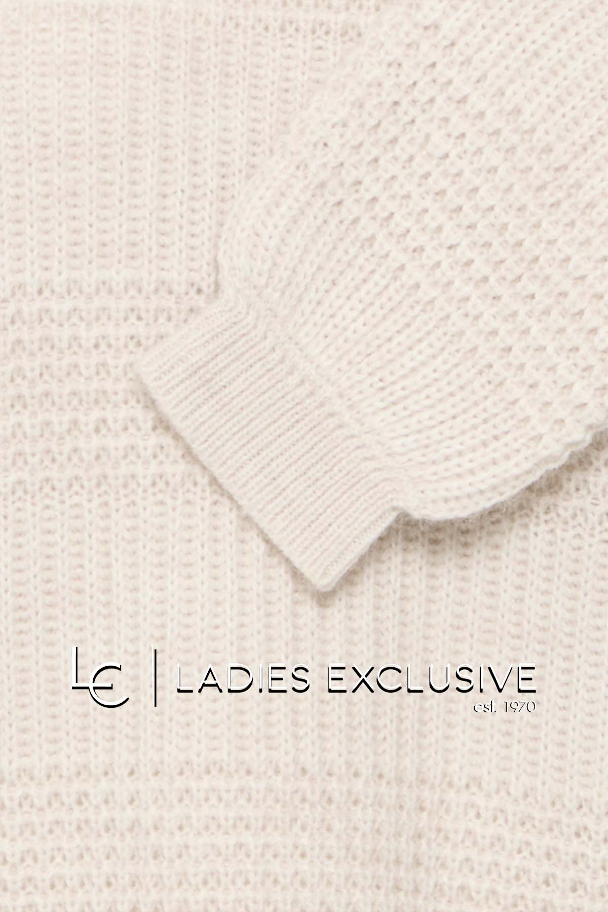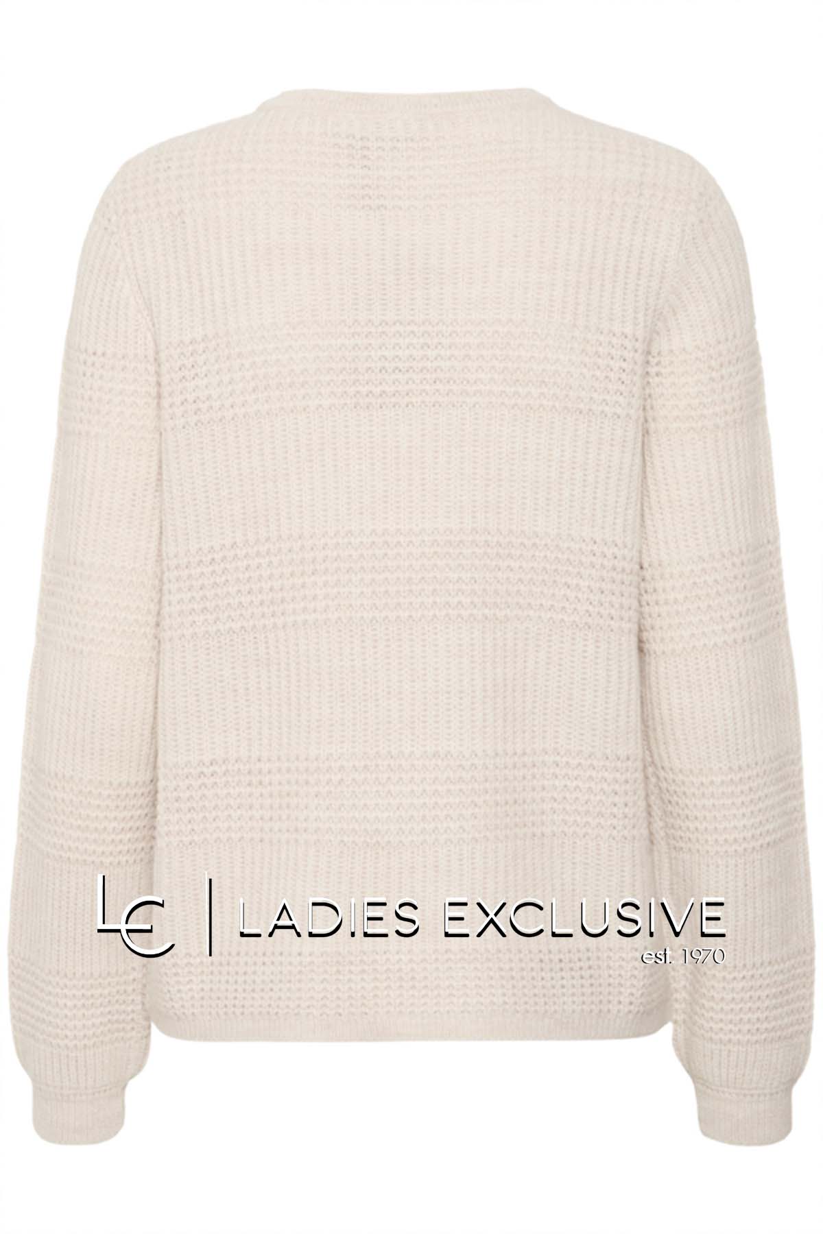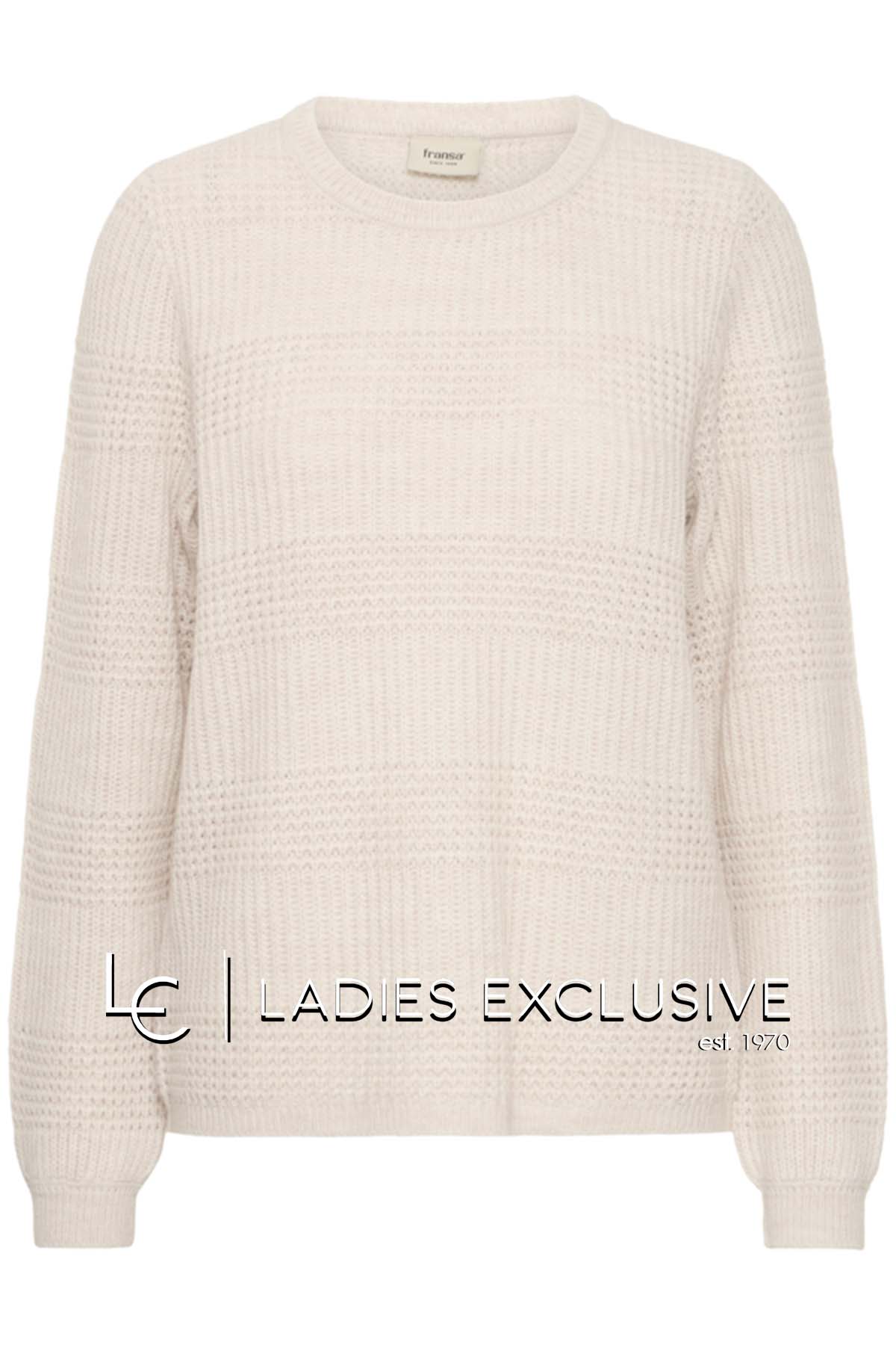 FRANSA Πουλόβερ μπεζ με χοντρή πλέξη και στρογγυλή λαιμόκοψη.