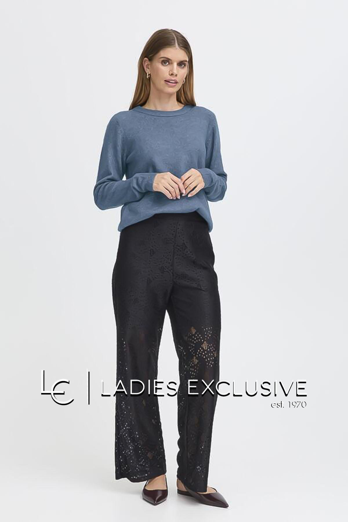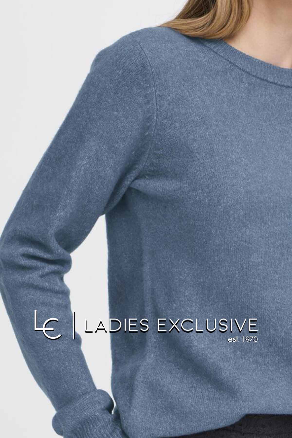FRANSA Πουλόβερ σιέλ πλεκτό σε άνετη γραμμή με στρογγύλή λαιμόκοψη.