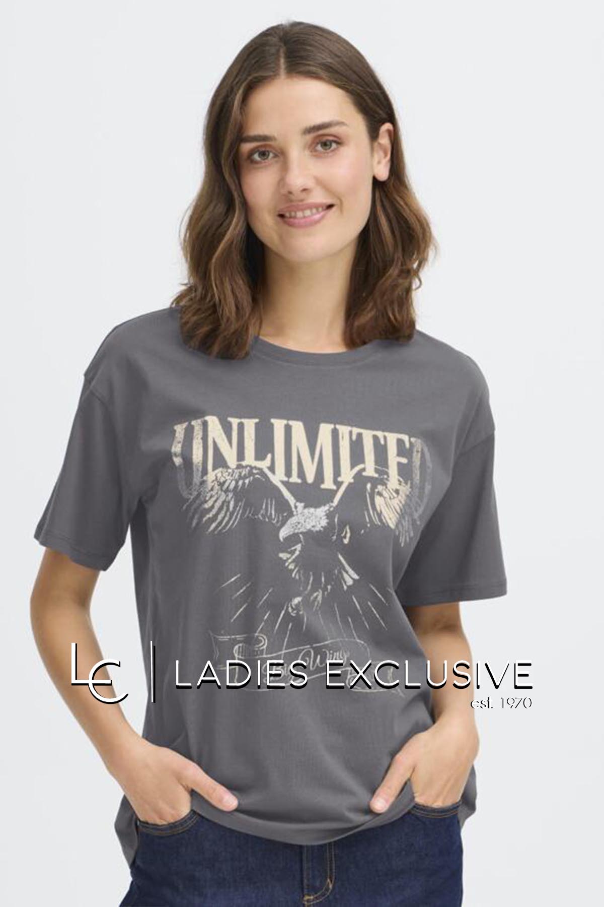 FRANSA T-shirt γκρι με στάμπα.