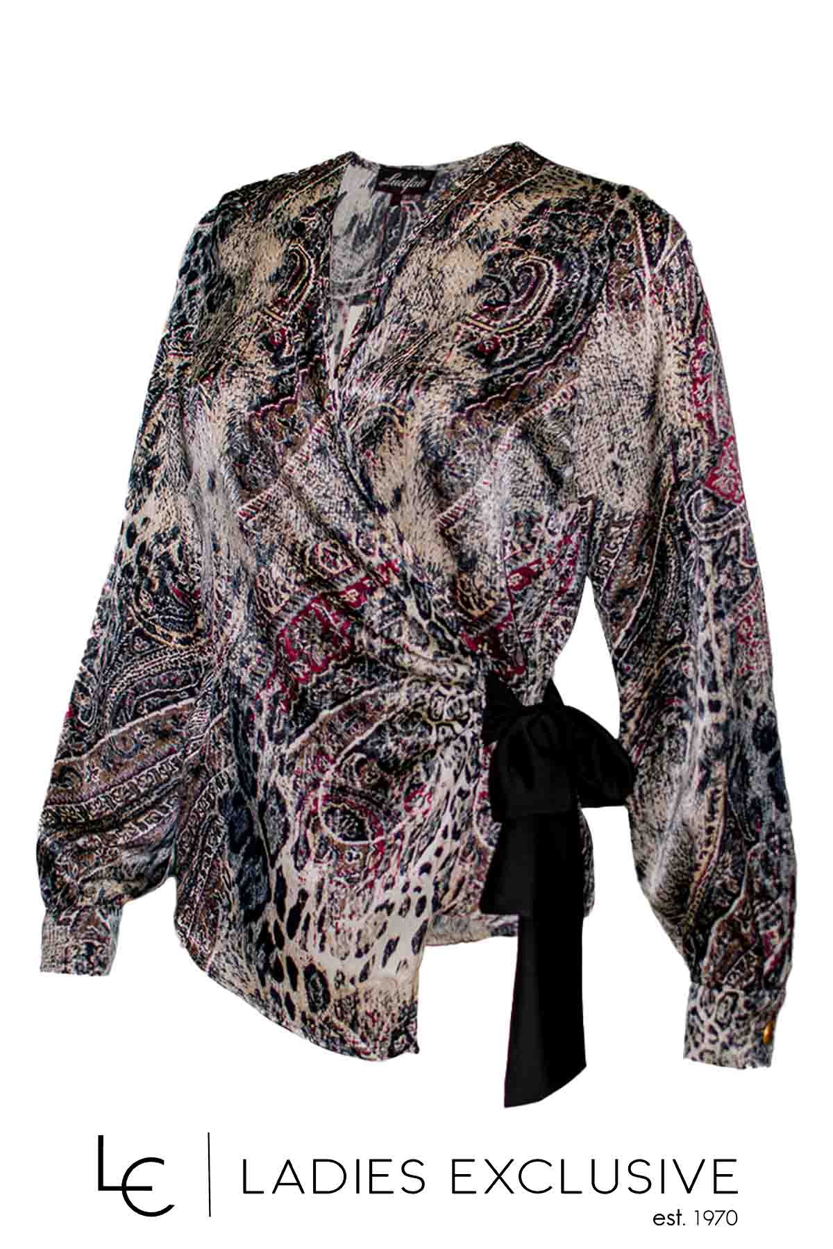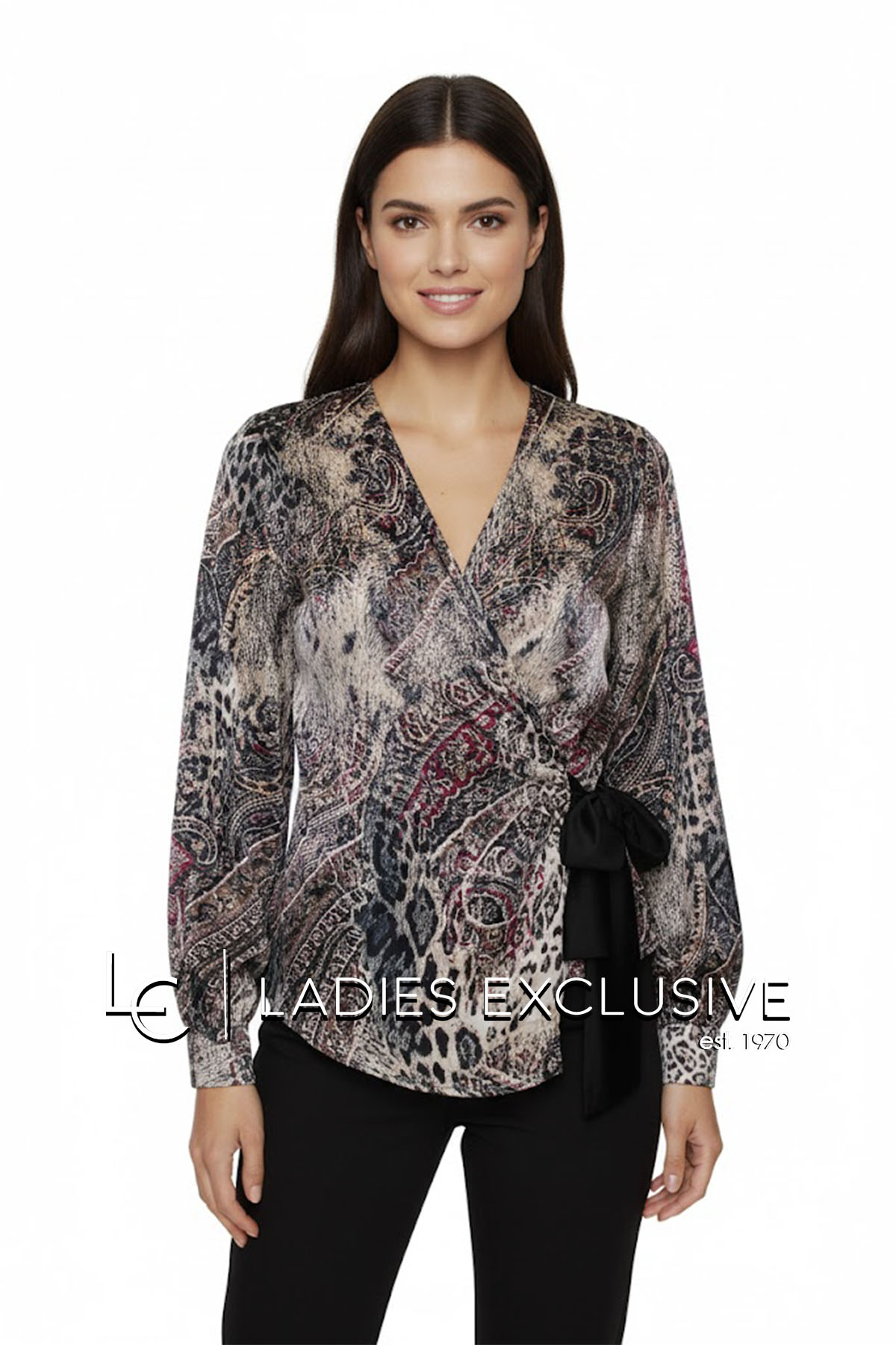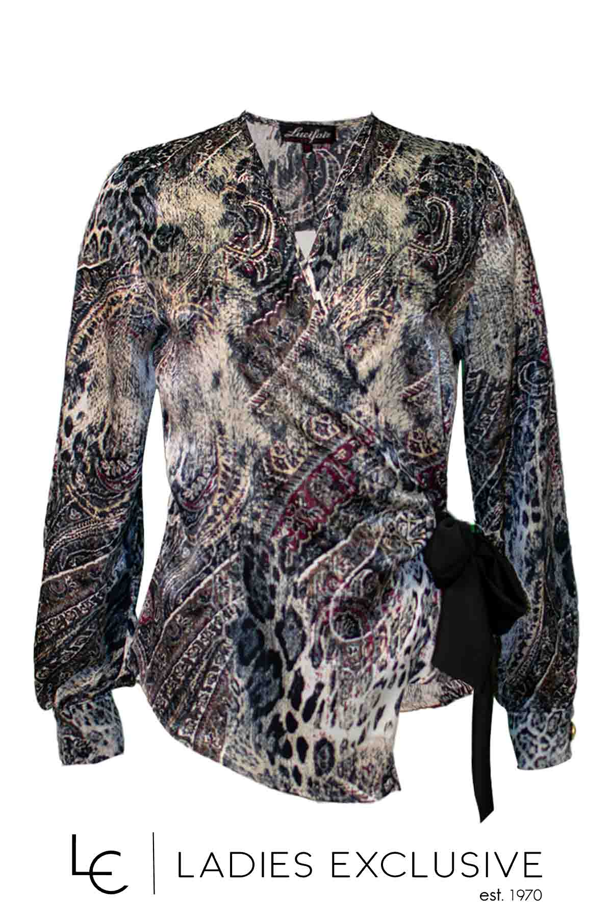 LUCIFAIR Μπλούζα εμπριμέ κρουαζέ που δένει με κορδέλα σατέν.