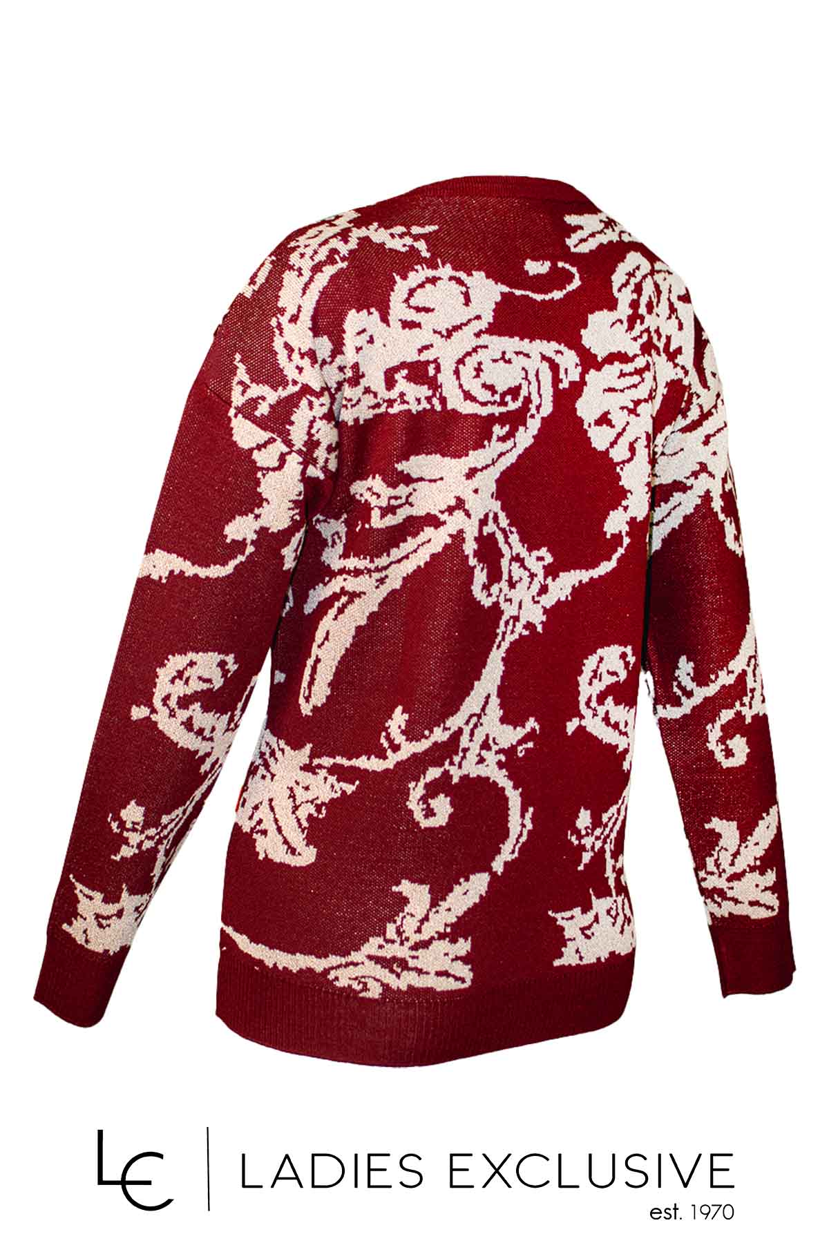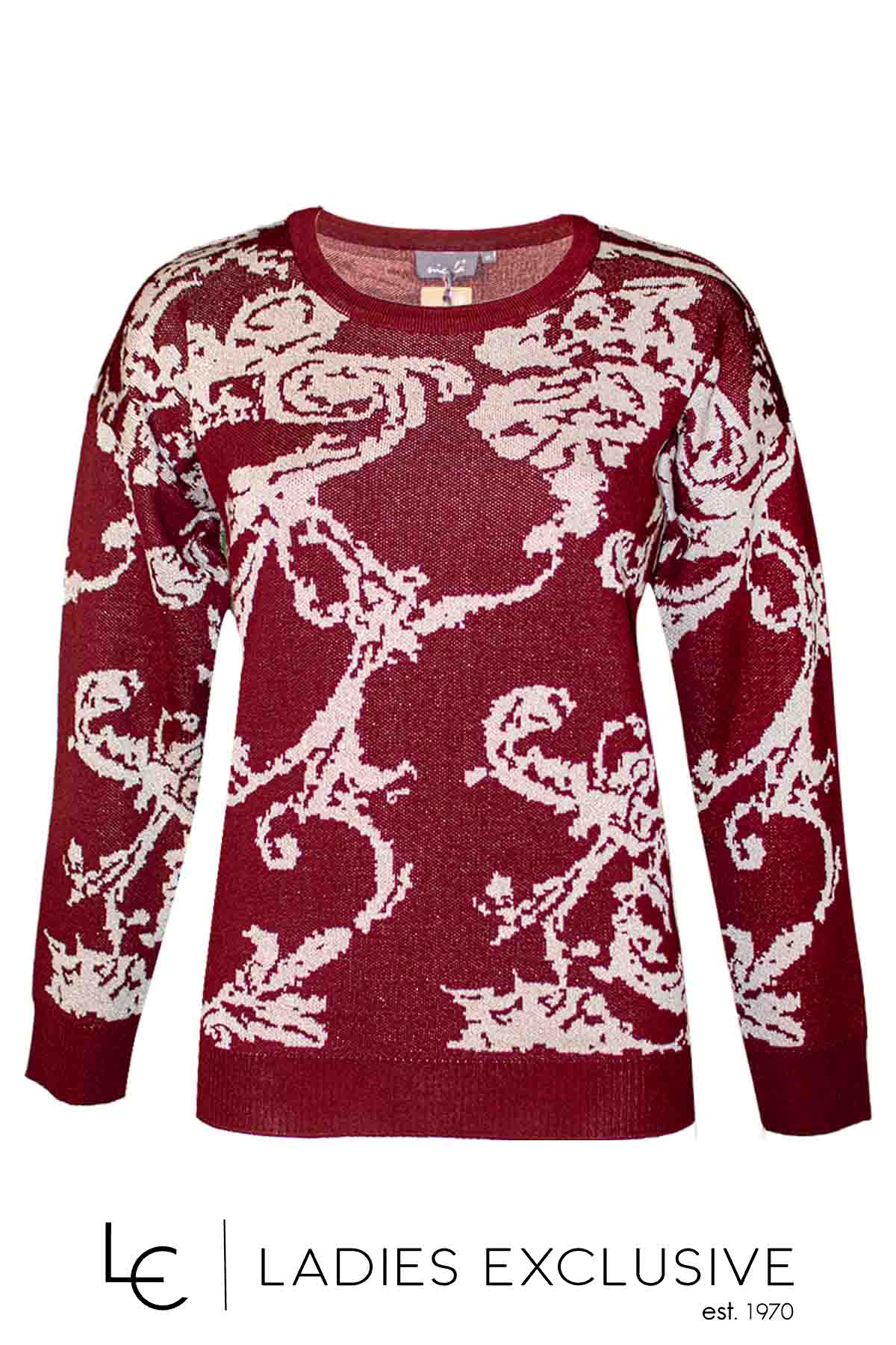 NICOLA Μπλούζα μπορντώ μάλλινη με σχέδια και χρυσοκλωστή στην ύφανση.