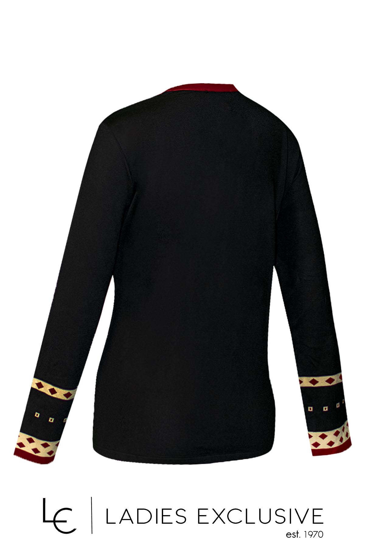 NICOLA Μπλούζα μαύρη με ρόμβους σε καμηλό χρώμα μοχέρ και στα τελειώματα.