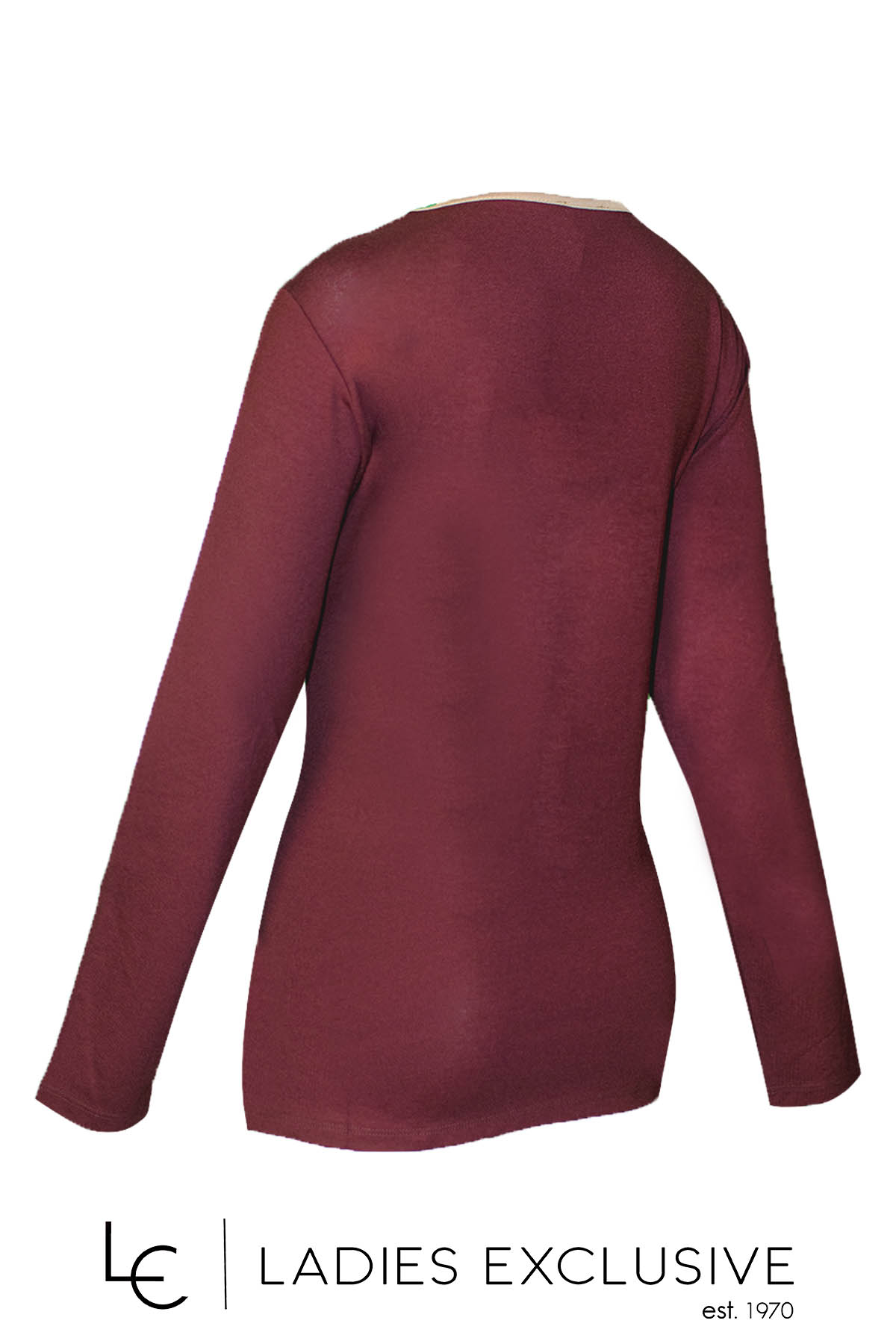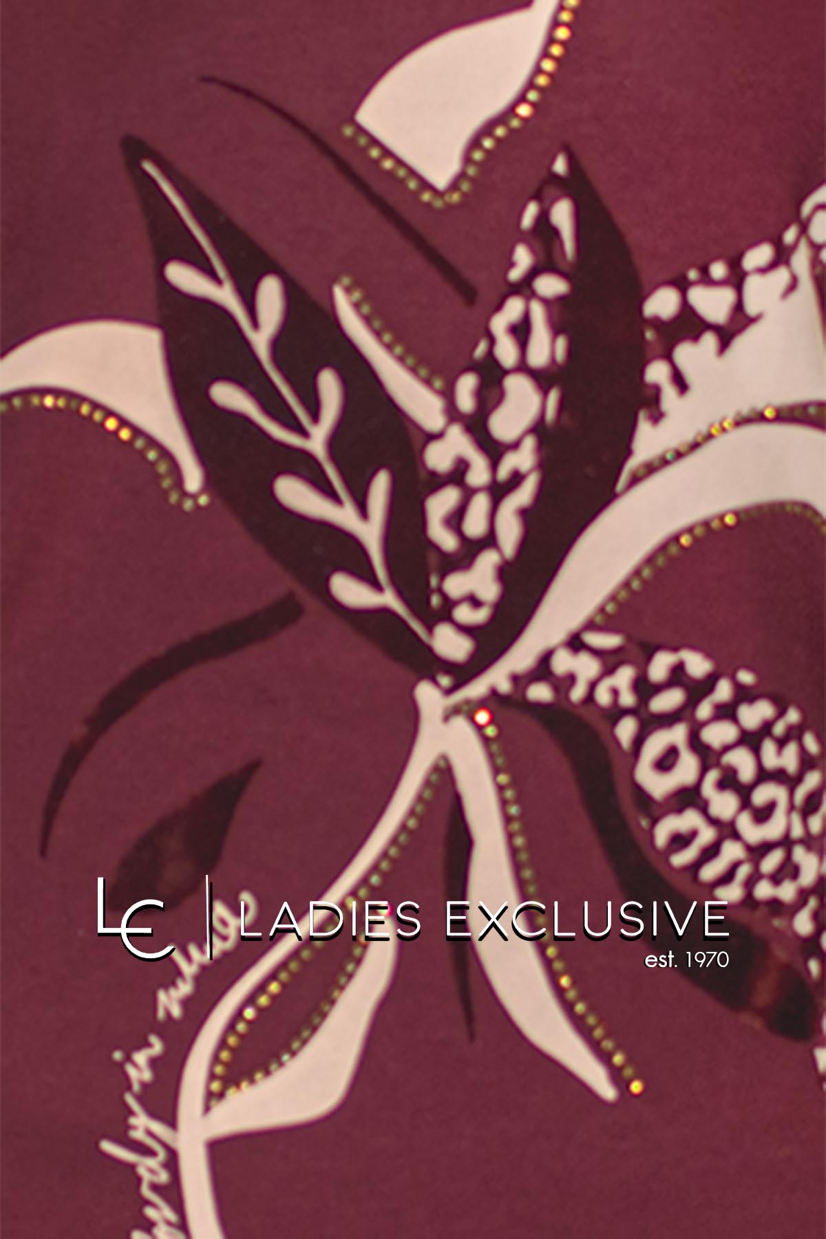 NICOLA Μπλούζα μπορντώ με στάμπα βελουτέ λουλούδι και διακριτικά στρας.