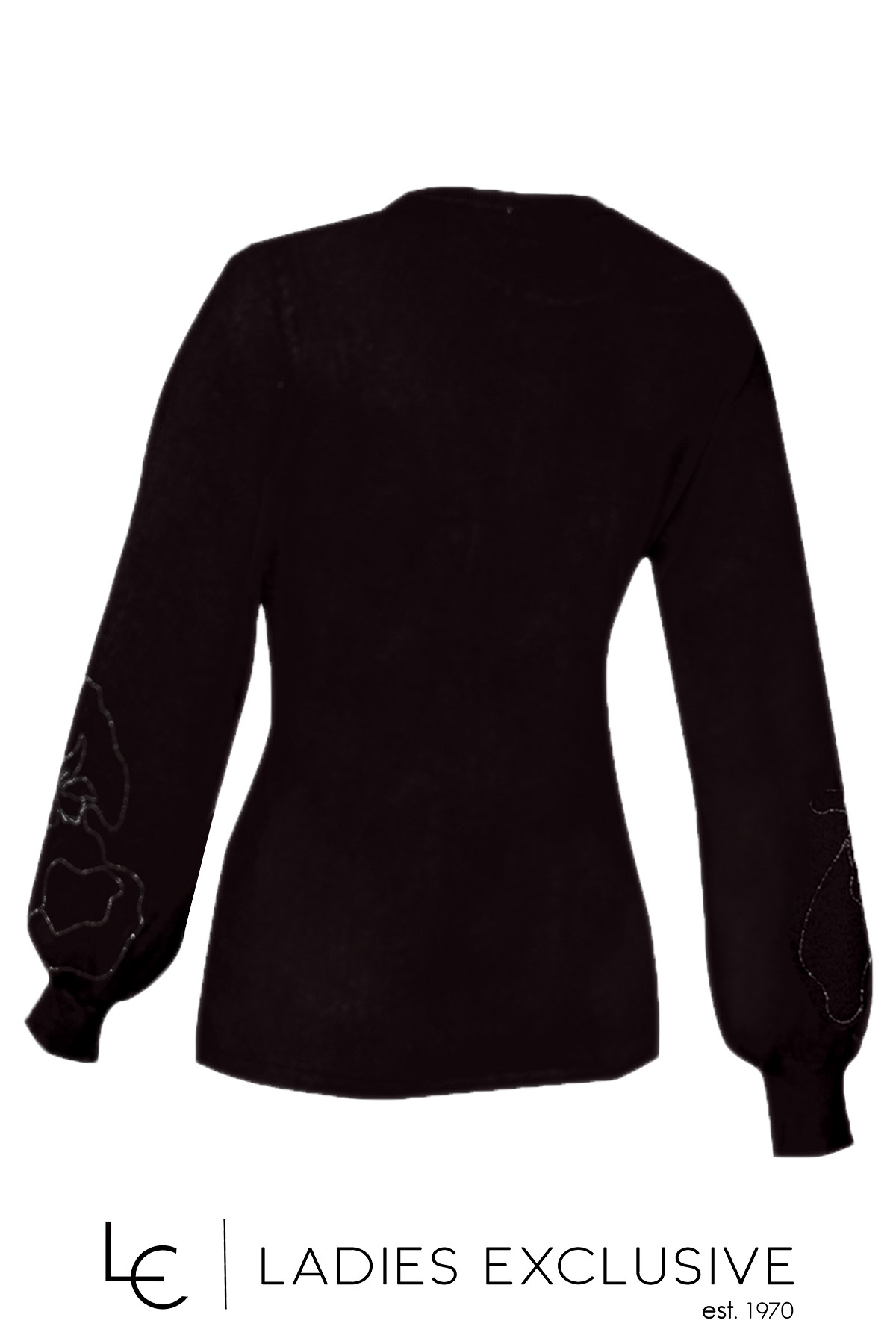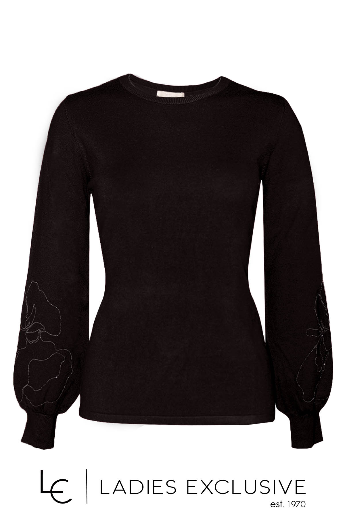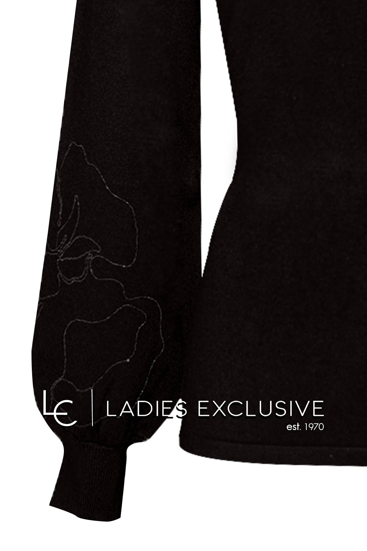 TRIPODE Μπλούζα μαύρη πλεκτή με κεντημα λουλούδι στο μανίκι.