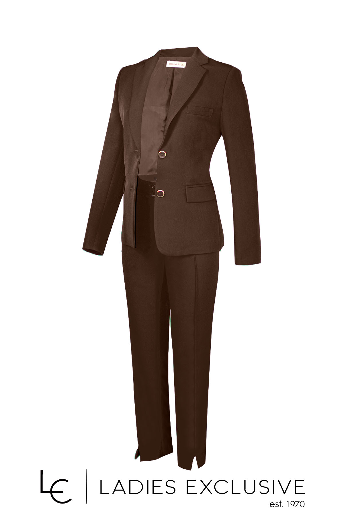 BELLA P. Σακάκι καφέ κρεπ με τσέπες με καπάκια. ΔΙΝΕΤΑΙ ΜΟΝΟ ΣΑΝ ΣΕΤ με το παντελόνι με κωδικό 21252.0121.03115.08.