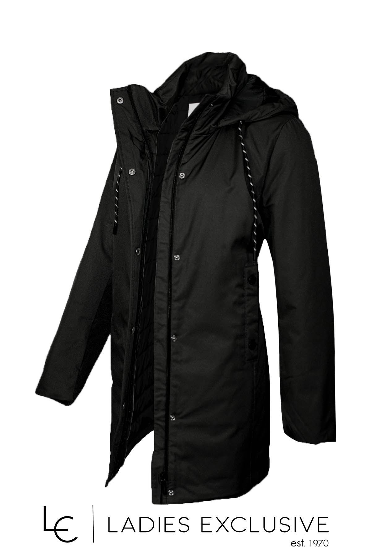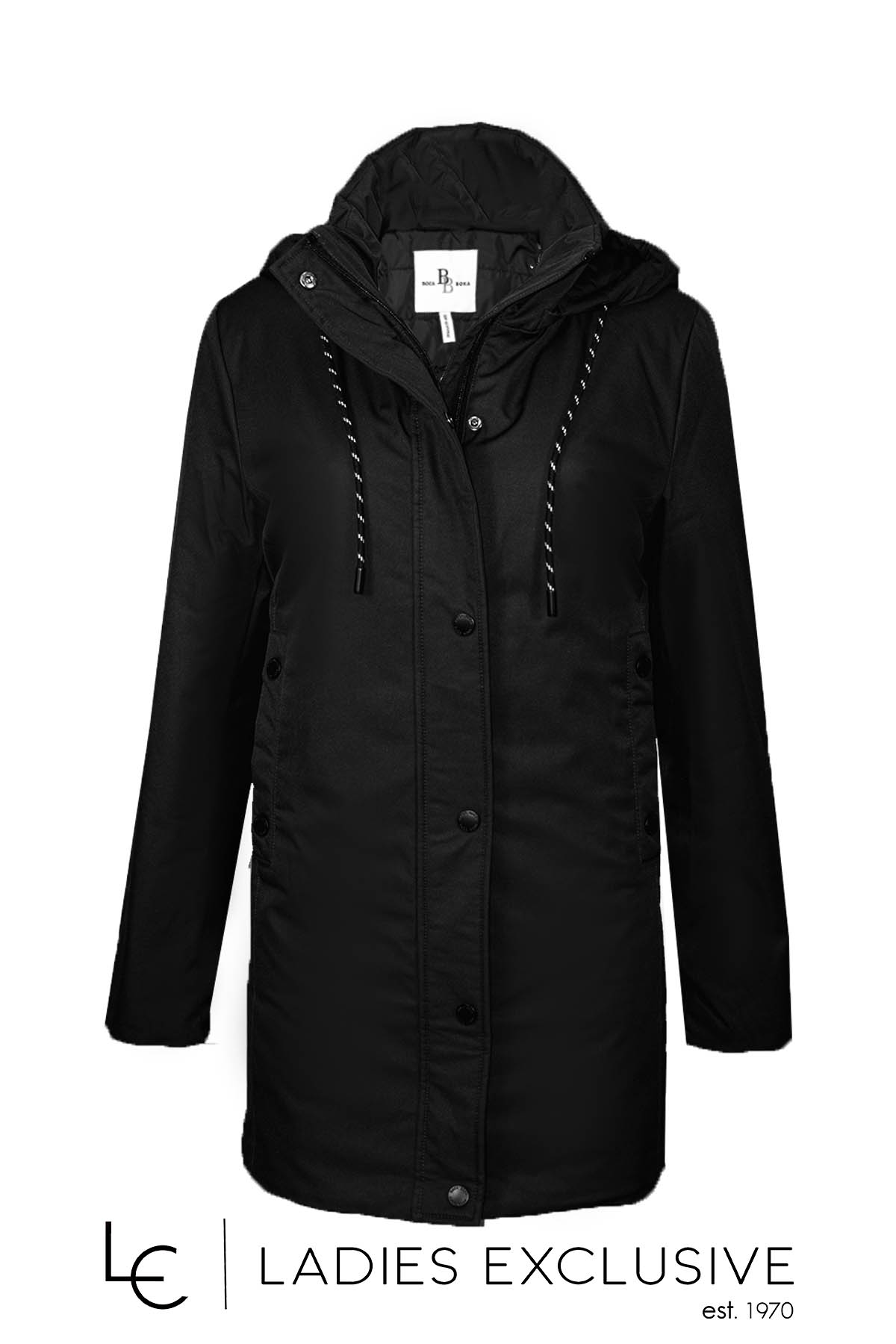BOCA BOKA Μπουφάν μαύρο παρκά με κουκούλα που αφαιρείται και ύφασμα αδιάβροχο.